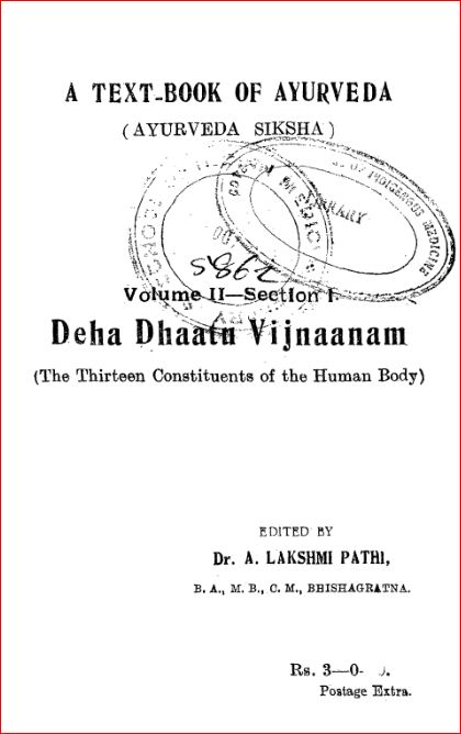 Deha Dhaatu Vijnaanam : The Thirteen Constituents of the Human Body