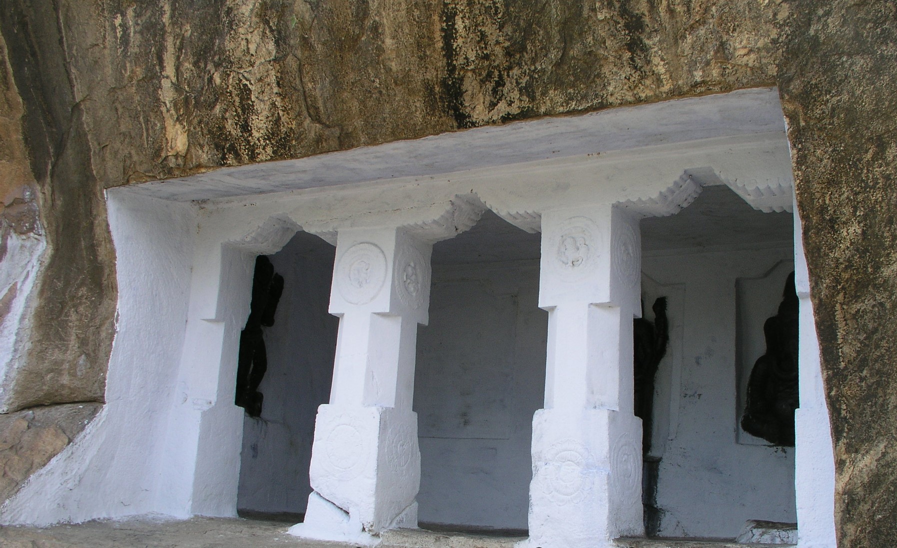 இக்குடைவரையின் முகப்பில் இரண்டு தூண்களும் அவற்றிற்கு நேராகப் பக்கவாட்டில் இரு அரைத்தூண்களும் அமைந்துள்ளன. இத்தூண்களின் மேற்பகுதியும் கீழ்ப்பகுதியும் சதுரமாகவும் நடுப்பகுதி எட்டுப் பட்டைகளுடனும் காணப்படுகின்றது. நடுவில் உள்ள தூண்களில் சதுரங்களின் தென்புறம் தவிர மற்ற பக்கங்களில் தாமரை மலரின் வடிவம் செதுக்கப்பட்டுள்ளது. சில பகுதியில் அன்னம், யாளி, சிங்கம், நந்தி, யானை ஆகிய உருவங்கள் அழகிய முறையில் அமைக்கப்பட்டுள்ளன. வலப்புற முழுத் தூணின் மேற்சதுரத்தில் மேற்கு முகத்தில் நாகத்தினை கையில் பிடித்திருக்கும் பூதகண உருவம் அமைந்துள்ளது. அரைத்தூண்களின் பக்கங்களில் பதக்கங்கள் எவையும் இல்லை. வட்ட அமைப்பு ஒன்றை மேற்கு அரைத்தூணின் மேற்சதுரத்தில் மட்டும் வடித்துள்ளனர். முகப்பை அடுத்து முகமண்டபமும் அதனை அடுத்து பின் சுவரில் வடக்கு நோக்கிய கருவறையும் காணப்படுகின்றன. கருவறையில் வழிபடும் உருவம் ஏதும் இல்லை . கருவறையின் வாயிலில் இருபுறங்களிலும் வாயிற்காவலர்களின் புடைப்புச் சிற்பங்கள் திரிபங்க வடிவில் அமைக்கப்பட்டுள்ளன. நீண்ட சதுர முகமண்டபத்தில் அரைத்தூணை அடுத்துள்ள கிழக்குச் சுவரில் கோட்ட அமைப்பினுள் தாண்டவ மூர்த்தியாக சிவபெருமான் ஆடல் (நடராசர்) உருவம் அமைக்கப்பட்டுள்ளது. அரைத்தூண்களுக்கு இடைப்பட்ட பகுதிகள், அழகிய கோட்டங்களாக வகுக்கப்பட்டு அவற்றில் சிற்ப உருவங்கள் செதுக்கப்பட்டுள்ளன. தென்கிழக்கு மூலையில் மட்டும் சிற்பங்கள் ஏதும் காணப்படவில்லை. இரண்டாம், மூன்றாம் அங்கணங்களுக்கு எதிரே அமைந்துள்ள கோட்டங்களில் முறையே திருமால், விநாயகர் ஆகியோரின் சிற்ப உருவங்கள் சிறப்பாக அமைக்கப்பட்டுள்ளன. கருவறையின் முன்புறம் நான்கு படிகள் உள்ளன. கடைசிப் படி அரைவட்ட வடிவில் அமைக்கப்பட்டுள்ளது. கருவறையின் முகப்பு வாயிலை யொட்டி இருபுறமும் நான்கு அரைத்தூண்கள் அமைந்துள்ளன. இத்தூண்களின் இடைப்பட்ட பகுதியே கோட்டங்களாக அமைக்கப்பட்டு அவற்றுள் வாயிற்காவலர்களின் உருவங்கள் செதுக்கப்பட்டுள்ளன. மண்டபத் தரையிலிருந்து சற்று உயரத்தில் வாயிற்காவலர்கள் அமைக்கப்பட்டுள்ளனர். அழகிய மகுடம், முப்புரி நூல், மீசையுடன் கூடிய முகம், இடையில் ஆடை, காதில் குண்டலம் ஆகியவற்றுடன் காணப்படும் வாயிற்காவலர்கள் இரு கைகளுடன் காணப்படுகின்றனர். தென்புற வாயிற்காவலர் வலக்கரத்தை இடுப்புக்குக் கீழே ஊன்றியவாறும் இடக்கரத்தில் பரசுவை ஏந்தியவாறும் பொழிவுடன் நேர்கொண்ட பார்வையாய் நிற்கின்றார். வடக்குப் பகுதி வாயிற்காவலர் கதையின் மீது வலது கையைத் தாங்கியவாறும் இடக்கரம் வலது தோளின் அருகே கையைப் பிடித்தவாறும் காணப்படுகின்றார