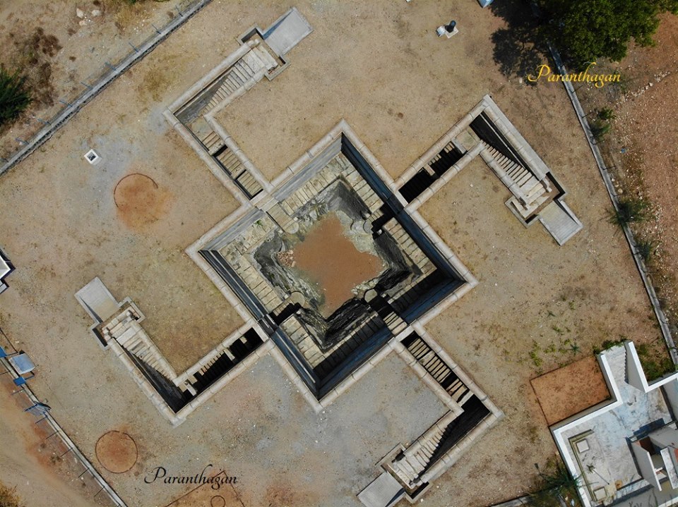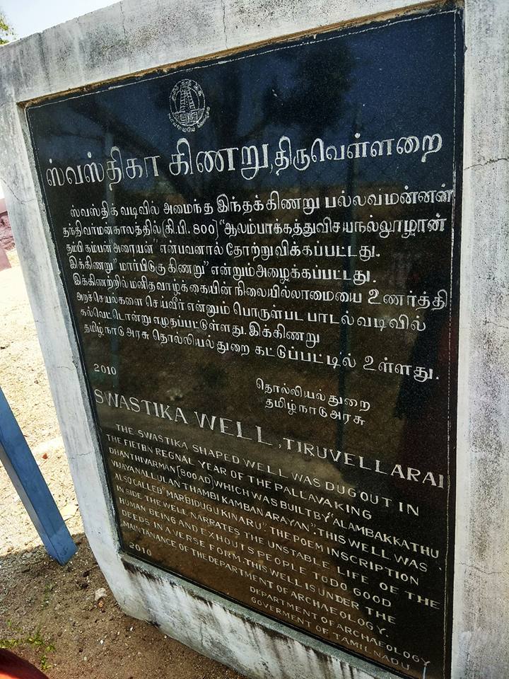 தந்தி வர்மப் பல்லவ மன்னன் காலத்தில் ஆலம்பாக்கிழான் விசைய நல்லுழான் தம்பி கம்பன் அரையன் இந்த ஸ்வஸ்திக வடிவக் கிணற்றினை எடுப்பித்தான். கி.பி.13-ஆம் நூற்றாண்டில் போசள அரசன் வீரராமநாதன் காலத்தில் குடந்தை வாணிகன் உய்ய நெறி காட்டினான் என்பவன் இக்கிணற்றினை திருத்தியமைத்தான் என்று இங்குள்ள கல்வெட்டு குறிப்பிடுகிறது. |