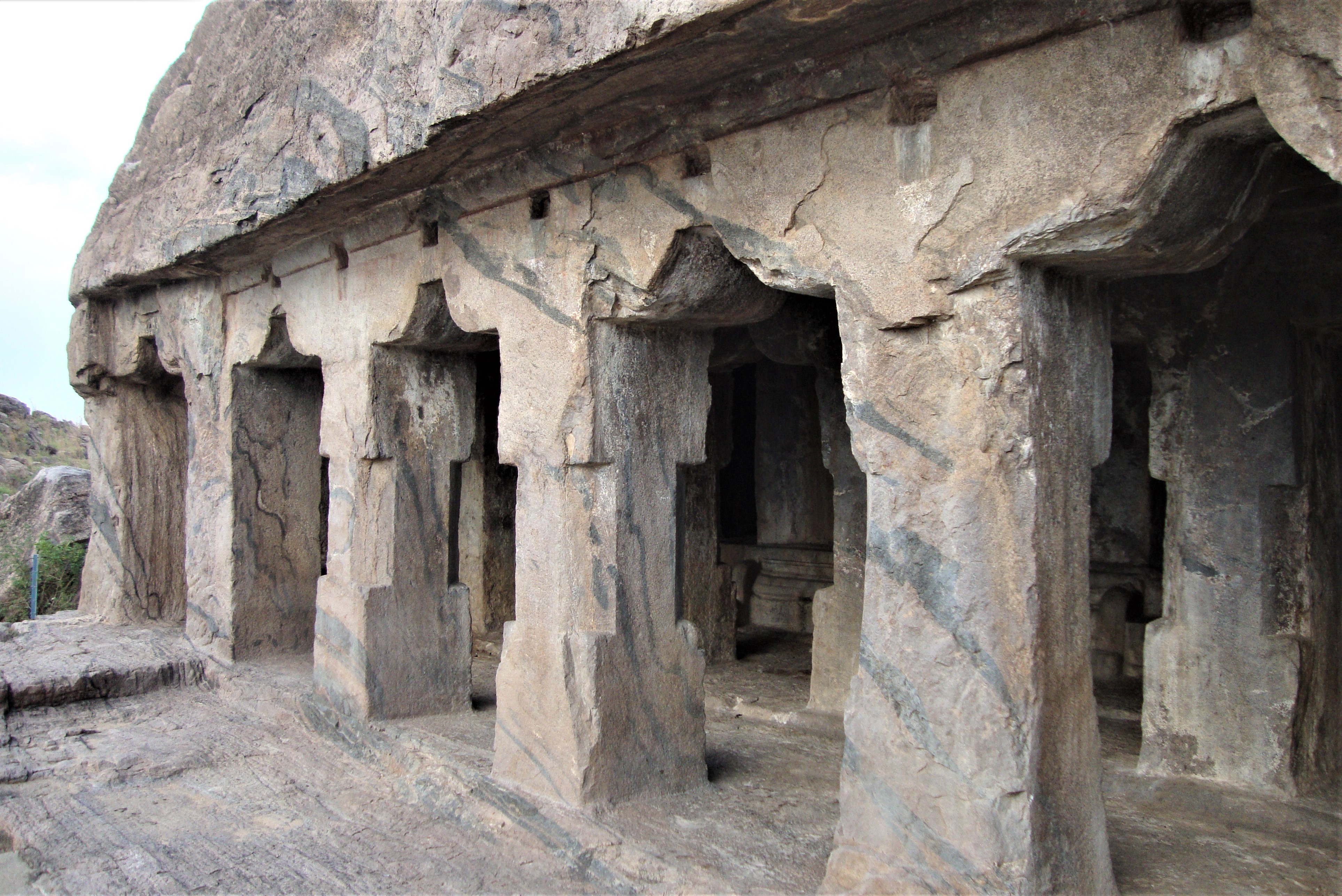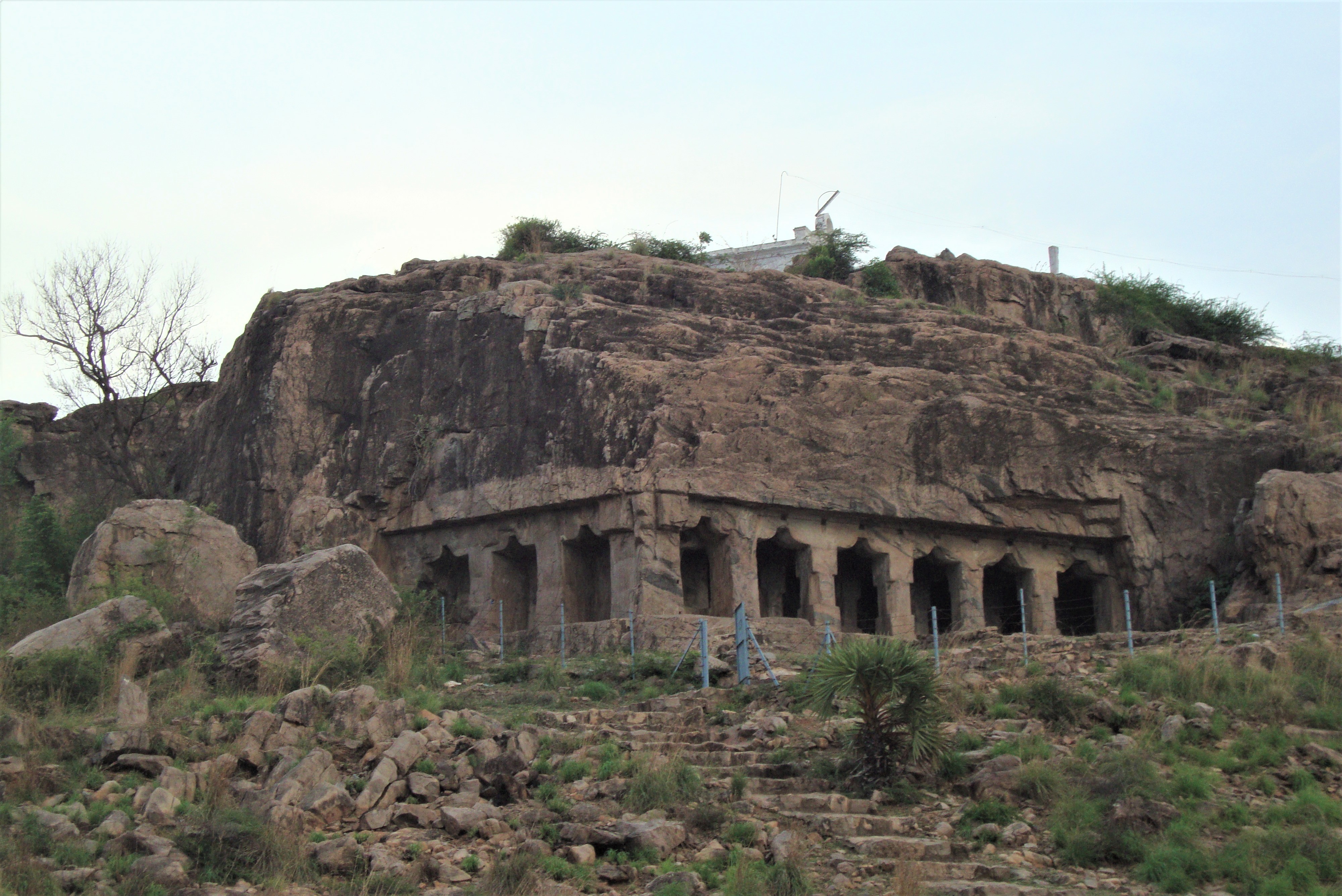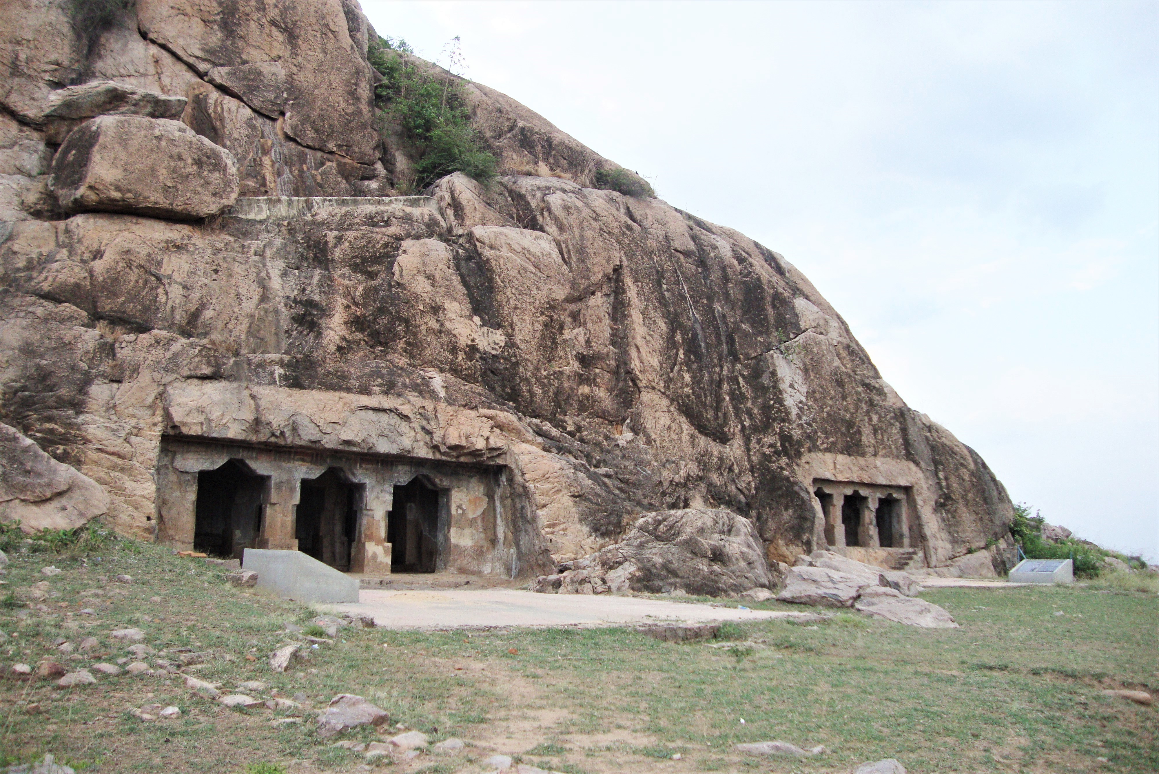 மாமண்டூர்-நரசமங்கலம் குடைவரைகள் அமையப் பெற்றுள்ள இக்குன்றுத்தொடரிடையே ஓடும் ஓடையினை எல்லையாகக் கொண்டு இத்தொடர், மாமண்டூர் மற்றும் நரசமங்கலம் என இரண்டாகப் பிரிக்கப்பட்டுள்ளது. ஓடையின் வடப்புறத்தே மாமண்டூர் வருவாய்க் கிராம எல்லையில் பெரும்பகுதி நிறைவடைந்த இரண்டு குடைவரைகளும், தென்புறத்தே நரசமங்கலம் வருவாய்க் கிராம எல்லையில் சிறியதும், பெரியதுமாக இரண்டு நிறைவடையா குடைவரைகளும் அமைந்துள்ளன. தென்வடலாக உயர்ந்து விரியும் இக்குன்றுத் தொடரின் பின்புறம் முதலாம் மகேந்திரவர்மரால் உருவாக்கப்பட்ட “சித்ரமேகத் தடாகம்” பரந்து விரிந்து காணக் கிடைக்கும். இக்குடைவரைகளை அவை அமைந்துள்ள வருவாய்க் கிராமங்களையொட்டி இரண்டு பிரிவுகளாக பிரிக்கலாம்: I. நரசமங்கல குடைவரைகள்: 1. முற்றுப் பெறாத சிறிய குடைவரை 2. முற்றுப் பெறாத பெரிய குடைவரை II. மாமண்டூர் குடைவரைகள்: 1. ருத்ர வாலீஸ்வரம் 2. வடக்கு குடைவரை. |