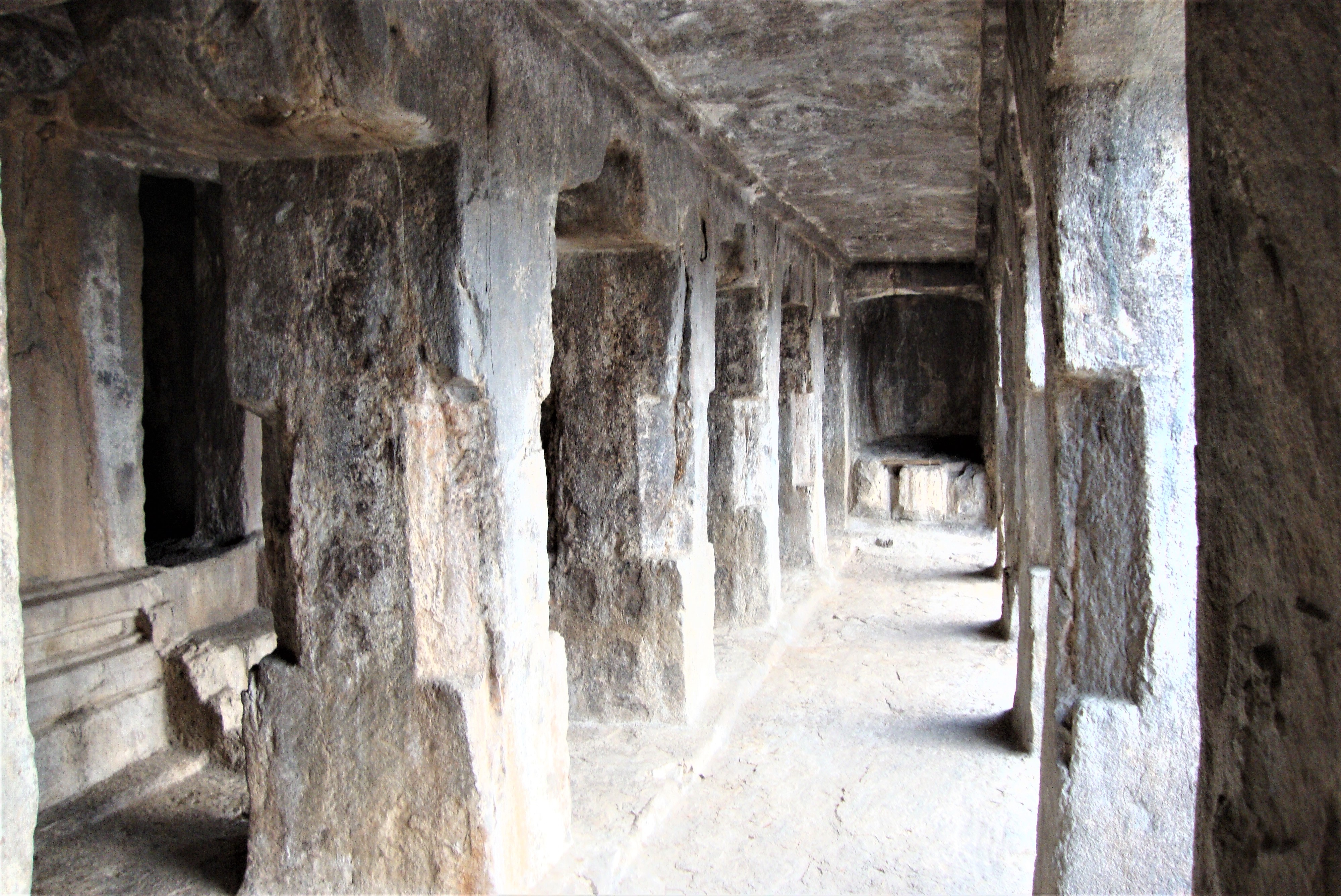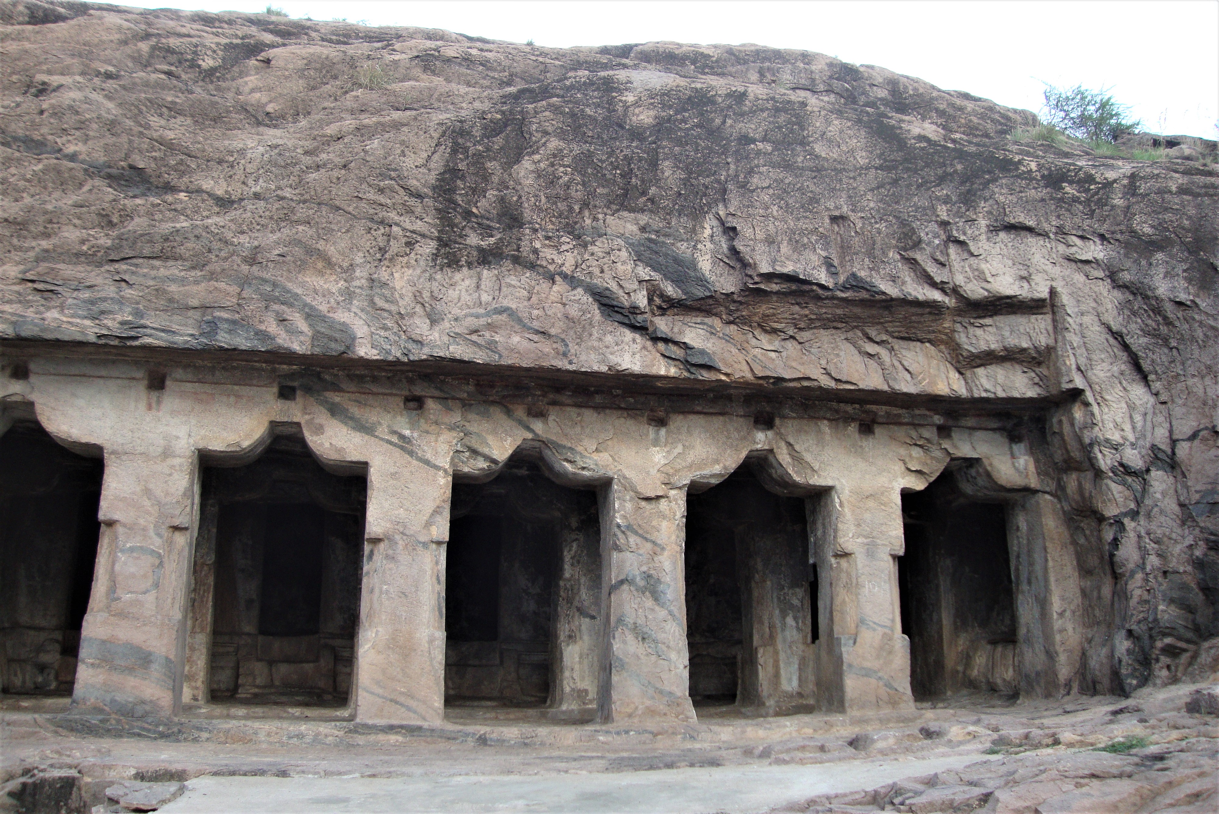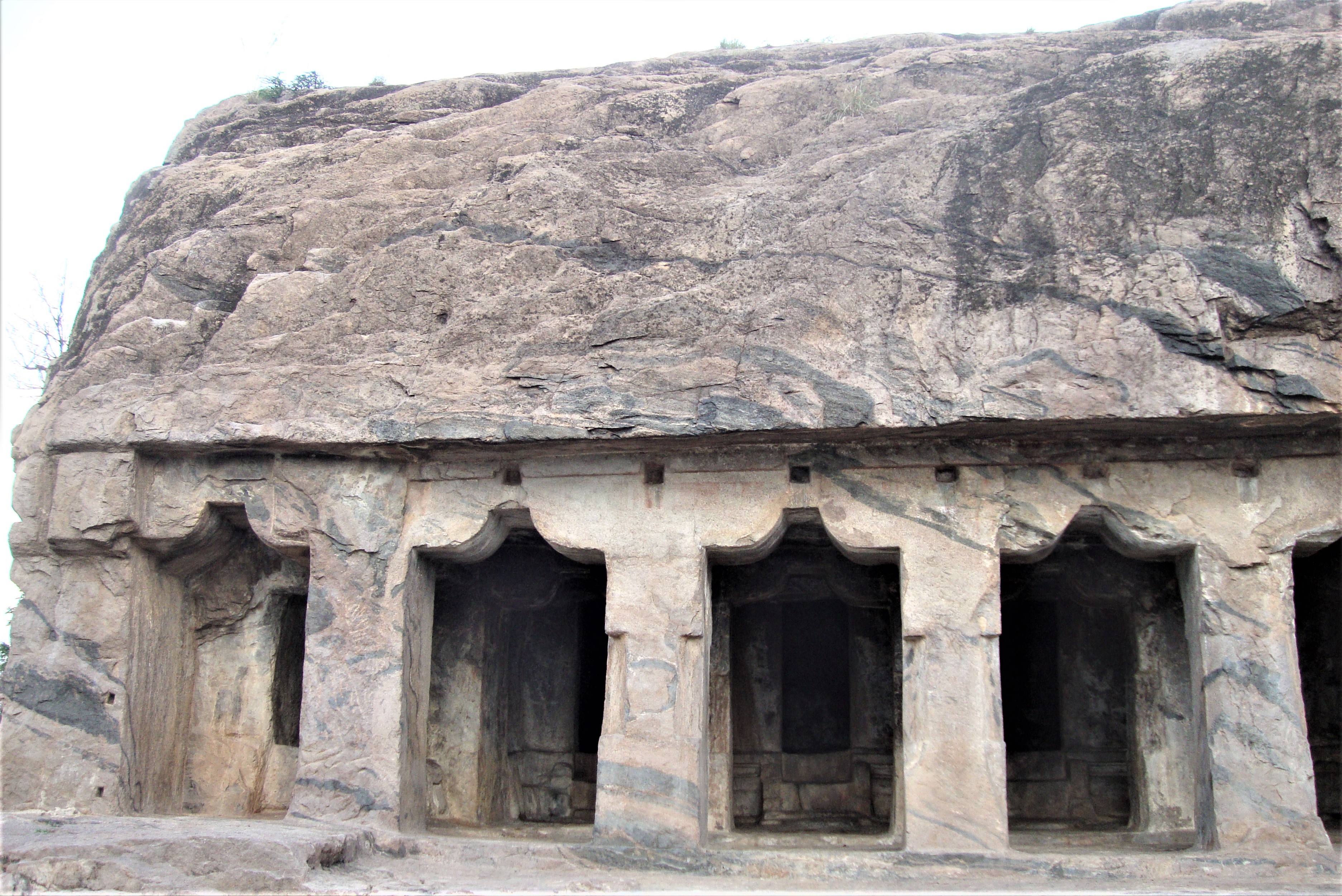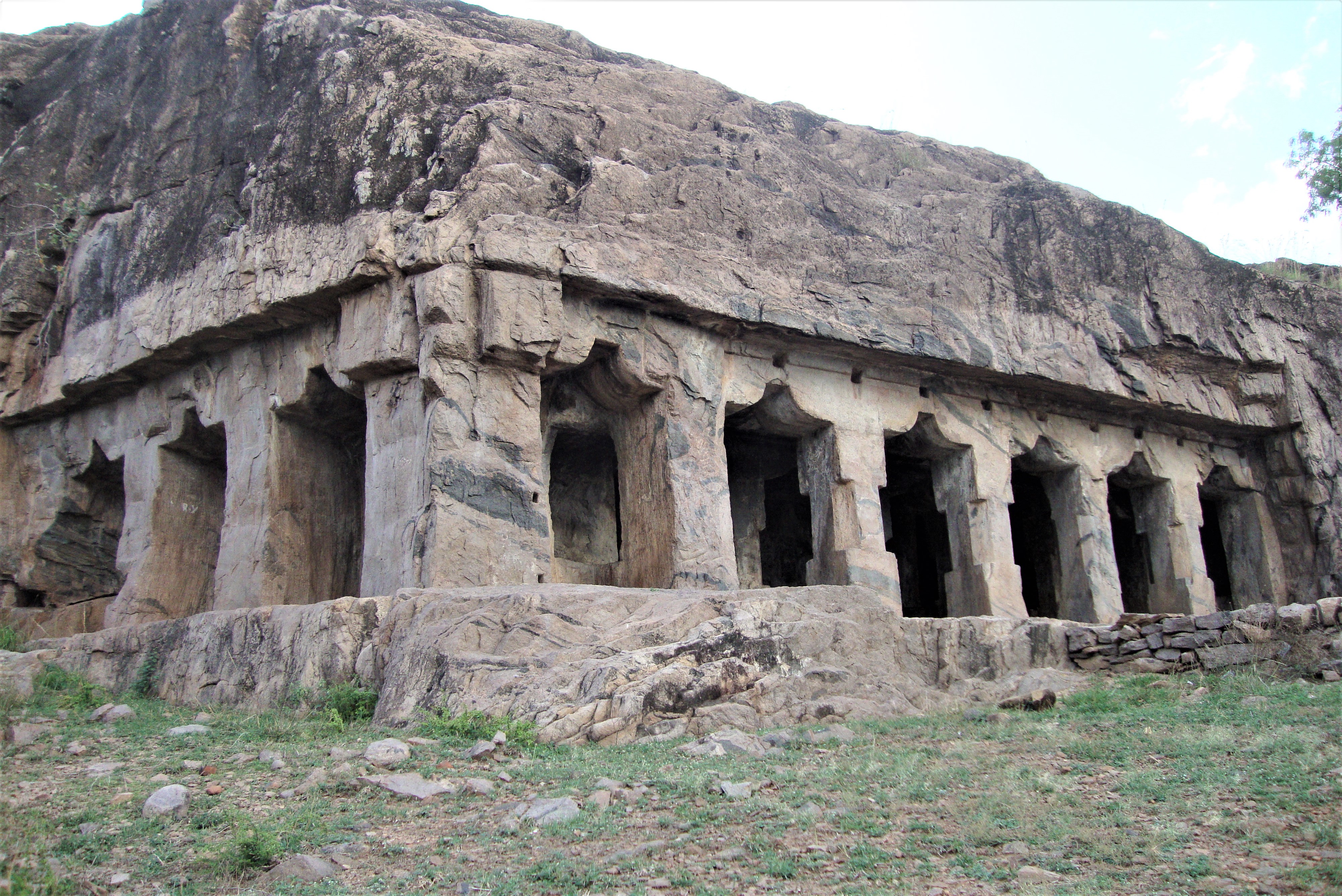 மாமண்டூர்-நரசமங்கலம் குடைவரைகள் அமையப் பெற்றுள்ள இக்குன்றுத்தொடரிடையே ஓடும் ஓடையினை எல்லையாகக் கொண்டு இத்தொடர், மாமண்டூர் மற்றும் நரசமங்கலம் என இரண்டாகப் பிரிக்கப்பட்டுள்ளது. ஓடையின் வடப்புறத்தே மாமண்டூர் வருவாய்க் கிராம எல்லையில் பெரும்பகுதி நிறைவடைந்த இரண்டு குடைவரைகளும், தென்புறத்தே நரசமங்கலம் வருவாய்க் கிராம எல்லையில் சிறியதும், பெரியதுமாக இரண்டு நிறைவடையா குடைவரைகளும் அமைந்துள்ளன. தென்வடலாக உயர்ந்து விரியும் இக்குன்றுத் தொடரின் பின்புறம் முதலாம் மகேந்திரவர்மரால் உருவாக்கப்பட்ட “சித்ரமேகத் தடாகம்” பரந்து விரிந்து காணக் கிடைக்கும். இக்குடைவரைகளை அவை அமைந்துள்ள வருவாய்க் கிராமங்களையொட்டி இரண்டு பிரிவுகளாக பிரிக்கலாம்: I. நரசமங்கல குடைவரைகள்: 1. முற்றுப் பெறாத சிறிய குடைவரை 2. முற்றுப் பெறாத பெரிய குடைவரை II. மாமண்டூர் குடைவரைகள்: 1. ருத்ர வாலீஸ்வரம் 2. வடக்கு குடைவரை. |
