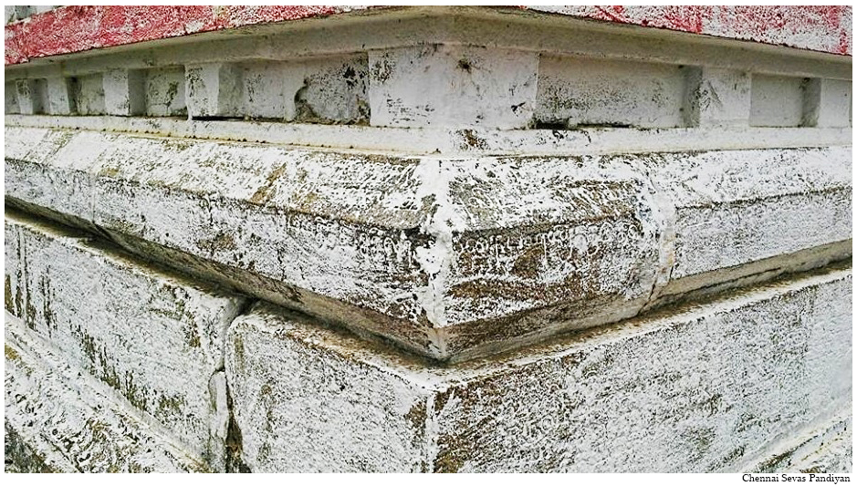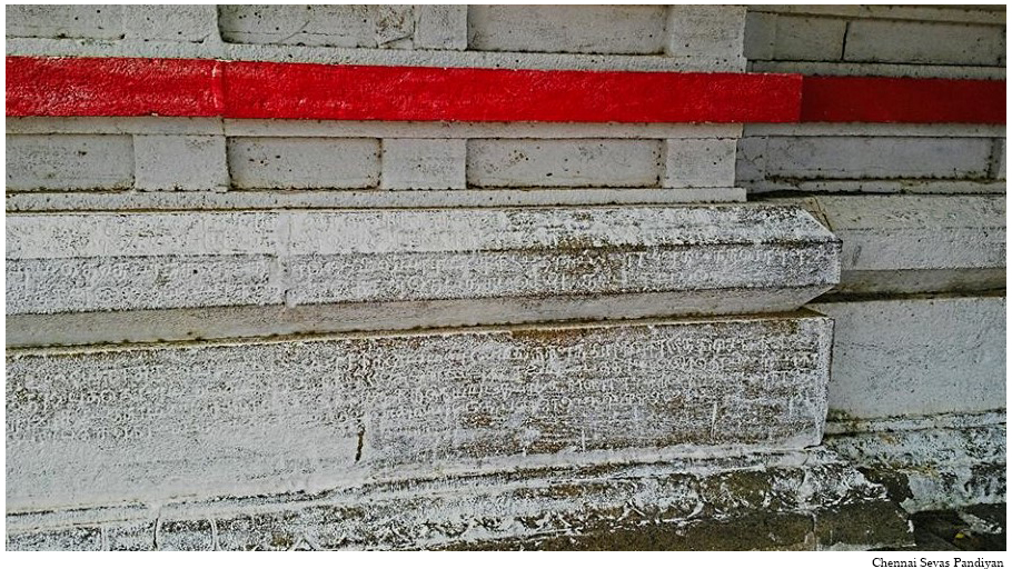 | கல்வெட்டு / செப்பேடு | கருவறை விமானத்தின் தாங்குதளத்தின் உறுப்புகளான ஜகதியிலும், குமுதத்திலும் கல்வெட்டுகள் காணப்படுகின்றன. |