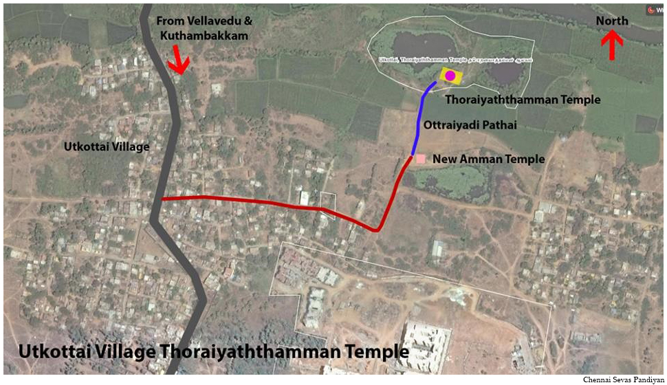 | செல்லும் வழி | சென்னை-திருவள்ளூர் சாலையில் திருமழிசை அடுத்து வெள்ளவேடு. இடதுபுறம் திரும்ப, குத்தப்பாக்கம் தாண்டினால் உட்கோட்டை கிராமம் 4 கி.மீ. தொலைவில் அமைந்துள்ளது. உட்கோட்டை கிராமத்தின் மையப்பகுதியில் தொறையாத்தம்மன் கோயில் அமைந்துள்ளது. |