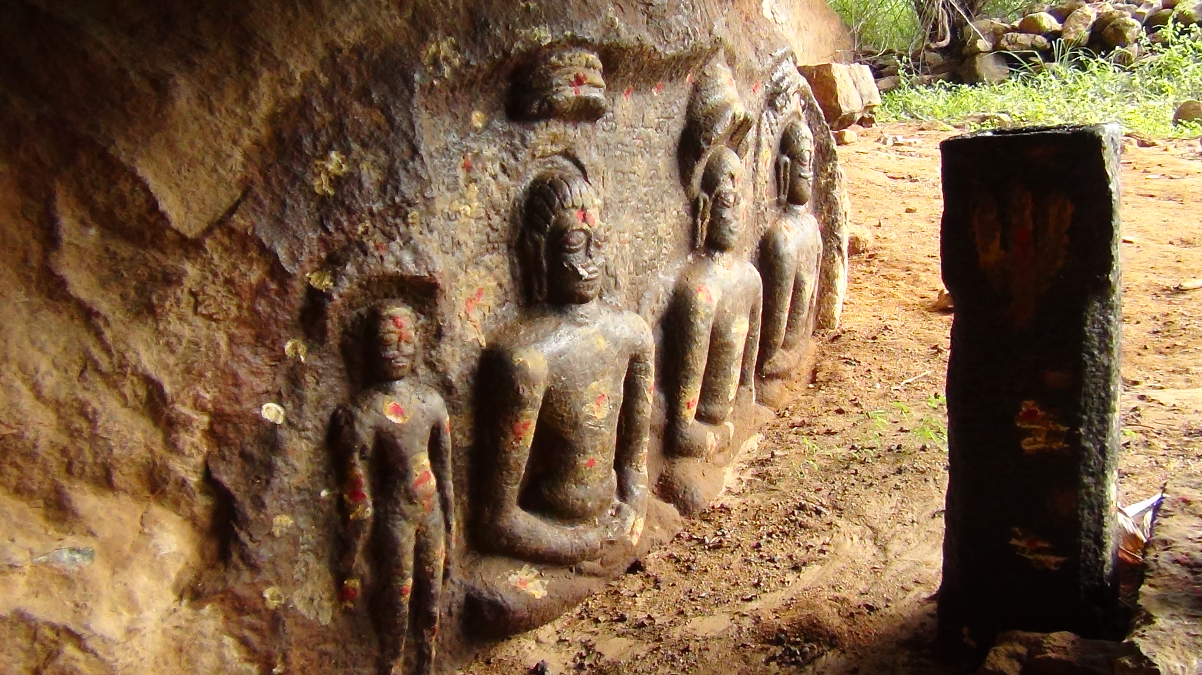 | சிற்பங்கள் | இக்குடைவரைக் கோயிலில் சமணத்தீர்த்தங்கரர்களின் புடைப்புச் சிற்பங்கள் வழிபாட்டில் உள்ளன. இக்குடைவரையில் நான்கு தீர்த்தங்கரர்களின் புடைப்புச் சிற்பங்கள் காட்டப்பட்டுள்ளன. அமர்ந்த நிலையில் உள்ள தீர்த்தங்கரர்களின் மூன்று உருவங்கள் முக்குடையுடன் காட்டப்பட்டுள்ளன. நின்ற நிலையில் ஒரு தீர்த்தங்கரர் உருவம் செதுக்கப்பட்டுள்ளது. தீர்த்தங்கரர்களின் உருவங்கள் காலத்தால் முந்திய சிற்பக் கலைப்பாணியில் அமைந்துள்ளன என்பது இங்கு குறிப்பிடத்தக்கது. |