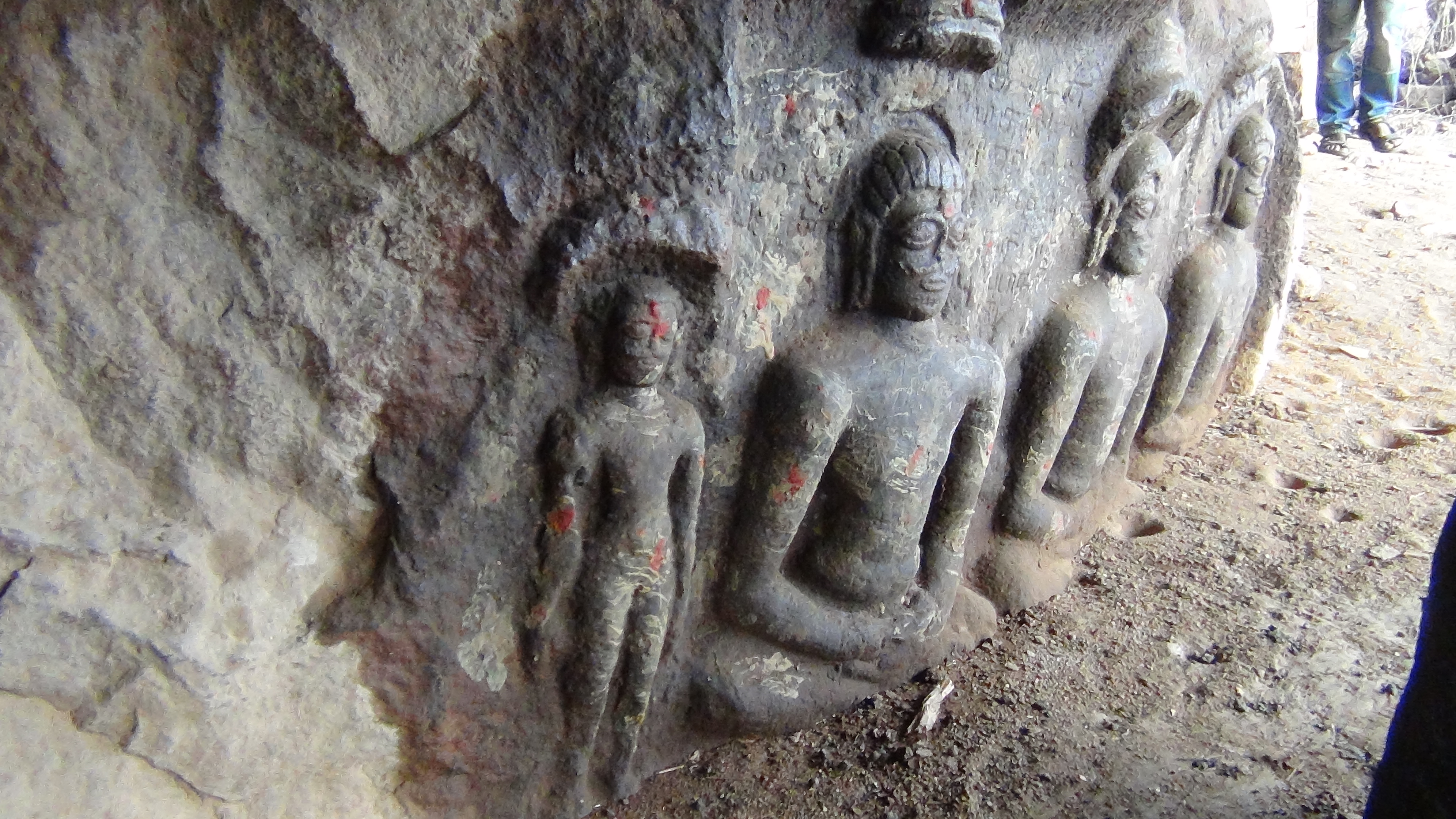 | கோயிலின் அமைப்பு | குடைவரை போன்ற அமைப்பில் பெரும் பாறையின் கீழே கோயில் போன்று மலைப்பாறையில் புடைப்புச் சிற்பங்கள் செதுக்கப்பட்டுள்ளன. இக்குடைவரையில் நான்கு தீர்த்தங்கரர்களின் புடைப்புச் சிற்பங்கள் காட்டப்பட்டுள்ளன. அமர்ந்த நிலையில் உள்ள தீர்த்தங்கரர்களின் மூன்று உருவங்கள் முக்குடையுடன் காட்டப்பட்டுள்ளன. நின்ற நிலையில் ஒரு தீர்த்தங்கரர் உருவம் செதுக்கப்பட்டுள்ளது. அமர்ந்த நிலையில் உள்ள தீர்த்தங்கரர் உருவங்களுக்கு நடுவே கல்வெட்டு காணப்படுகின்றது. |