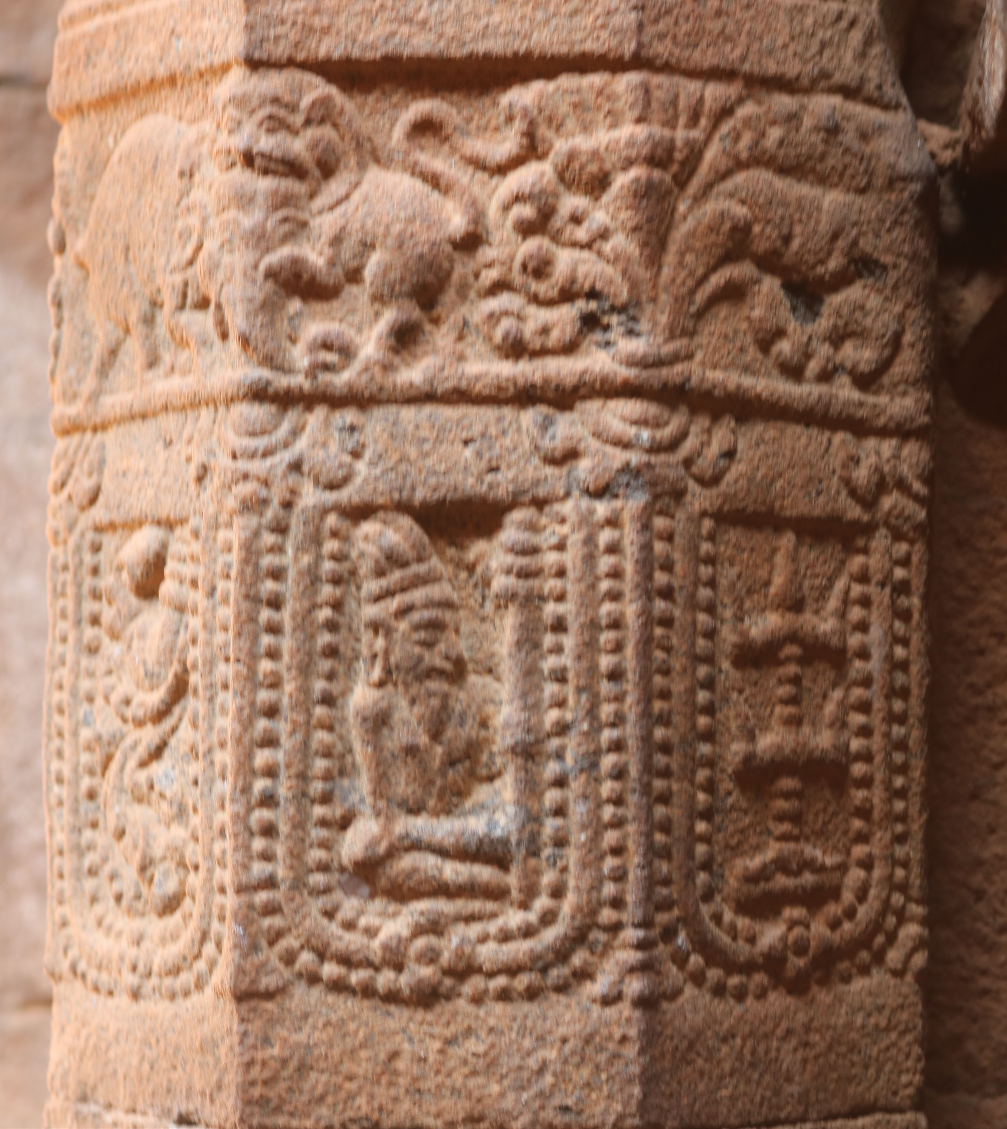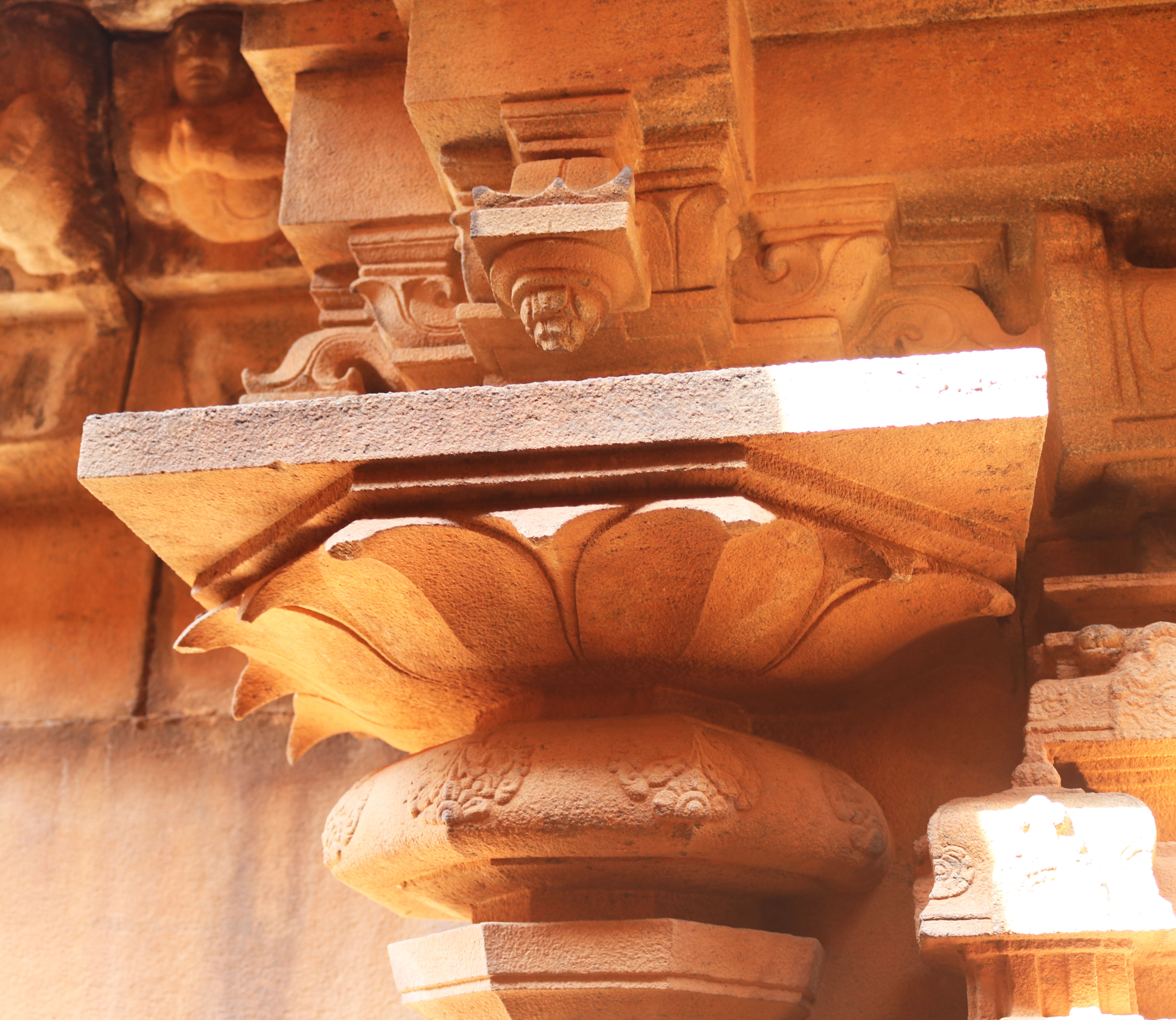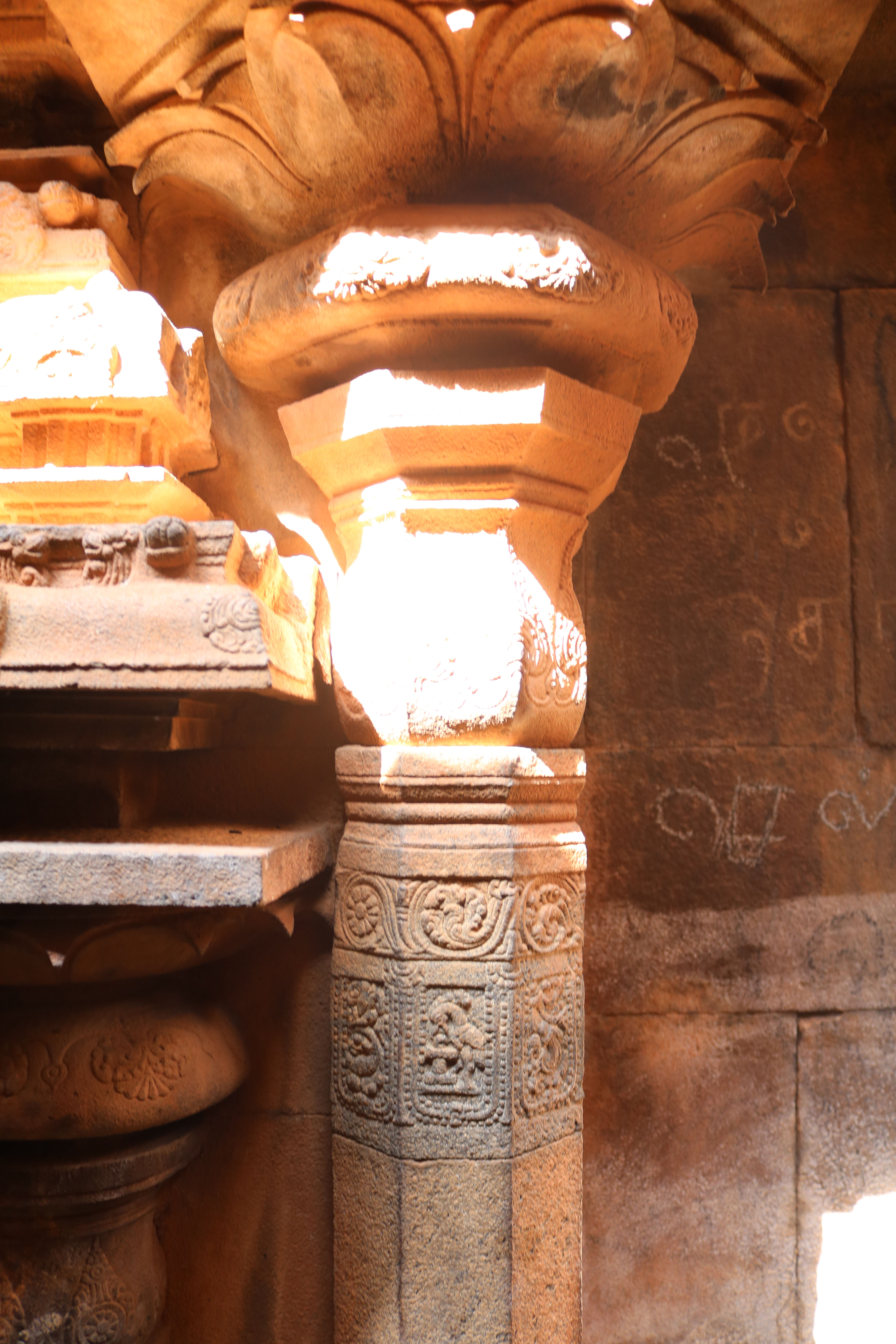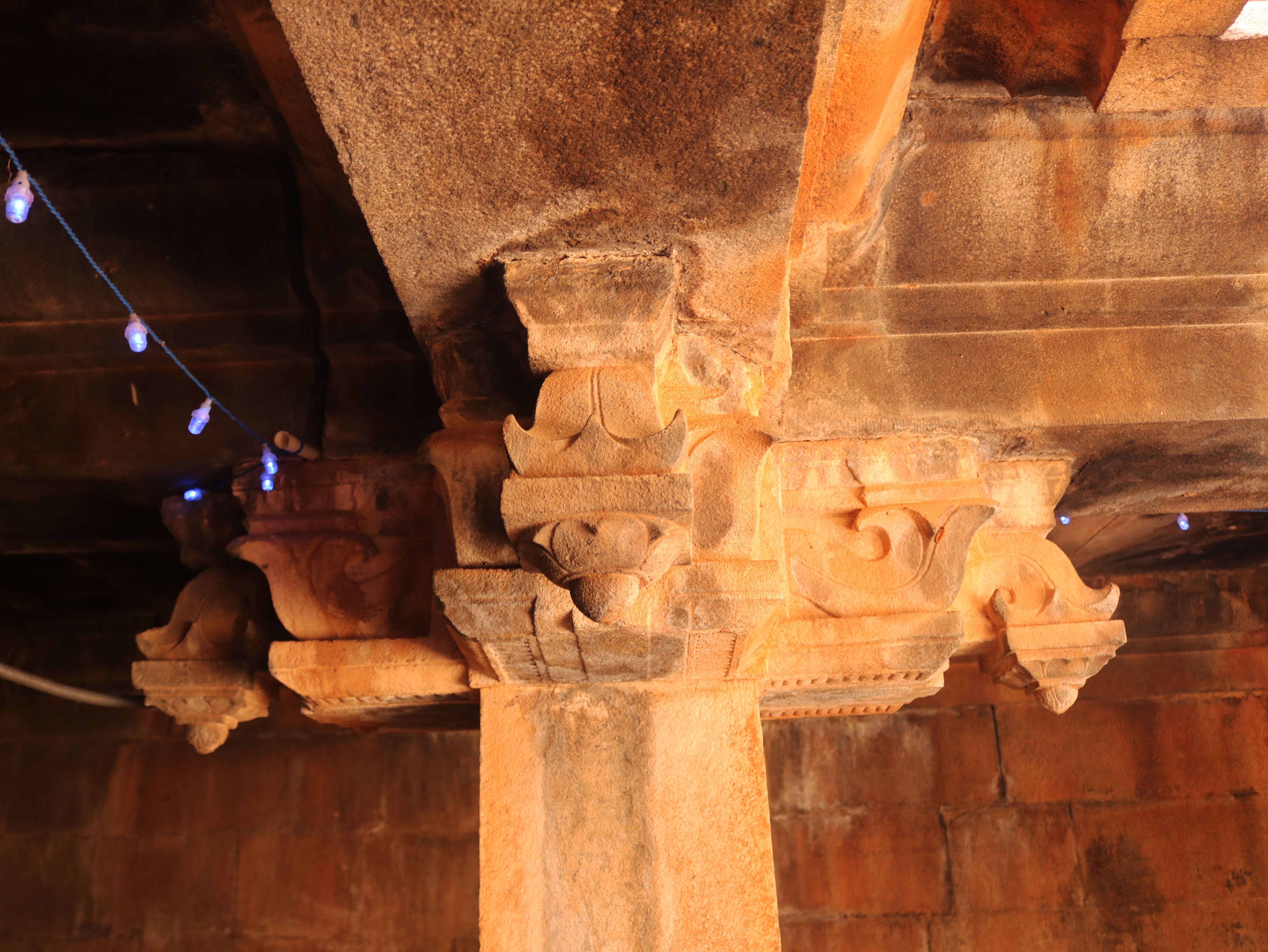 | சிற்பங்கள் | கருவறையில் இலிங்க வடிவில் இறைவன் காட்சியளிக்கிறார். இக்கோயிலில் கருவறை விமானத்தின் தேவகோட்டங்களில் தென்முகக்கடவுள், கணபதி, இலிங்கோத்பவர், துர்க்கை ஆகிய சிற்பங்கள் காணப்படுகின்றன. தூண்களின மாலாஸ்தானம் எனப்படும் மாலைத் தொங்கல் பகுதிகளில் வெகு கலை நேர்த்தியான புடைப்புச் சிற்பங்கள் அமைக்கப்பட்டுள்ளன. கண்ணப்பர், புருஷாமிருகம், பெருமாள், முனிவர்கள், திருவிளக்குகள், ஆடல் மகளிர் ஆகிய சிறிய வடிவ சிற்பங்கள் வடிக்கப்பட்டுள்ளன. கூரைப்பகுதியில் காணப்படும் நாசிக்கூடுகளில் ஆடல்வல்லான், கஜசம்ஹாரமூர்த்தி, பிட்சாடனர், கணபதி, ஆடல் மகள், முருகன், நரசிம்மர், வீணாதரர் ஆகிய திருவுருவங்கள் புடைப்புச் சிற்பங்களாக அமைந்துள்ளன. மேலும் கொடுங்கைப் பகுதியின் கீழே வரிசையாக பூதகண வரிசைகள் காட்டப்பட்டுள்ளன. பூதகணங்கள் ஆடல் பாடலோடு, இசைக்கருவிகளை முழக்கியும், ஆனந்தத்தில் களித்துள்ளன. தேவகோட்டங்களின் மேல் பகுதியில் காட்டப்பட்டுள்ள விமானம் அமைப்பில் இருபுறமும் விமானந்தாங்கிகள் அமர்ந்த நிலையில் உள்ளனர். |
