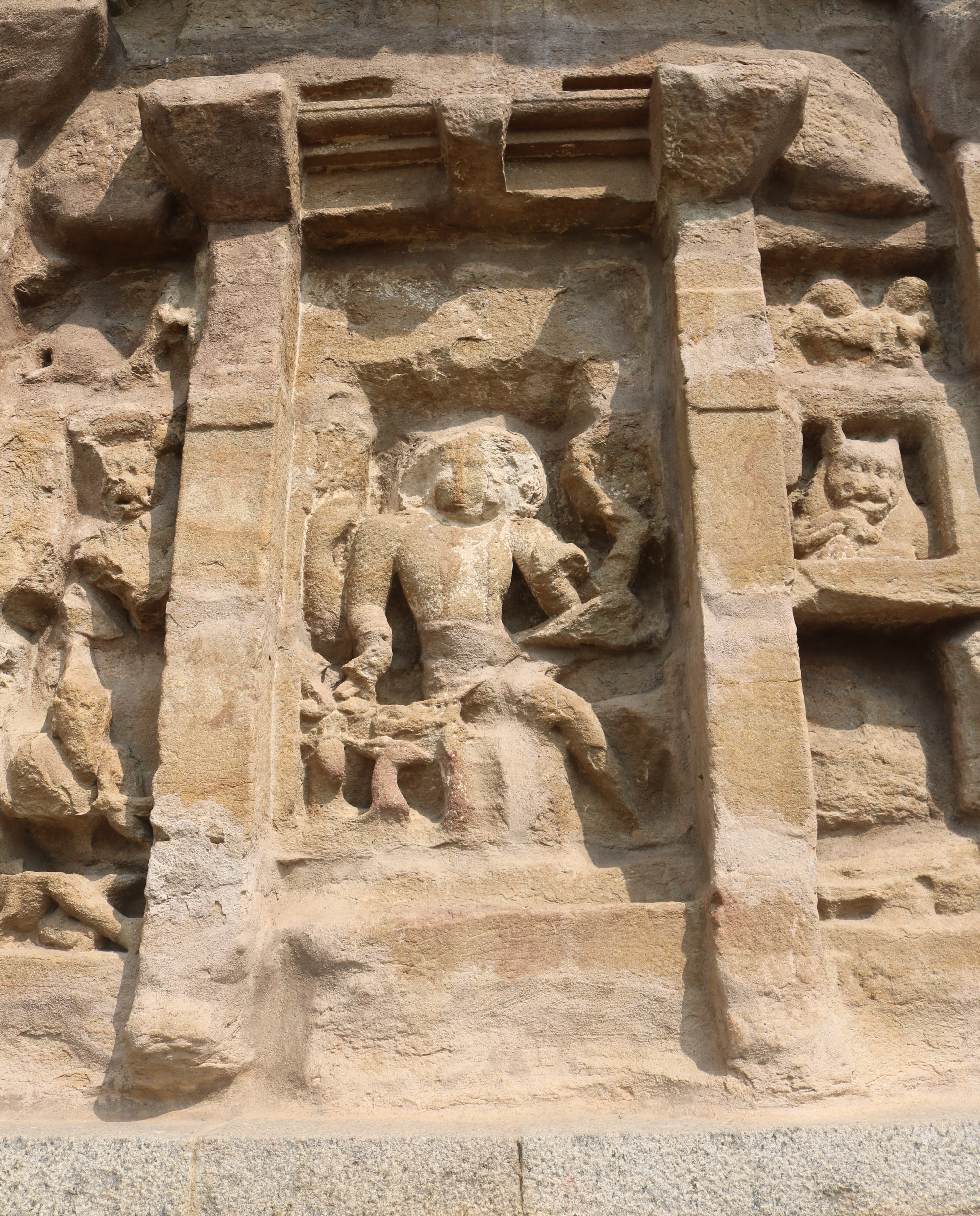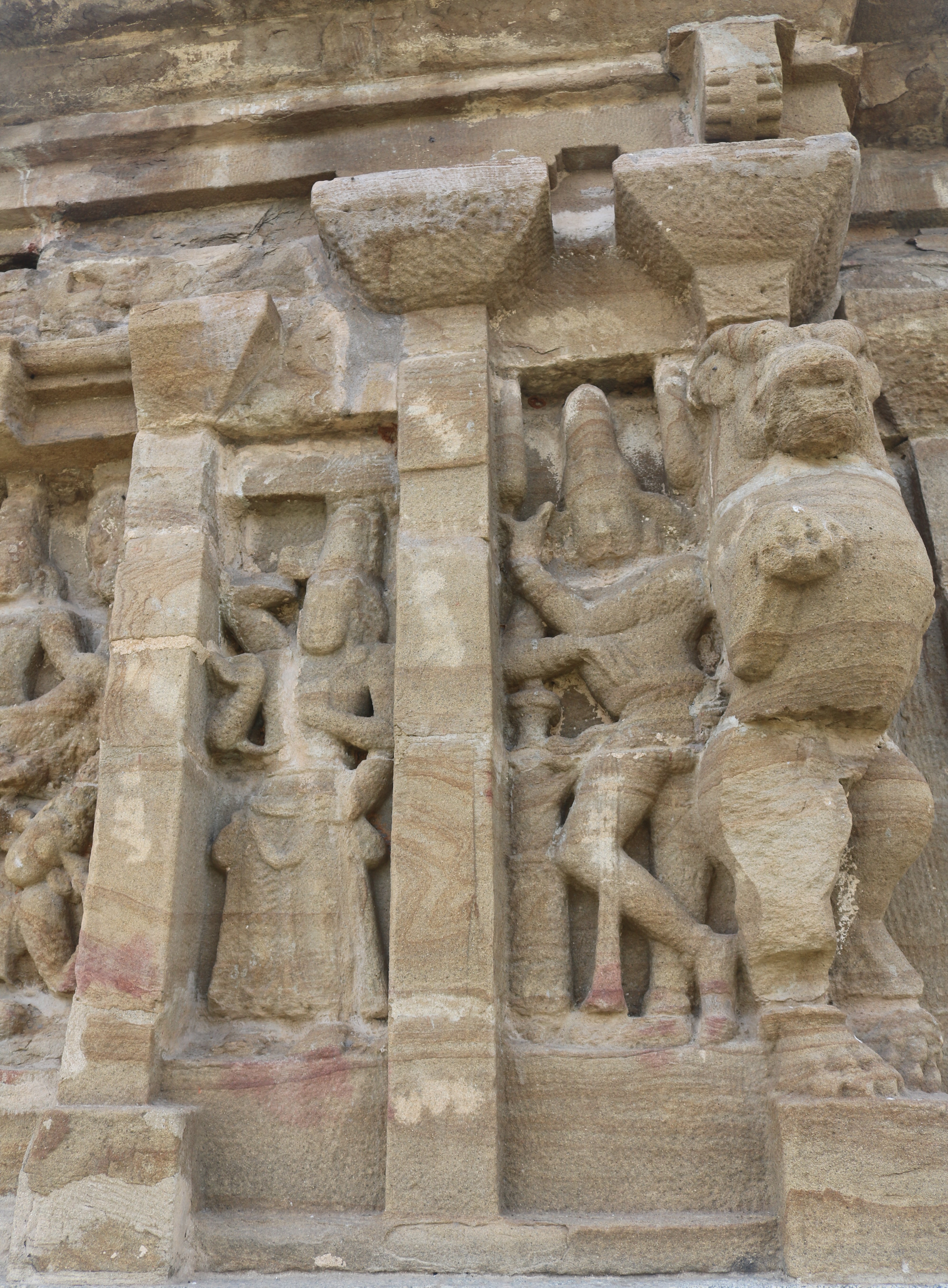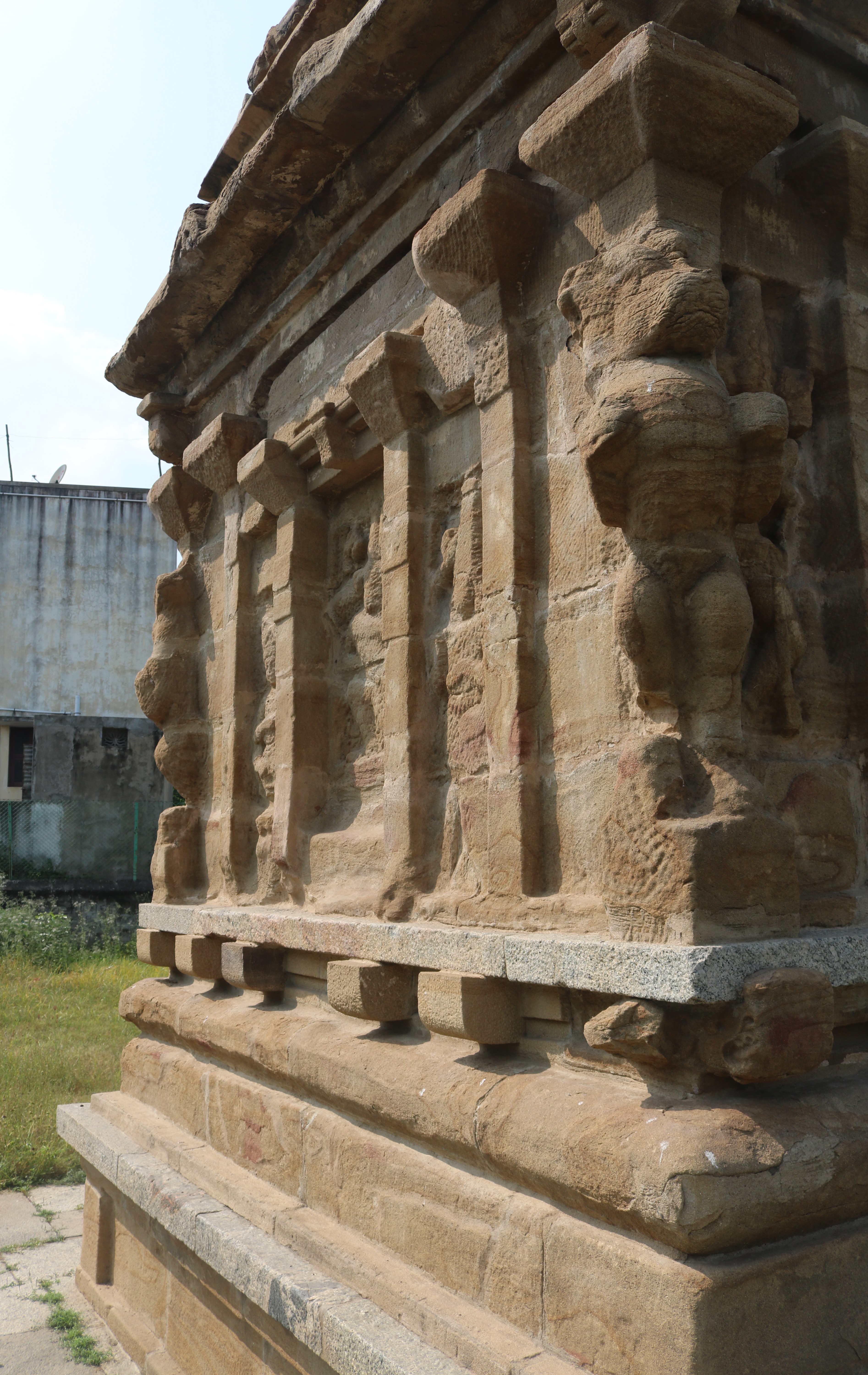 | சிற்பங்கள் | கருவறை வெளிச்சுவரில் புடைப்புச் சிற்பங்கள் காணப்படுகின்றன. பரிவார சந்நிதிகள் இல்லை. இக்கோயிலில் கோபுரம் இடம் பெறவில்லை. கிழக்குப்புறத்தில் உள்ள சிற்பங்கள் மிகவும் சிதைவுற்ற நிலையில் உள்ளன. நின்ற நிலை யாளித்தூண்கள் கருவறை விமான வெளிச்சுவரில் இடம் பெற்றுள்ளன. |