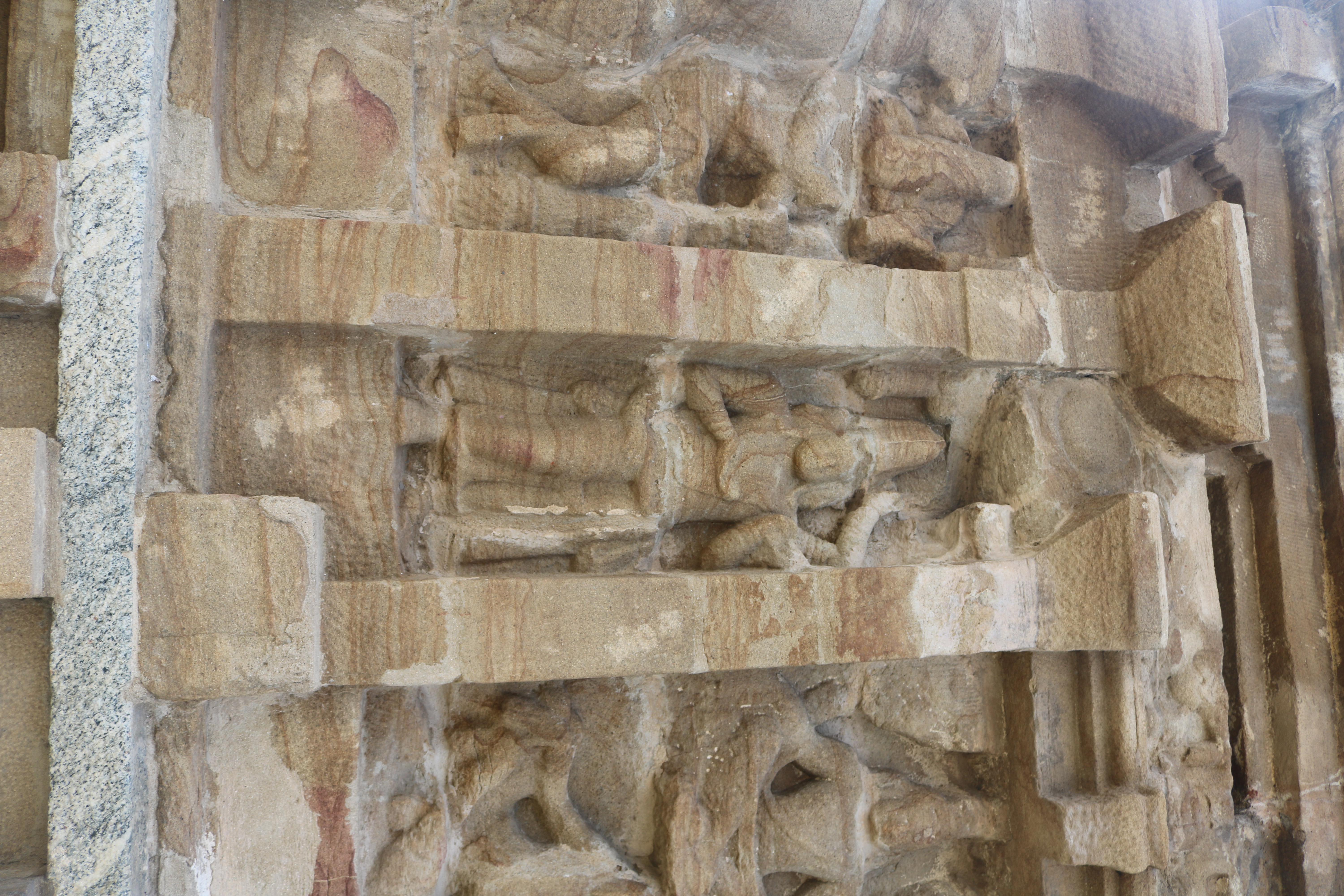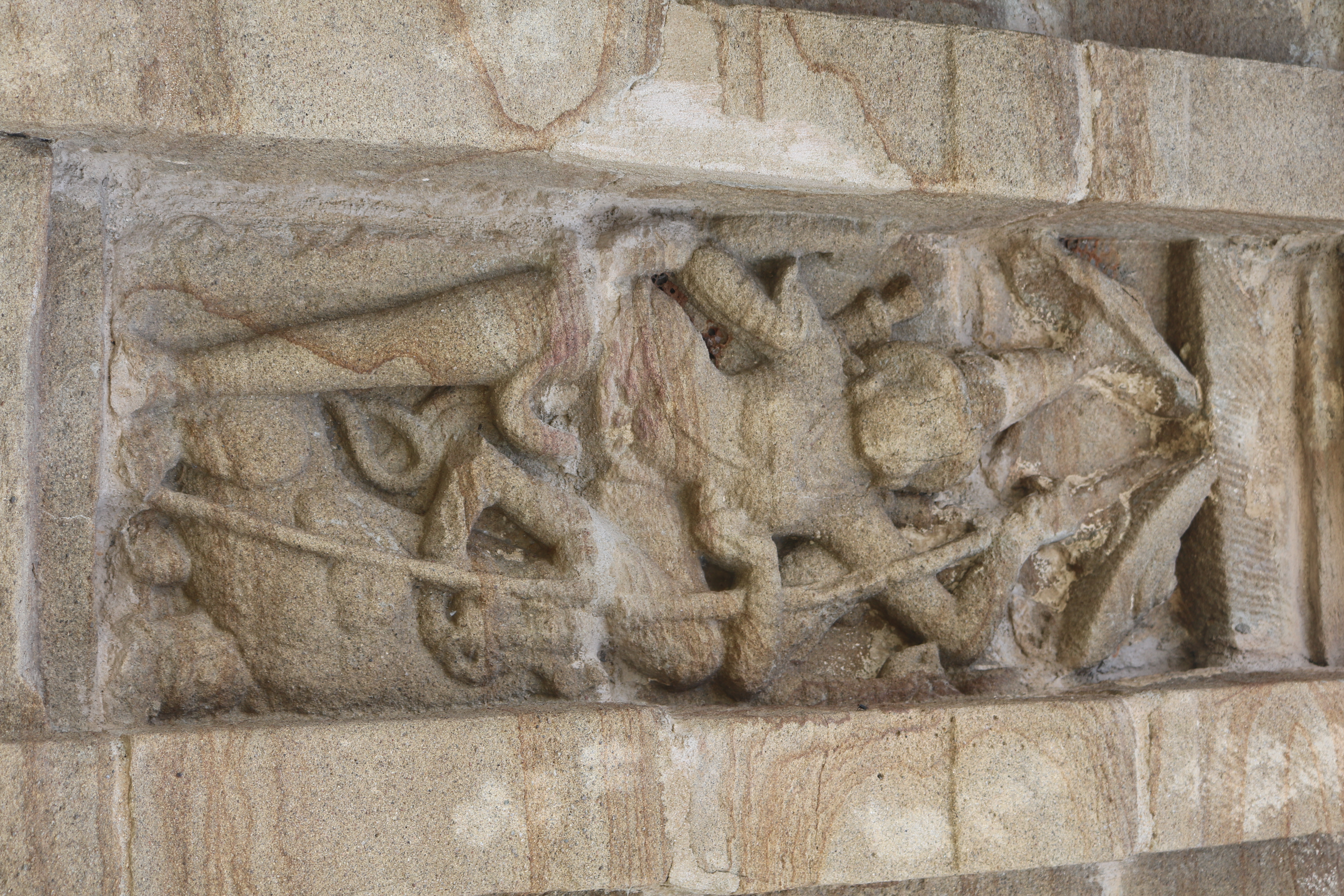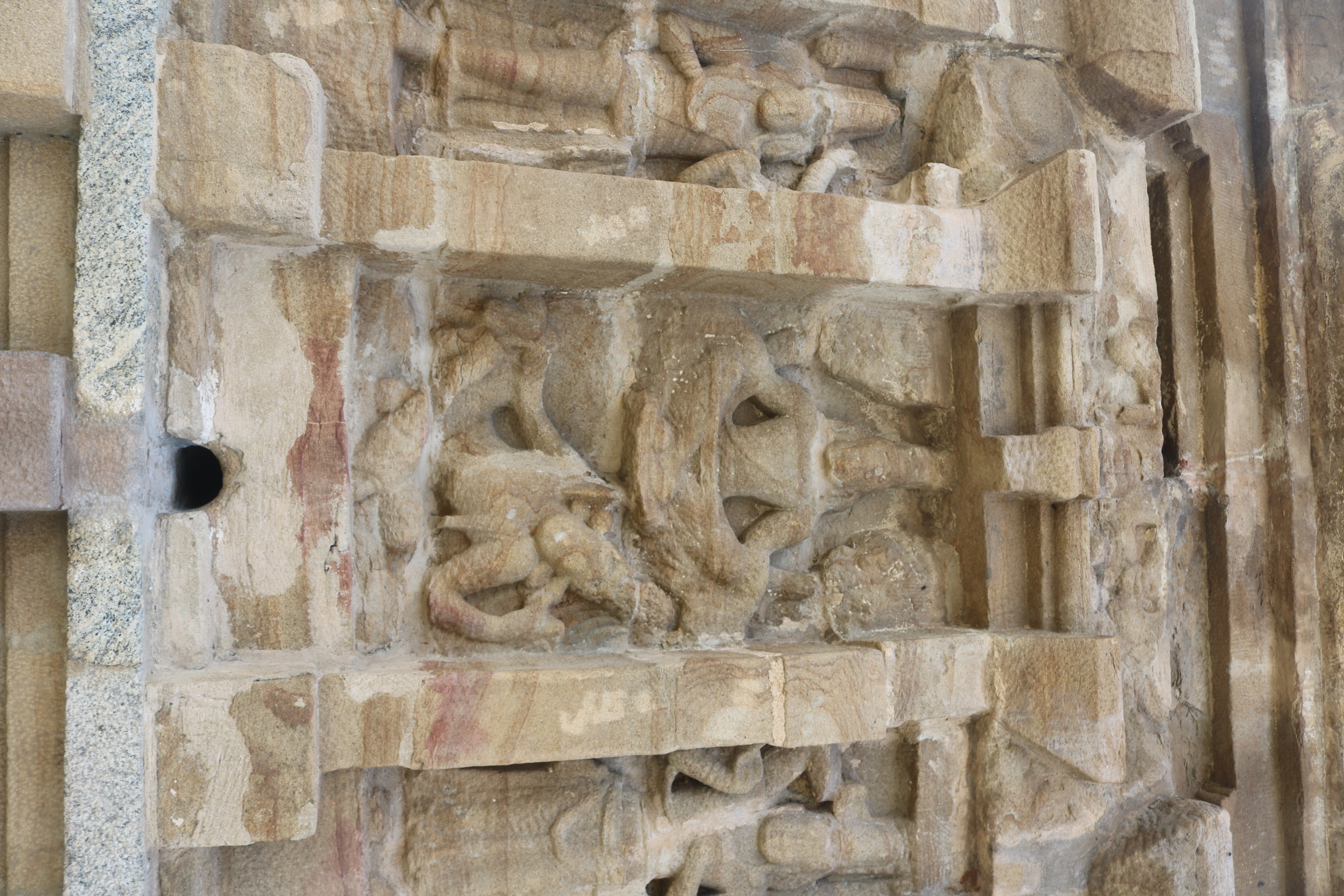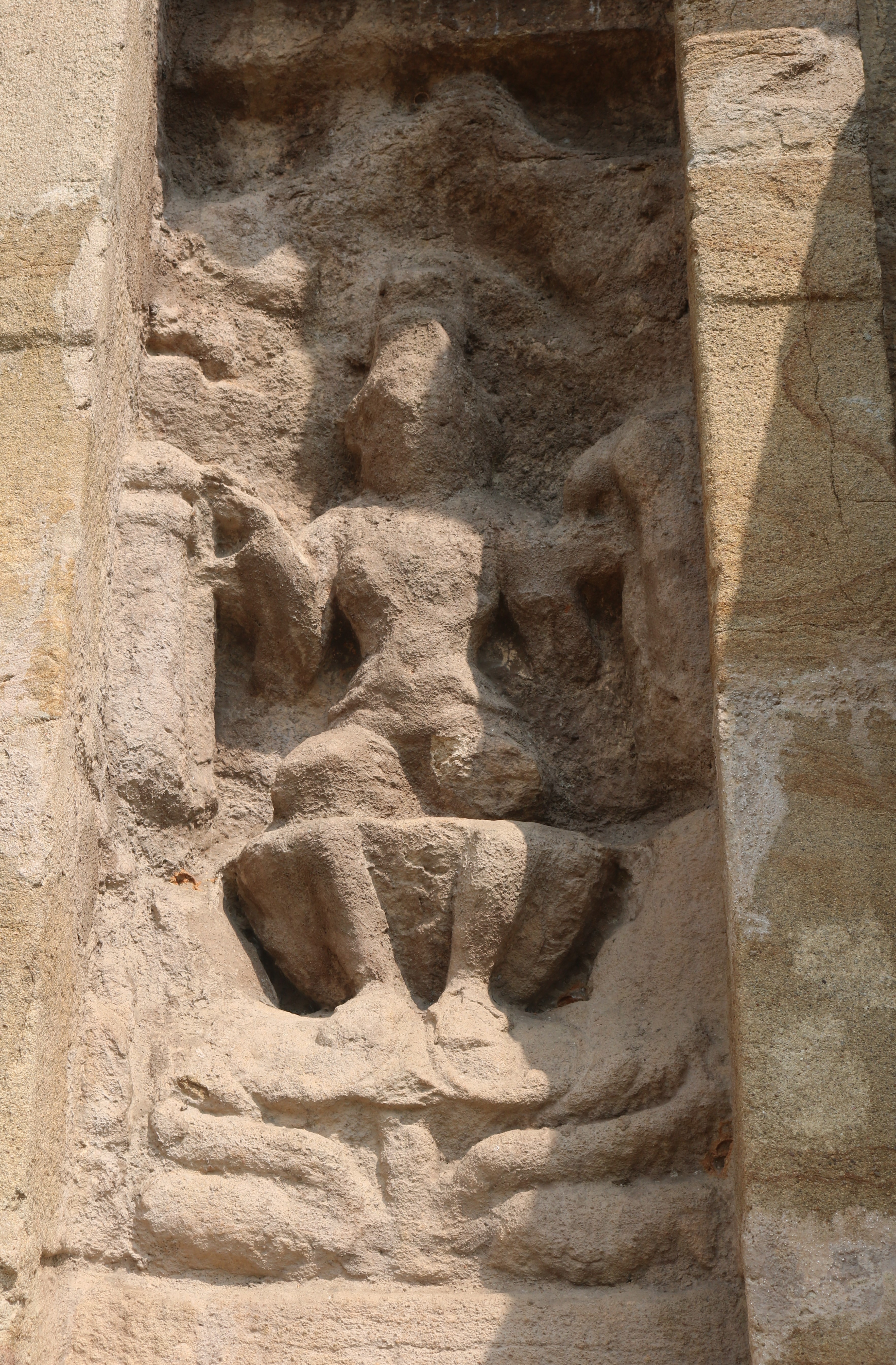 | சிற்பங்கள் | கருவறை வெளிச்சுவரில் புடைப்புச் சிற்பங்கள் காணப்படுகின்றன. பரிவார சந்நிதிகள் இல்லை. இக்கோயிலில் கோபுரம் இடம் பெறவில்லை. கிழக்குப்புறத்தில் உள்ள சிற்பங்கள் மிகவும் சிதைவுற்ற நிலையில் உள்ளன. நின்ற நிலை யாளித்தூண்கள் கருவறை விமான வெளிச்சுவரில் இடம் பெற்றுள்ளன. |