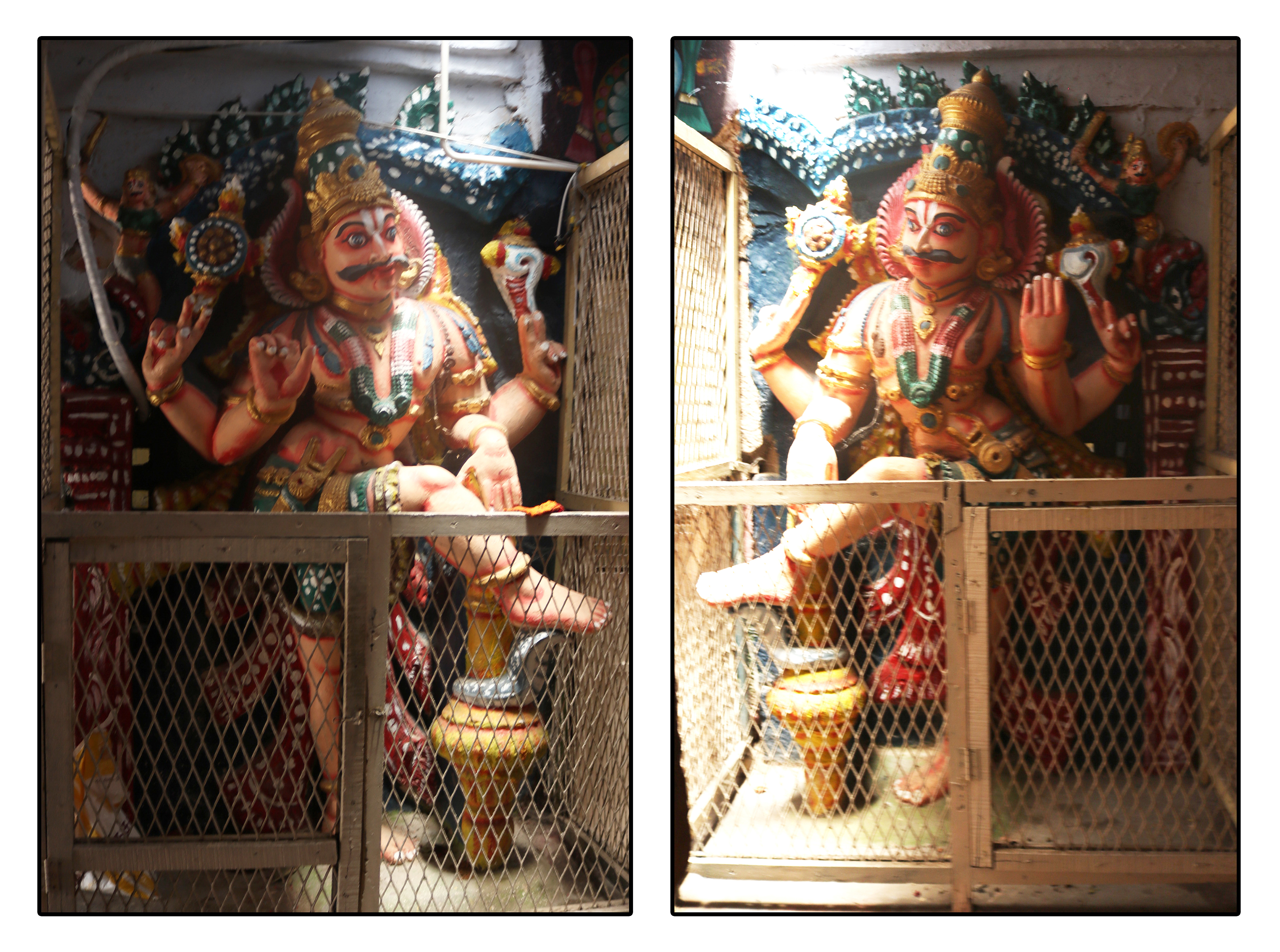 சிற்பங்கள் | ஆதிஜெகந்நாதர் (அமர்ந்த கோலம்), சயனராமர் (கிடந்த கோலம்), பட்டாபிராமர்(நின்ற கோலம்), அரசமரப் பெருமாள், பட்டாபிராமர் என இத்தலத்தில் மகாவிஷ்ணுவின் ஐந்து வடிவங்களையும், மூன்று கோலங்களையும் தரிசிக்கலாம். பொதுவாக மகாலட்சுமியை மடியில் இருத்திக் காட்சி தரும் நரசிம்மர், இங்கு ஸ்ரீதேவி, பூதேவியுடன் காட்சி தருகிறார். |