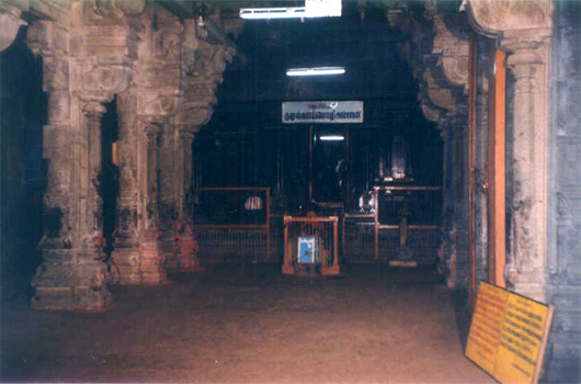 | சிற்பங்கள் | கல்மண்டபத்தில் அறுபத்துமூவர் மூலத்திருமேனிகள் வரிசையாகவுள்ளன. நேரே சோமாஸ்கந்தர் சந்நிதி. பக்கவாயில் வழியாக உட்சென்றால் மூலவர் சந்நிதி. எதிரில் சாளரம் உள்ளது. மூலவர் அழகான சிவலிங்கத் திருமேனி. வெளிச்சுற்றில் அறுபத்துமூவர் திருமேனிகளையடுத்து வரிசையாக சப்தமாதர்களும், சம்பந்தர், மகாவிஷ்ணு, அருணந்திசிவம், மெய்கண்டதேவர் திருமேனிகளும் உள்ளன. விசாலமான உட்பரப்பு. விநாயகர், சுப்பிரமணியர் சந்நிதிகள், கஜலட்சுமி சந்நிதி, மறுகோடியில் நவக்கிரக சந்நிதியும் உள்ளன. நவக்கிரகங்கள் உரிய அமைப்பிலும் உரிய வாகனங்களுடனும் அமைக்கப்பட்டுள்ளன. கோஷ்டமூர்த்தங்களாகப் பிட்சாடனர், தட்சிணாமூர்த்தி, இலிங்கோற்பவர், மகாவிஷ்ணு, துர்க்கை ஆகியோர் உள்ளனர். சண்டேசுவரர் சந்நிதி உள்ளது. அம்பாள் கோயில் இடப்பால் உள்ளது. நின்ற திருக்கோலம். பள்ளியறை உள்ளது. உட்புறத் தூண்களில் பைரவர், தட்சிணாமூர்த்தி சிற்பங்கள் உள்ளன. |