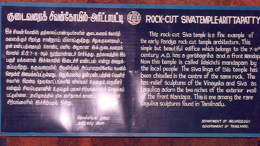 | வழிபாட்டுத் தலத்தின் பெயர் | அரிட்டாப்பட்டி சிவன் குடைவரைக் கோயில் |