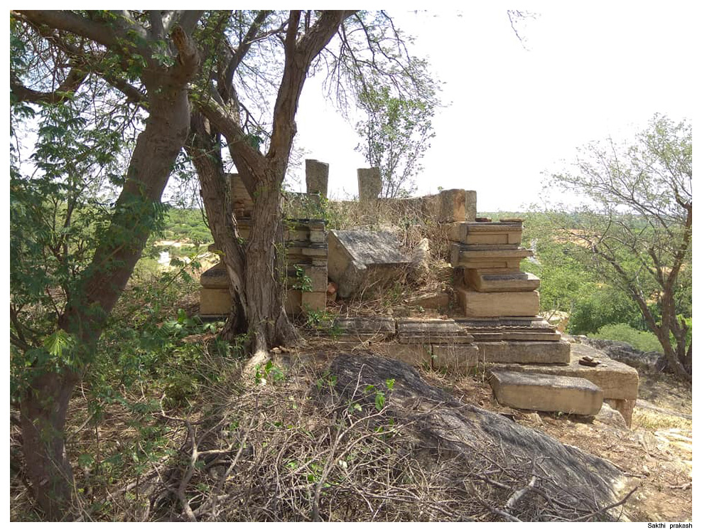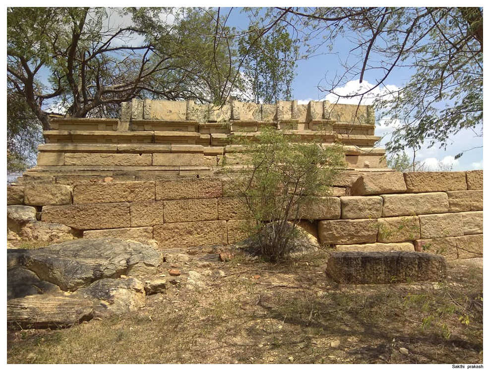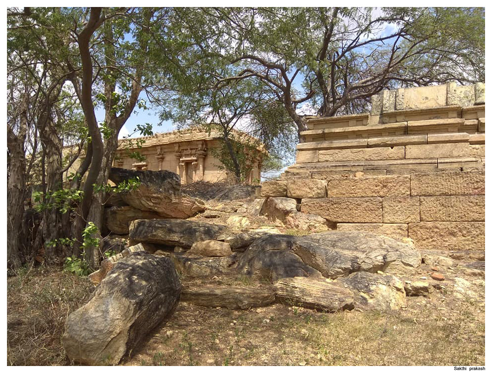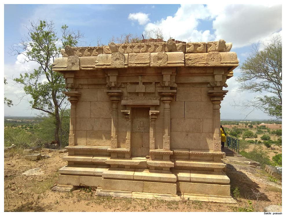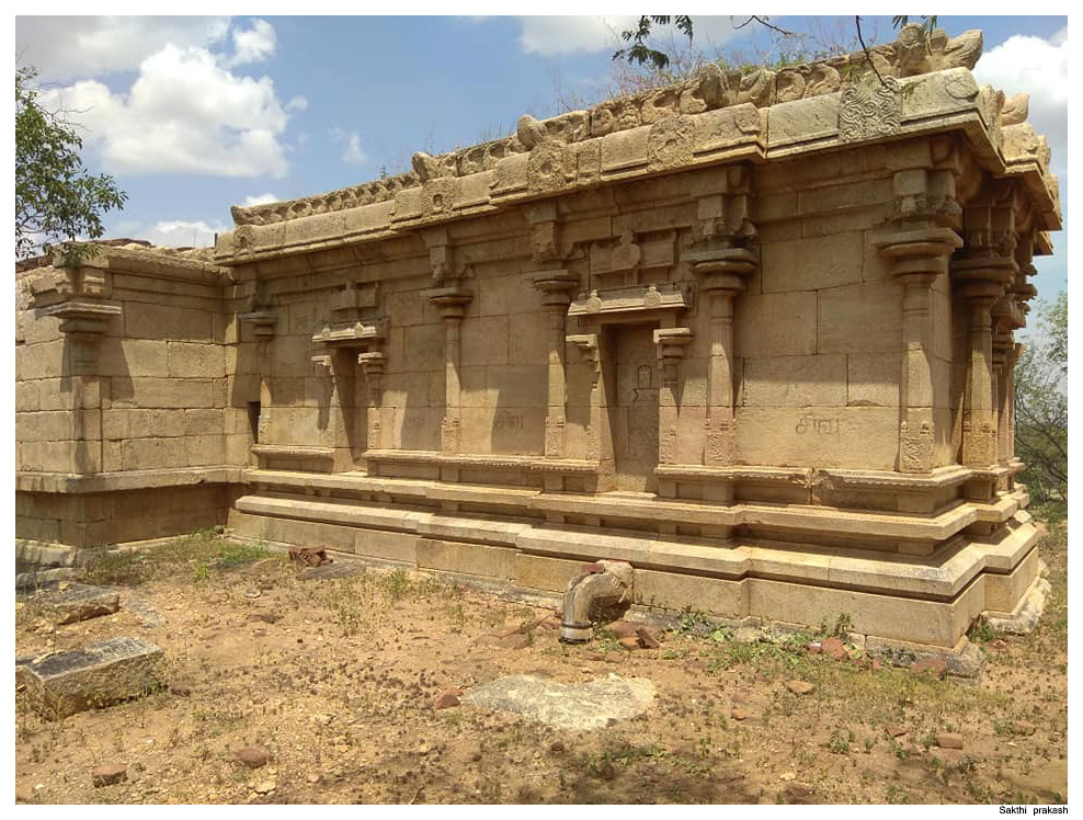 | கோயிலின் அமைப்பு | இக்கோயில் தற்போது சிதிலமடைந்த நிலையில் காணப்படுகிறது. கருவறை, அர்த்தமண்டபம், முகமண்டபம் ஆகிய பகுதிகளை உள்ளடக்கியதாக இக்கோயில் விளங்குகிறது. கருவறை விமானத்தின் தளப்பகுதி சிதைந்து விட்டது. பூமிதேசப்பகுதியோடு காட்சியளிக்கிறது. இக்கோயில் முழுவதும் கற்றளியாக இருந்திருக்க வேண்டும். சதுர வடிவ சிறிய கருவறை. தொடர்ந்த அர்த்தமண்டபம் தென்வடலாக காட்சியளிக்கிறது. அதனையடுத்து முகமண்டபம் தூண்களுடன் அமைந்துள்ளது. விமானத்தின் வெளிப்புறச் சுவர்களில் அமைந்துள்ள தேவகோட்டங்கள் சிற்பங்கள் ஏதுமின்றி அரைத்தூண்களுடன் விளங்குகின்றன. |