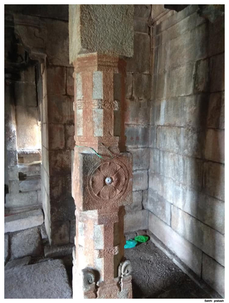 | சிற்பங்கள் | கருவறையில் இலிங்க வடிவில் இறைவன் உள்ளார். முகமண்டபத்தில் அமர்ந்த நிலையில நந்தி உள்ளது. முக மண்டபத்தில் உள்ள தூண்களில் தாமரைப்பதக்கம், நர்த்தன கணபதி ஆகிய புடைப்புச் சிற்பங்கள் காணப்படுகின்றன. தேவகோட்டங்களில் சிற்பங்கள் ஏதும் காணப்படவில்லை. கருவறை விமானத்தின் பூமிதேசப் பகுதியில் யாளி வரிசை காட்டப்பட்டுள்ளது. |