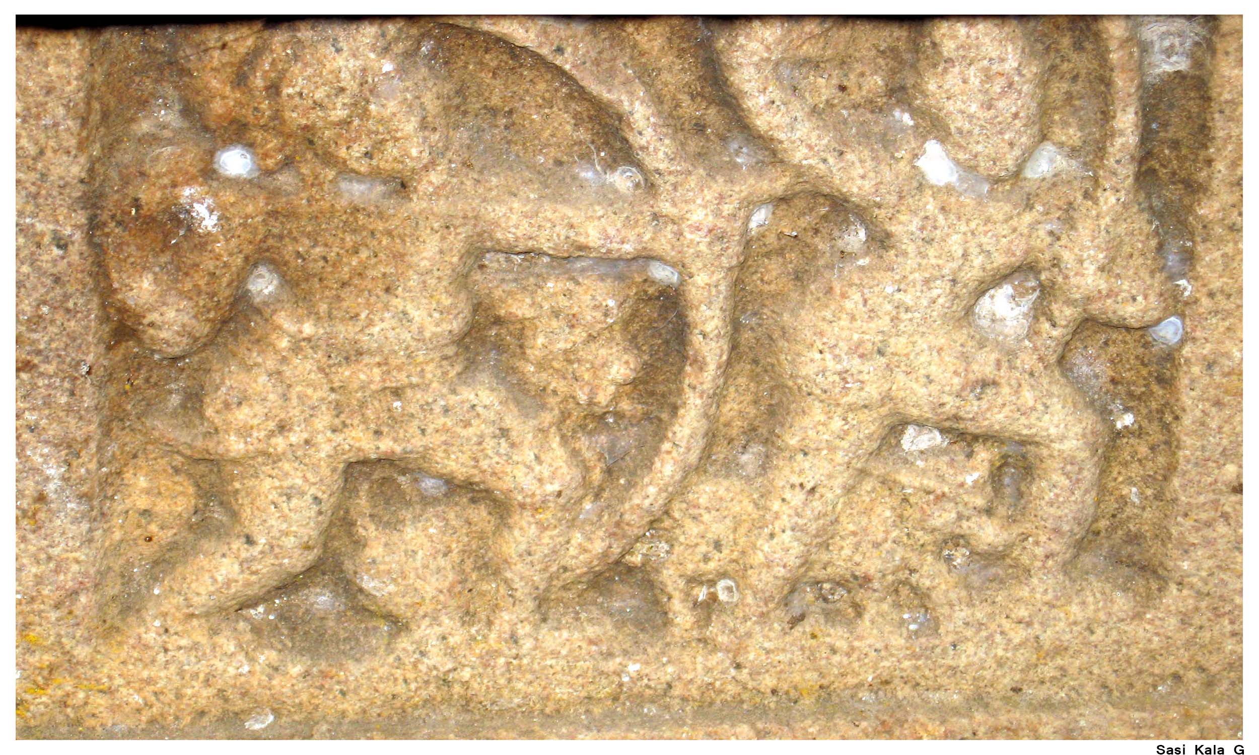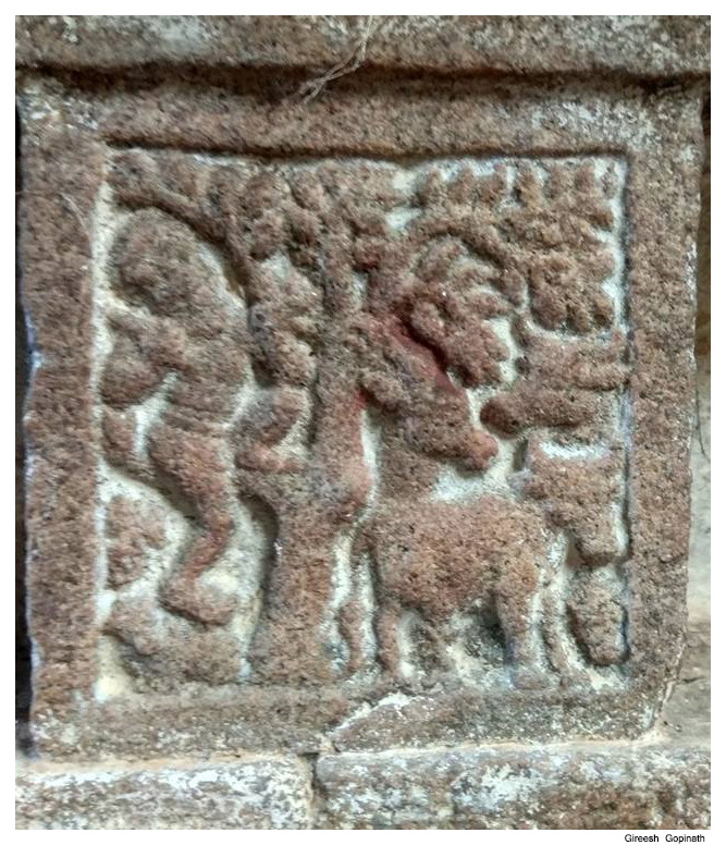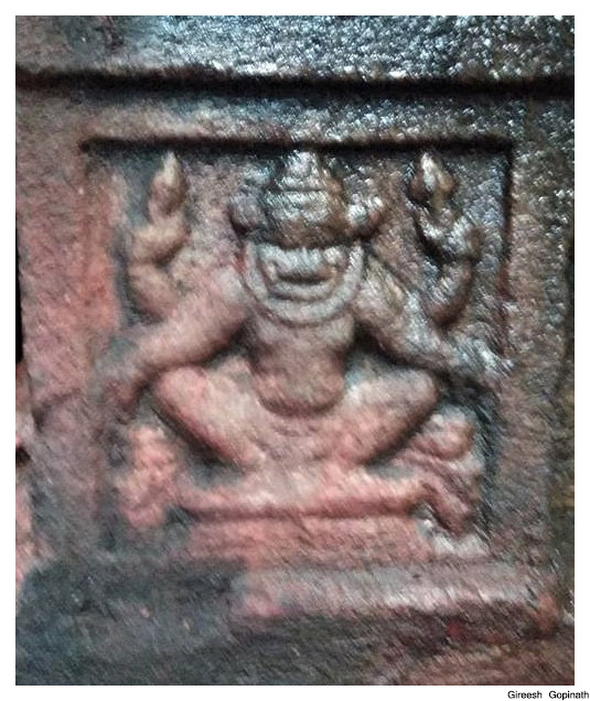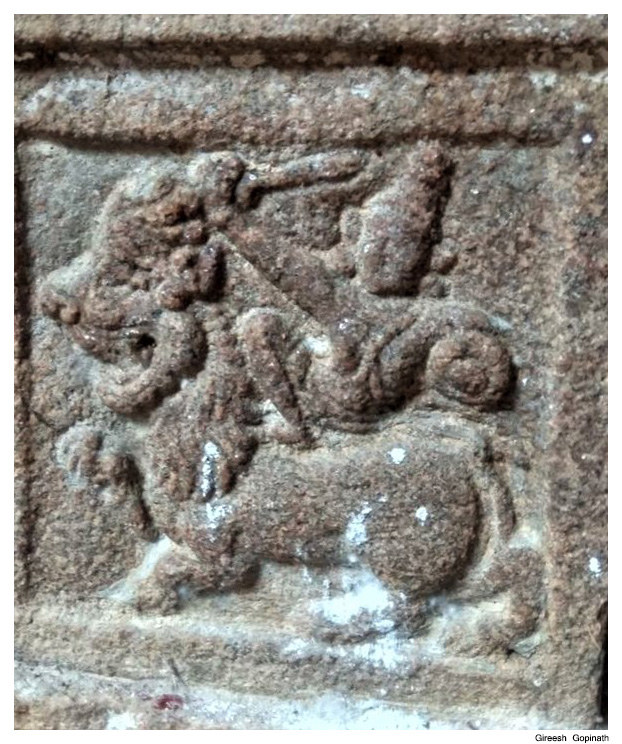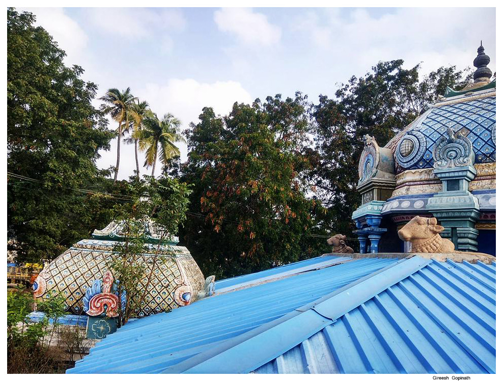 | சிற்பங்கள் | கருவறை வாயிலின் இருபுறத்திலும் சுமார் எட்டு அடி உயரத்தில் துவாரபாலகர் சிற்பங்கள் அமைந்துள்ளன. கிழக்கு நோக்கிய கருவறையில் விஷமங்களேஸ்வரர் லிங்க உருவில் காட்சியளிக்கிறார். மகாமண்டபத்தில் தெற்கு நோக்கி மங்களநாயகியின் திருமுன் அமைந்துள்ளது. கோயிலின் நுழைவில் இடதுபுறம் ஸ்ரீதேவி-பூதேவி சமேதராக அமர்ந்த நிலையில், நான்கு கரங்களுடன், பின் வலதுகரத்தில் பிரயோகச் சக்கரத்துடன் திருமால் காட்சி தருகிறார். கருவறையின் தென்புற தேவகோட்டத்தில் வீணையை ஏந்தி, நின்ற கோலத்தில் வீணாதரர் காட்சியளிக்கிறார். இவர் "திகசண்டளா வீணா தட்சிணாமூர்த்தி" ஆவார். கருவறையின் மேற்குப்புற தேவகோட்டத்தில் உமா ஆலிங்கன மூர்த்தி, தொடர்ந்து மேற்கே, தனித் திருமுன்னில் லட்சுமி நாராயணர், கருவறை விமானத்தின் வடபுற தேவகோட்டத்தில் நான்முகன், கலைமகள், அர்த்தமண்டப வடக்கு வெளிப்புற கோட்டத்தில் துர்க்கை, தென்புற கோட்டத்தில் கணபதி ஆகிய சிற்பங்கள் காணப்படுகின்றன. மேலும் தாங்குதளத்தின் கண்டபாதத்தில் புடைப்புச் சிற்பங்கள் குறுஞ்சிற்பங்களாக அமைக்கப்பட்டுள்ளன. இவற்றுள் யானையின் மகப்பேறுக் காட்சி, ஆனையுரித்த தேவர், நரசிம்மர், ஆடல்வல்லான், ஆடல் மகளிர், திருமால் போன்ற சிற்பக் காட்சிகள் புடைப்பிக்கப்பட்டுள்ளன. |