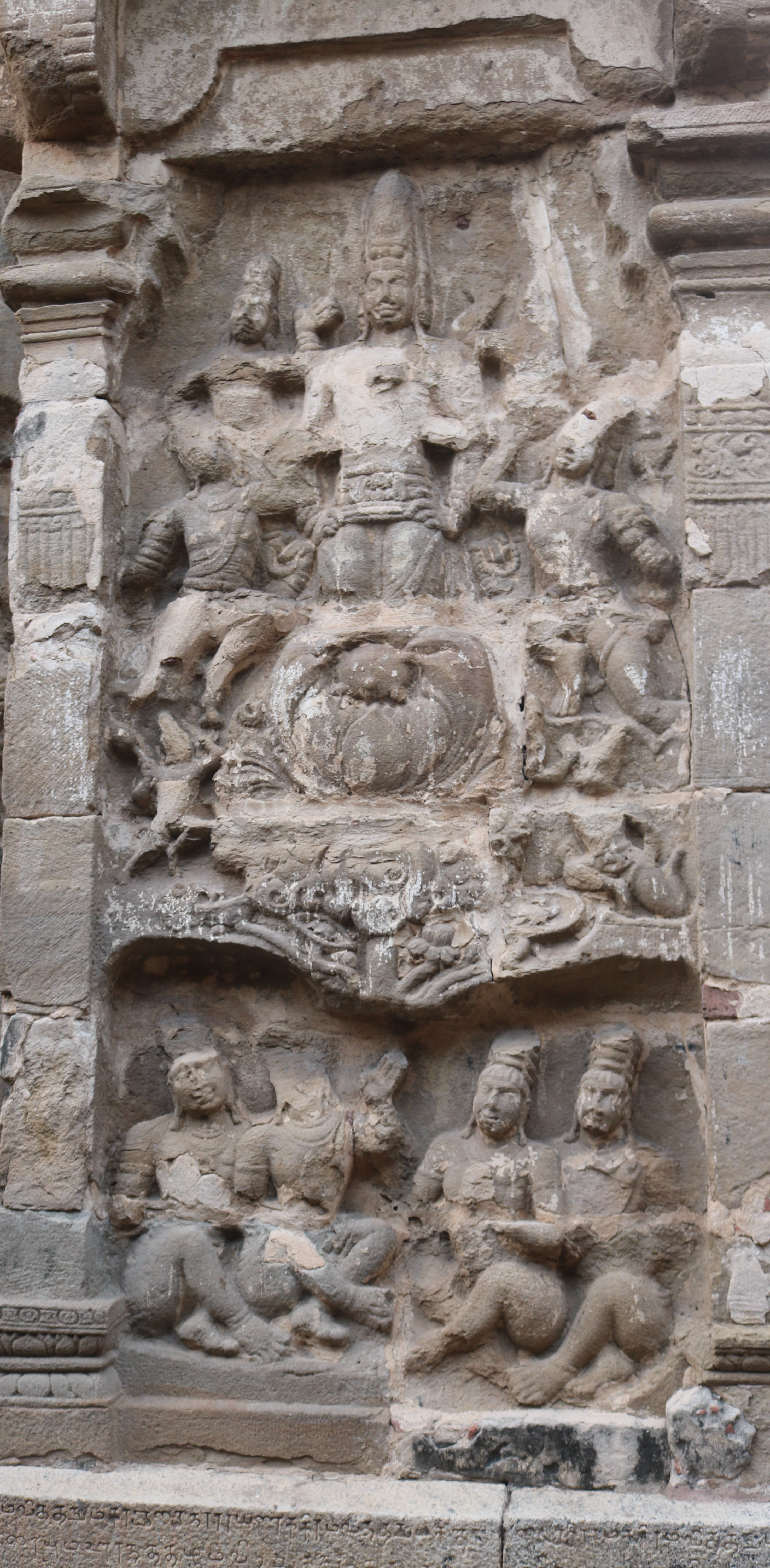 | கோயிலின் அமைப்பு | உயர்ந்த உபபீடத்தின் மீது கருவறை அமைக்கப்பட்டுள்ளது. கருவறை விமானம் மூன்று தளங்களை உடையது. மூன்று கருவறைகளை கொண்டதாக இக்கோயில் அமைந்திருக்கிறது. தளங்களின் சுற்றுச் சுவர்களிலும் பெருமாளின் அவதாரங்கள் சிற்பங்களாக வடிக்கப்பட்டுள்ளன. திருச்சுற்றுமாளிகையில் நான்குபுறமும் புடைப்புச் சிற்பங்கள் அமைந்துள்ளன. மகாமண்டபம் தூண்களும் அமைந்துள்ளது. |