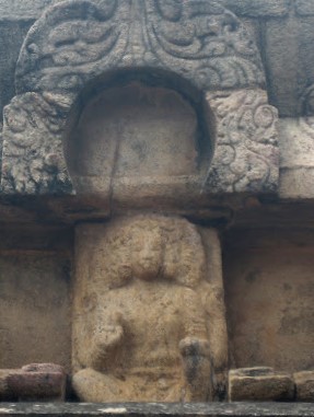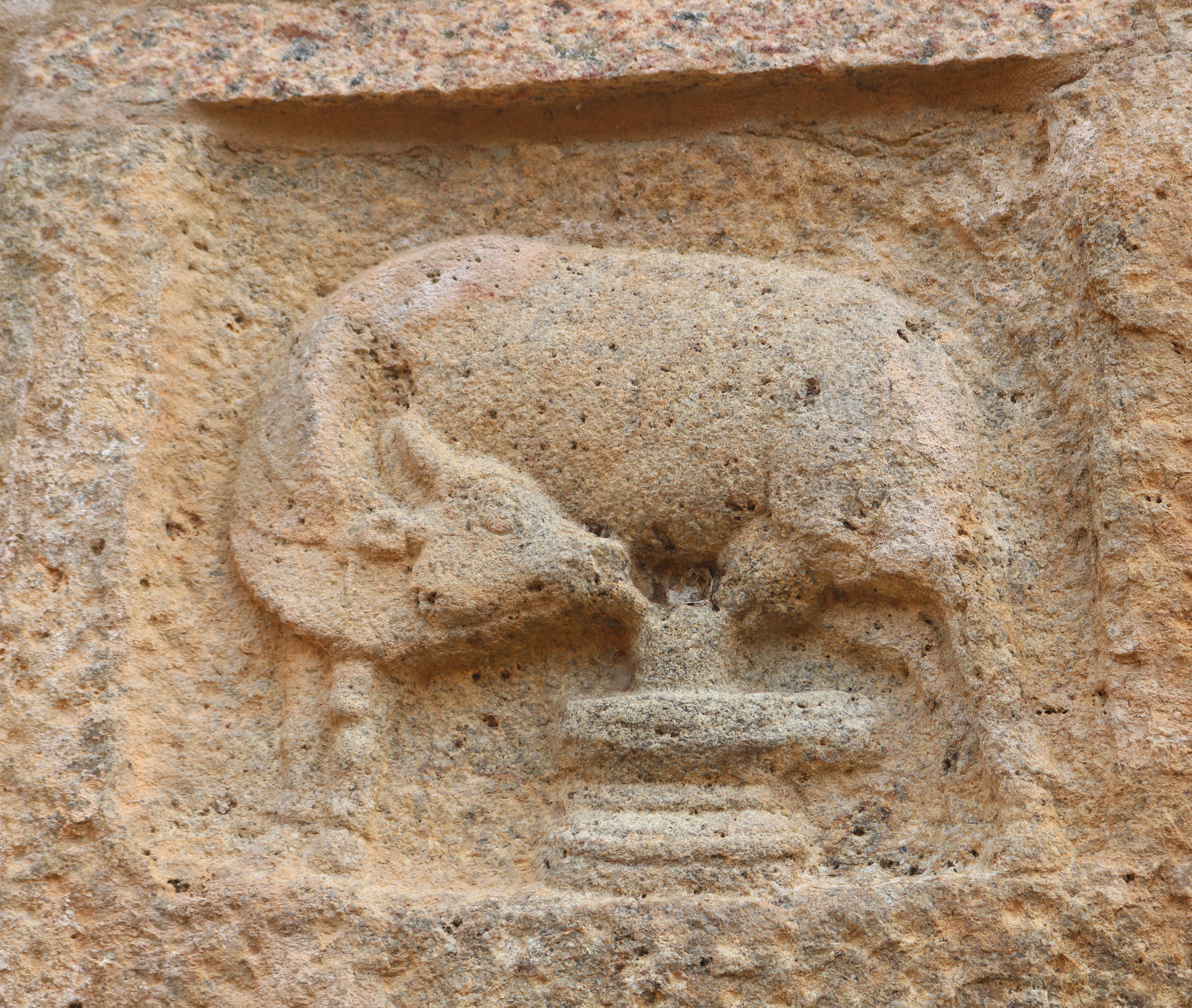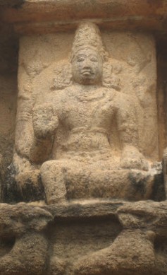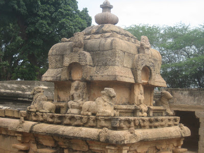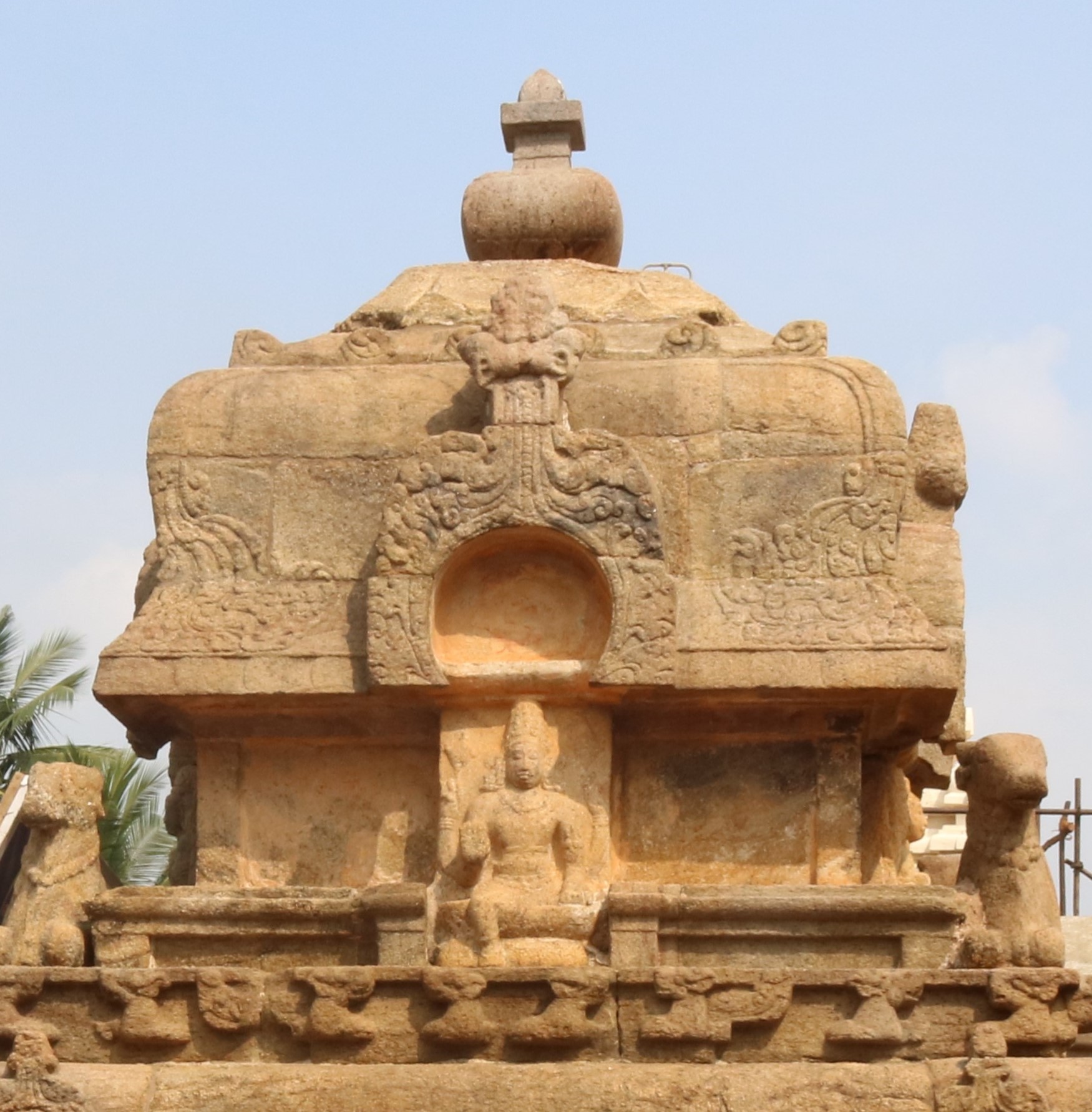 | சிற்பங்கள் | தள உறுப்பான கிரீவப்பகுதியின் (தலை) நடுவே தெற்கே தட்சிணாமூர்த்தி, மேற்கே விஷ்ணு, வடக்கே பிரம்மா, நான்கு மூலைகளிலும் நந்தி, கருவறையில் இலிங்கம் ஆகிய சிற்பங்கள் உள்ளன. |