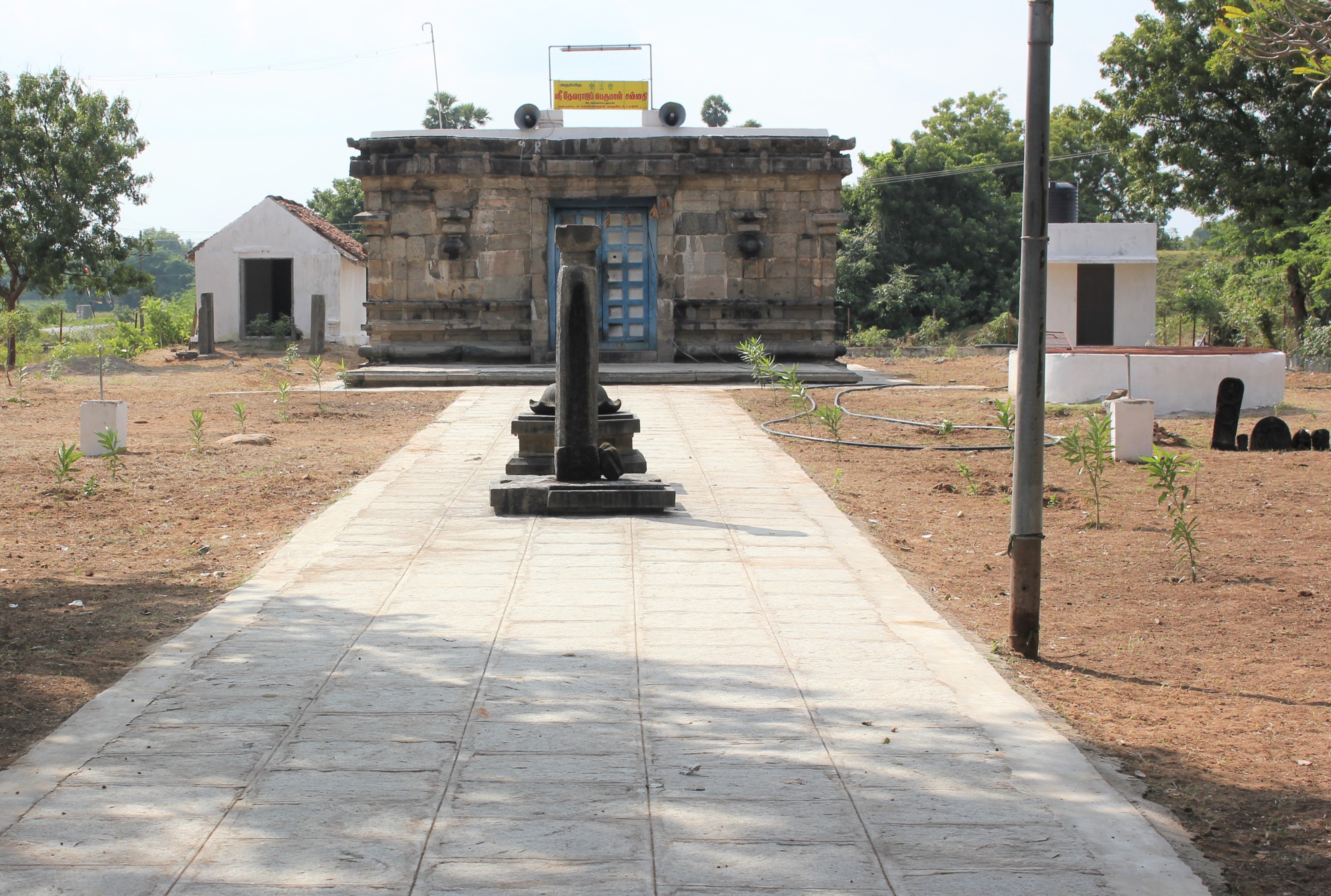 | கோயிலின் அமைப்பு | இக்கோயில் முழுவதும் புனரமைக்கப்பட்டுள்ளது. கருவறை தேவகோட்டங்களில் பிற்கால சிற்பங்கள் இடம்பெற்றுள்ளன. கருவறை சதுர வடிவில் அமைந்துள்ளது. விமானம் தளப்பகுதி தற்போது காணப்படவில்லை. கருவறையில் விஜயநகர காலத்திய விஷ்ணு வடிவம் அமைந்துள்ளது. இக்கோயில் சோழர்களுக்குப் பின் விஜயநகர கலைப்பாணியையும் கொண்டு அமைந்துள்ளது. |