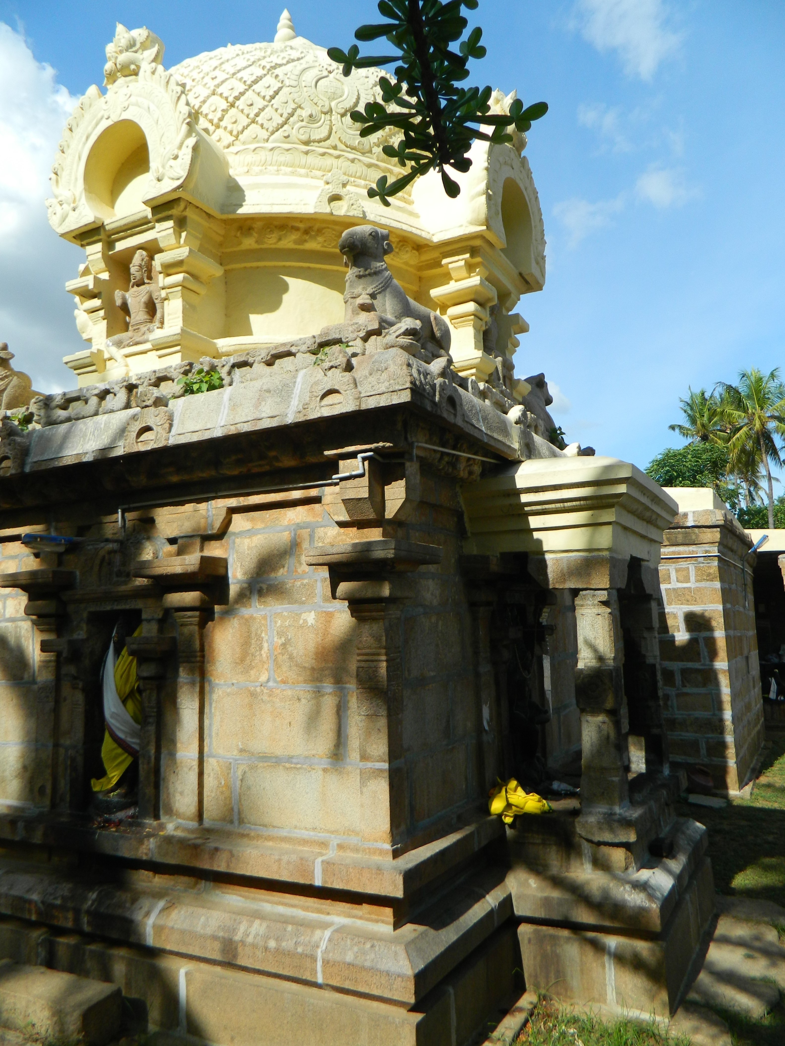 | கோயிலின் அமைப்பு | கோயில் கிழக்கு நோக்கி அமைந்துள்ளது. நுழைவாயிலைத் தொடர்ந்து நந்தி, பலிபீடம் ஆகியன அமைந்துள்ளன. இக்கோயிலில் கொடிமரம் இல்லை. ஒரு தளக் கற்றளியாக இக்கோயில் உள்ளது. புனரமைக்கப்பட்ட நிலையில் இக்கோயிலின் கல்வெட்டுகள் மாற்றி வைக்கப்பட்டுள்ளமையை காணமுடிகிறது. கருவறை விமானம் கூரைப்பகுதி வரை கற்றளியாகவும், அதன் மேற்பகுதி தற்காலத்திய சுதைப்பணியாகவும் காட்சியளிக்கிறது. சதுரவடிவ கருவறையில் இலிங்க வடிவில் இறைவன் உள்ளார். கருவறையைத் தொடர்ந்து சிறிய அர்த்தமண்டபம் மற்றும் முக மண்டபம் உள்ளன .கருவறை விமானத்தின் சுவர்ப்பகுதியில் அரைத்தூண்களுக்கிடையில் அமைந்துள்ள தேவகோட்டங்களில் விஷ்ணு, நான்முகன் மற்றும் அர்த்தமண்டப புறக் கோட்டங்களில் விநாயகர் மற்றும் துர்க்கை ஆகிய சிற்பங்கள் காணப்படுகின்றன. விமானத்தின் தாங்குதளத்தில் உள்ள குமுதப்படையில் கல்வெட்டுகள் காணப்படுகின்றன. |