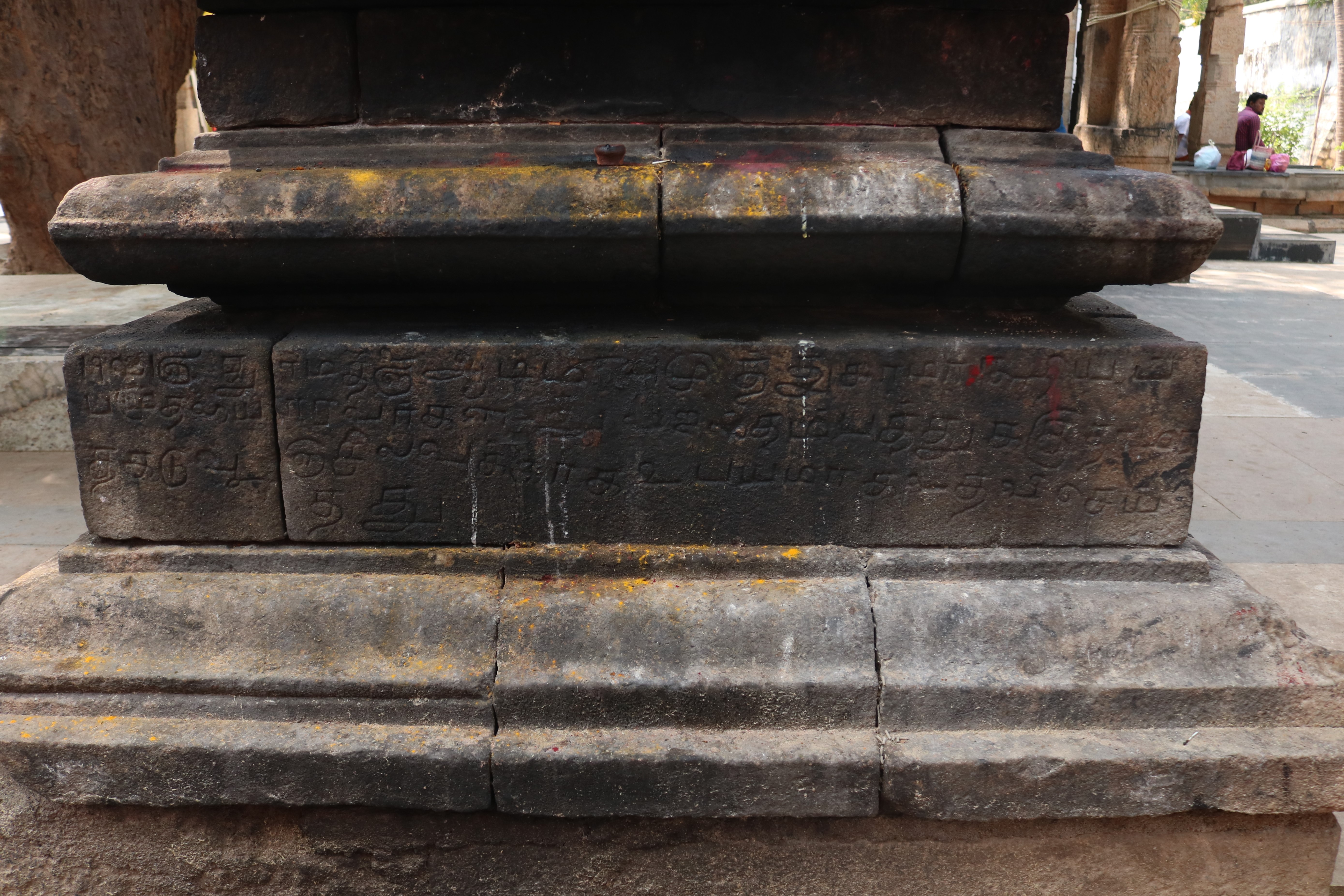 | கல்வெட்டு / செப்பேடு | விமானத்தின் தாங்குதளத்தில் உள்ள குமுதப்படையில் கல்வெட்டுகள் காணப்படுகின்றன. இக்கோயில் சோழர் காலத்தியது. முதலாம் இராஜராஜ சோழனின் கல்வெட்டுகளைப் பெற்றுள்ளது. |