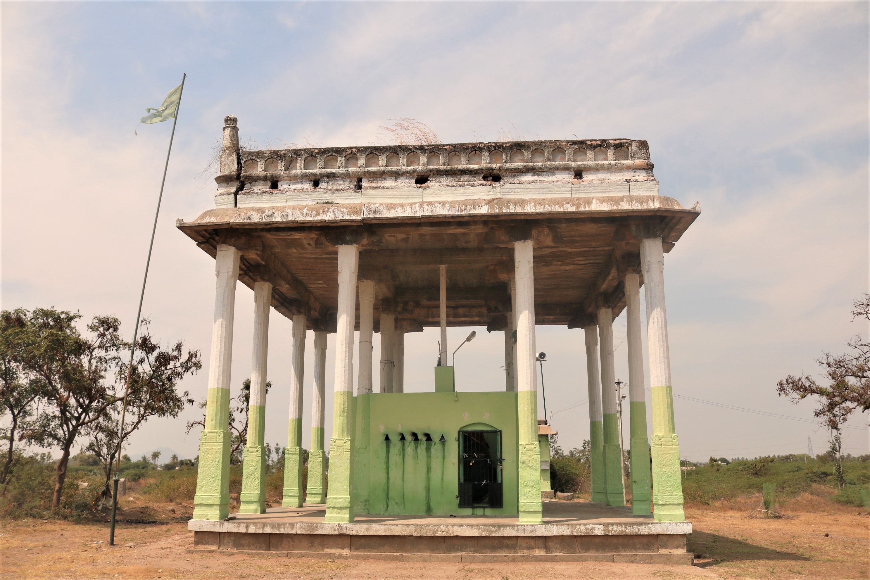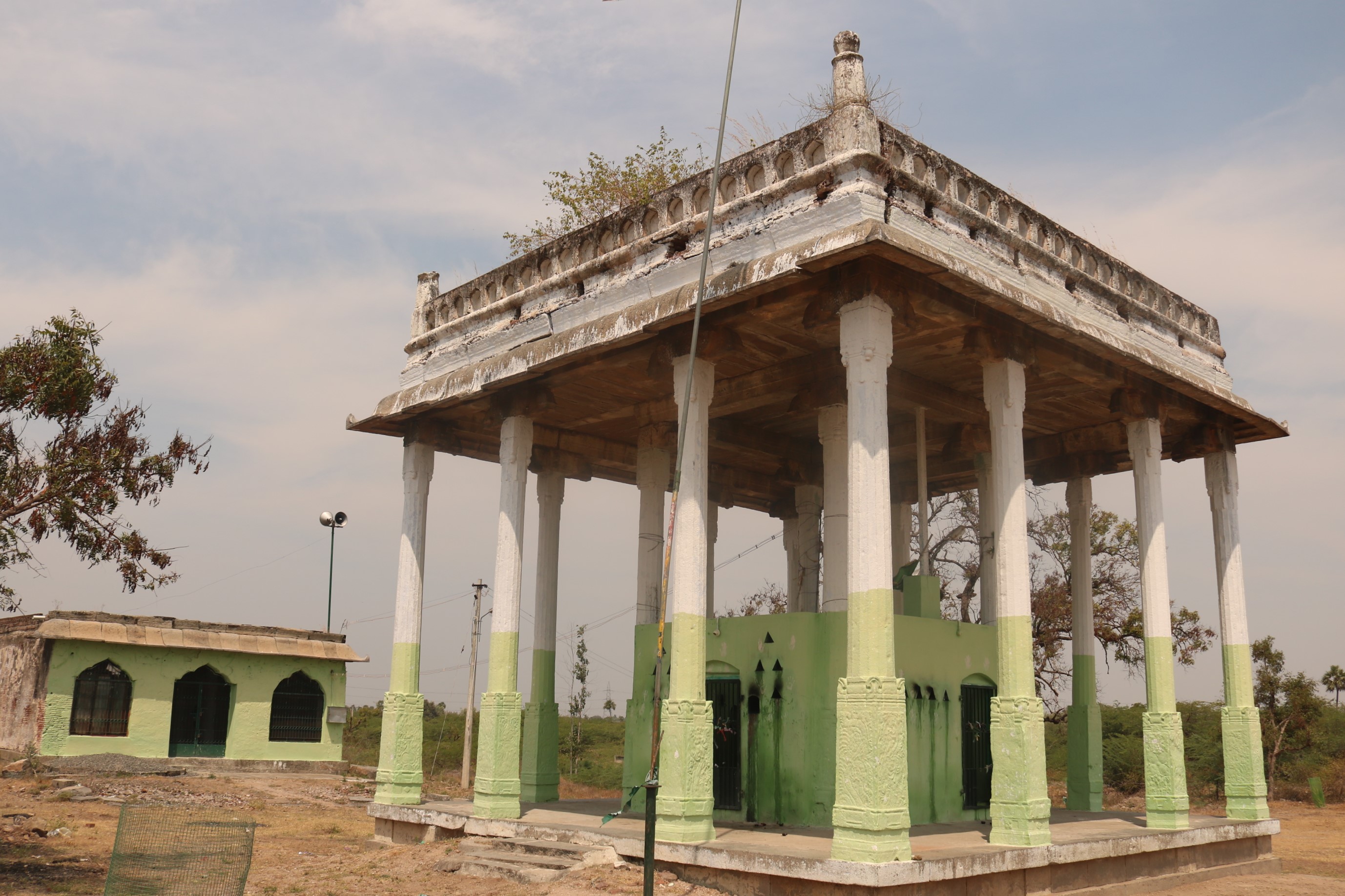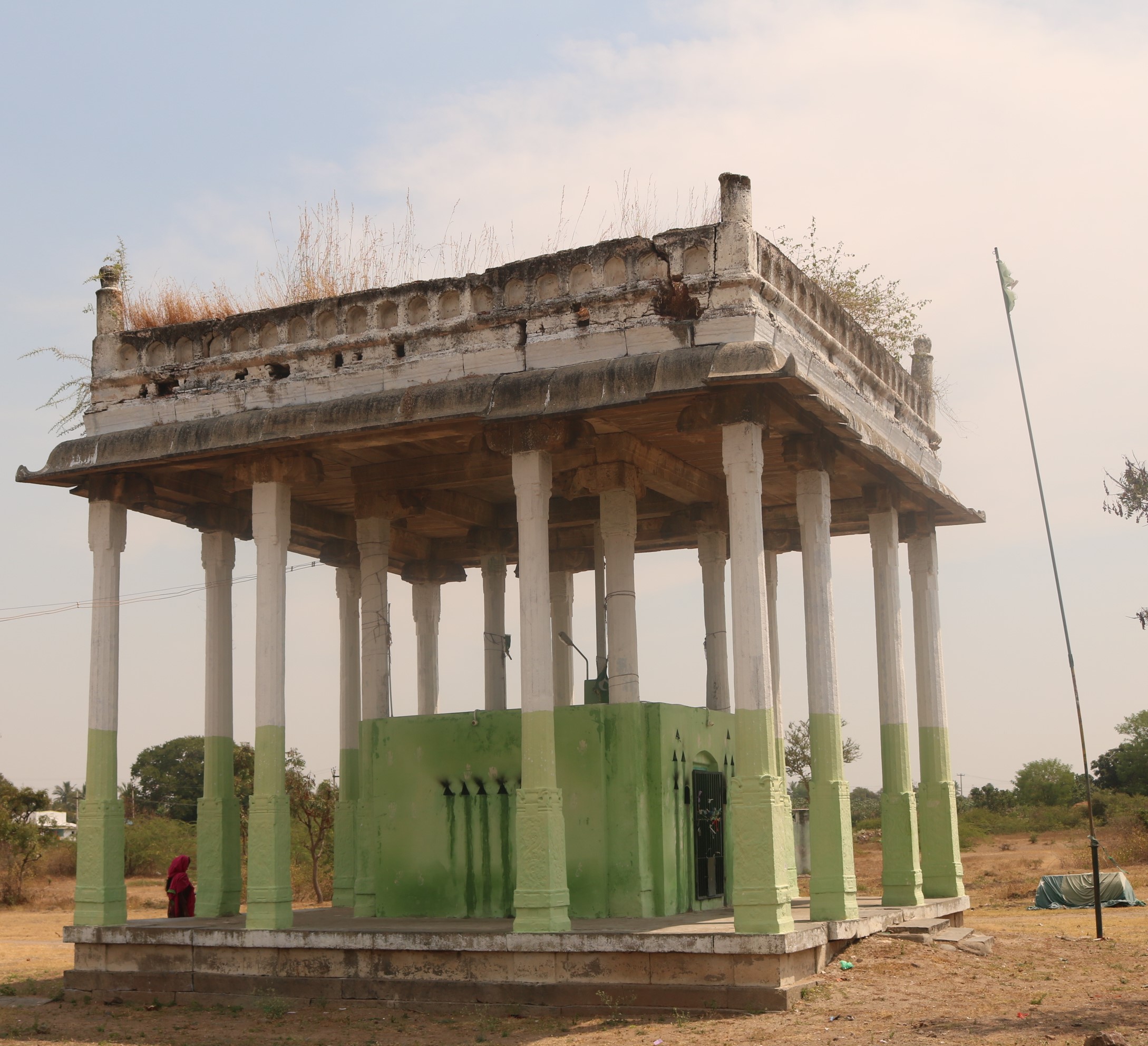 | கோயிலின் அமைப்பு | இத்தர்ஹா திராவிட – இஸ்லாமிய கட்டிடக்கலை பாணியில் எளிமையாகவும் உயரமாகவும் காணப்படுகின்றது. இங்குள்ள பிரதான கட்டிடம் சுமார் 25 அடி உயரம் உள்ள 12 கற்தூண்கள் மற்றும் கற்கூரையுடன் திறந்த வெளி மண்டபம் போல எழுப்பப்பட்டுள்ளது. இதன் மையப்பகுதியில் நான்கு புற சுற்றுச் சுவருடன் தர்ஹா உருவாக்கப்பட்டுள்ளது. இம் மண்டபத்திற்கு பின்புறம் சிறிய மசூதி இஸ்லாமியக் கட்டிடக்கலை பாணியில் கட்டப்பட்டுள்ளது. அதற்கு பின்புறம் கற்சுவருடன் பெரிய கிணறு நல்ல வேலைப்பாட்டுடன் உருவாக்கப்பட்டுள்ளது. இத்தர்ஹாவுக்கு அருகே பல கல்லறைகள் வெவ்வேறு வடிவங்களில் நேர்த்தியாக உருவாக்கப்பட்டுள்ளன. |