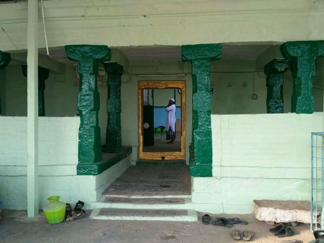 | கோயிலின் அமைப்பு | இப்பள்ளிவாசல் சிறிய நுழைவாயிலைக் கொண்டதாகக் காணப்படுகிறது. சுற்றிலும் தூ’ண்கள் அமைந்திருக்க, சுற்றுச்சுவர் செல்கிறது. பள்ளியின் வெளிப்புறம் கல்வெட்டு காணப்படுகின்றது. தரைத் தளத்தில் பிரார்த்தனை செய்யப்படுகிறது . |