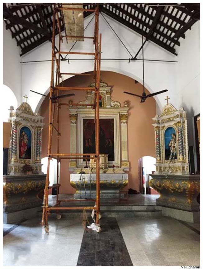 | கல்வெட்டு / செப்பேடு | தேவாலயத்தின் கிழக்கு சுவரில் இரண்டு கல்வெட்டுகள் உள்ளன. ஒன்று 1729 தேதியிட்ட ஆர்மீனிய மொழியில் உள்ளது, இது "ஆர்மீனிய தேசத்தின் நினைவாக. மீட்பர் ஆண்டில் 1729" என்று கூறுகிறது. இது எந்தவொரு தனிநபரின் நினைவாக அல்ல, ஆனால் ஆர்மீனிய தேசத்தின் நினைவாக உள்ளது. மற்ற கல்வெட்டு போர்த்துகீசிய மொழியில் உள்ளது, இது "இந்த தேவாலயம் 1740 ஆம் ஆண்டில் புதிதாக முடிக்கப்பட்டது, அதன் விகார் சாந்தோமின் பூர்வீக ஃப்ரியர் காஸ்பர் டோஸ் ரெய்ஸ்" என்பதே அந்தக் கல்வெட்டாகும். |