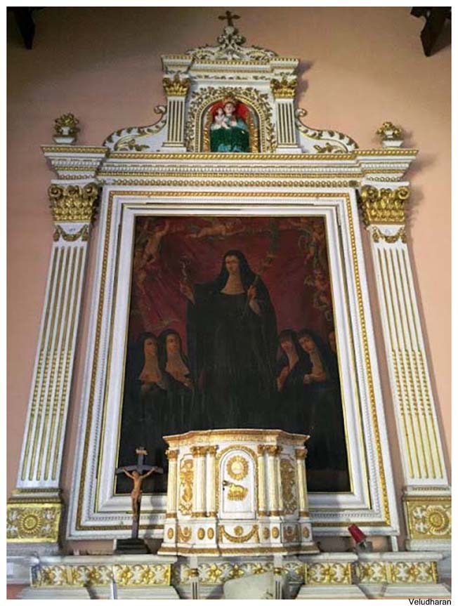 | சுவரோவியங்கள் | மூன்று ஓவியங்கள் காணப்படுகின்றன. வழிபாட்டிடத்தின் மையப்பகுதியில் கன்னிமரியாள் இதர சகோதரிகளுடன் நிற்கும் காட்சி ஓவியமாக வைக்கப்பட்டுள்ளது. |