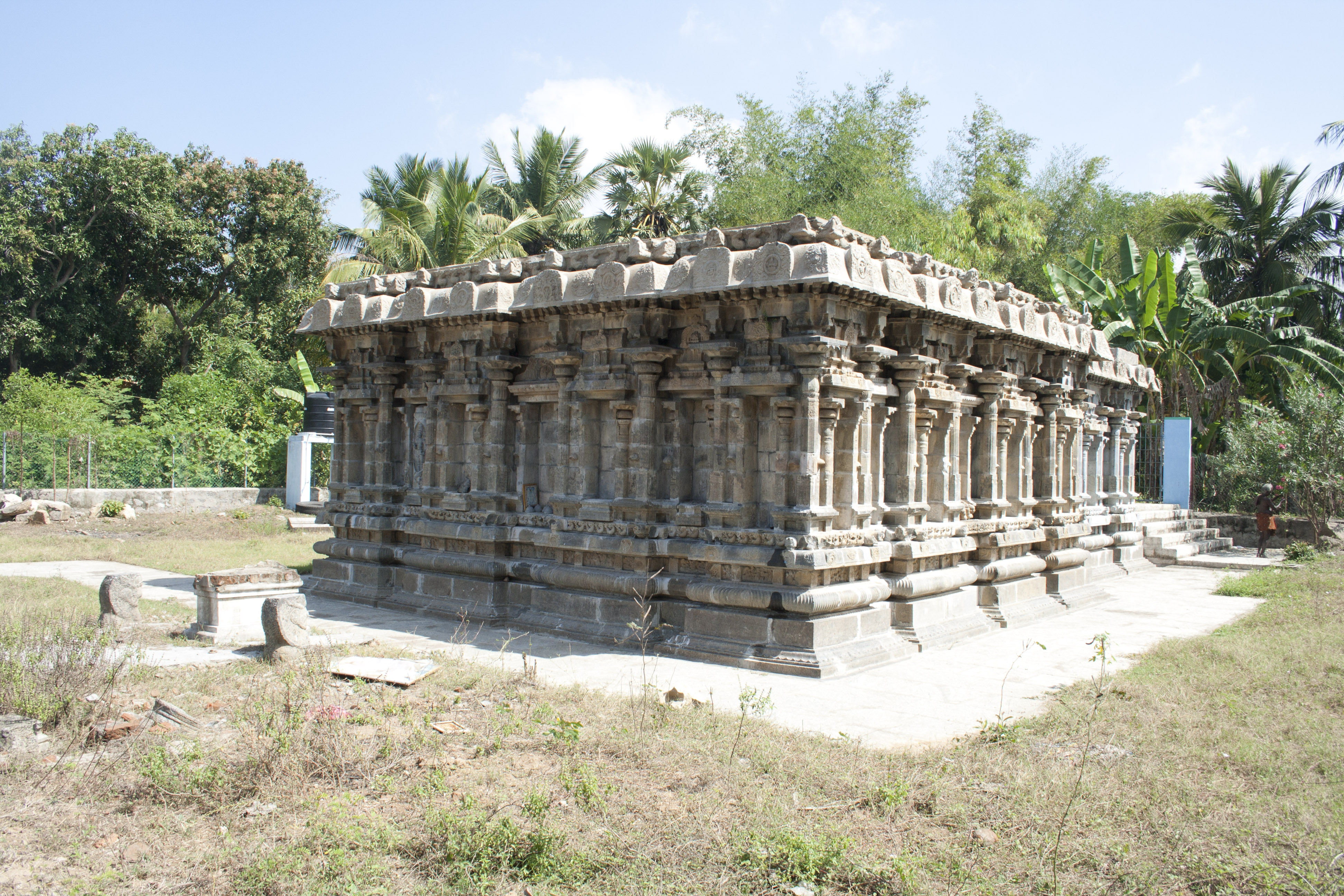 | கோயிலின் அமைப்பு | இக்கோயில் முழுவதும் புனரமைக்கப்பட்டுள்ளது. கி.பி.12-ஆம் நூற்றாண்டைச் சேர்ந்ததாக இக்கோயில் இருக்கலாம். பிற்காலச் சோழர் கலைப்பாணி நன்கு தெரிகிறது. தற்போது கூரைப்பகுதி வரை மட்டுமே காட்சியளிக்கிறது. தளங்கள் இடம் பெறவில்லை. எனவே எந்த பாணியில் கட்டப்பட்டது என்பதும், எத்தனை தளங்கள் உடையது என்பதும் அறியக்கூடவில்லை. இக்கோயிலில் தேவக்கோட்டங்களில் சிற்பங்கள் அமைந்துள்ளன. தட்சிணாமூர்த்தி, இலிங்கோத்பவர், அர்த்தநாரி ஆகிய சிற்பங்கள் குறிப்பிடத்தக்கவை. மேலும் இக்கோயிலின் தனிச்சிறப்பானது 63 நாயன்மார்களின் வரலாற்றினை சிற்பவடிவமாக பெற்றுத் திகழ்வதாகும். ஆனால் நாயன்மார் சிற்பம் தற்போது காணப்படவில்லை. காலவெள்ளத்தால் அழிந்து விட்டன போலும். ஆனால் சிற்பங்கள் இருந்தமைக்கான சிறு சிறு கோட்டங்கள் கருவறை விமானச் சுவர்ப்பகுதியில் காணப்படுகின்றது. இக்கோட்டத்தின் கீழே 12-ஆம் நூற்றாண்டைச் சேர்ந்த எழுத்தமைதியுடன் நாயன்மார்களின் பெயர்கள் காணப்படுகின்றன. கருவறையில் இலிங்கம் உள்ளது. கருவறை சதுர வடிவமானது. முகமண்டபத்தில் நந்தி உள்ளது. மகாமண்டபம் இருந்திருக்க வேண்டும். அவற்றின் எச்சங்கள் காணப்படுகின்றன. |