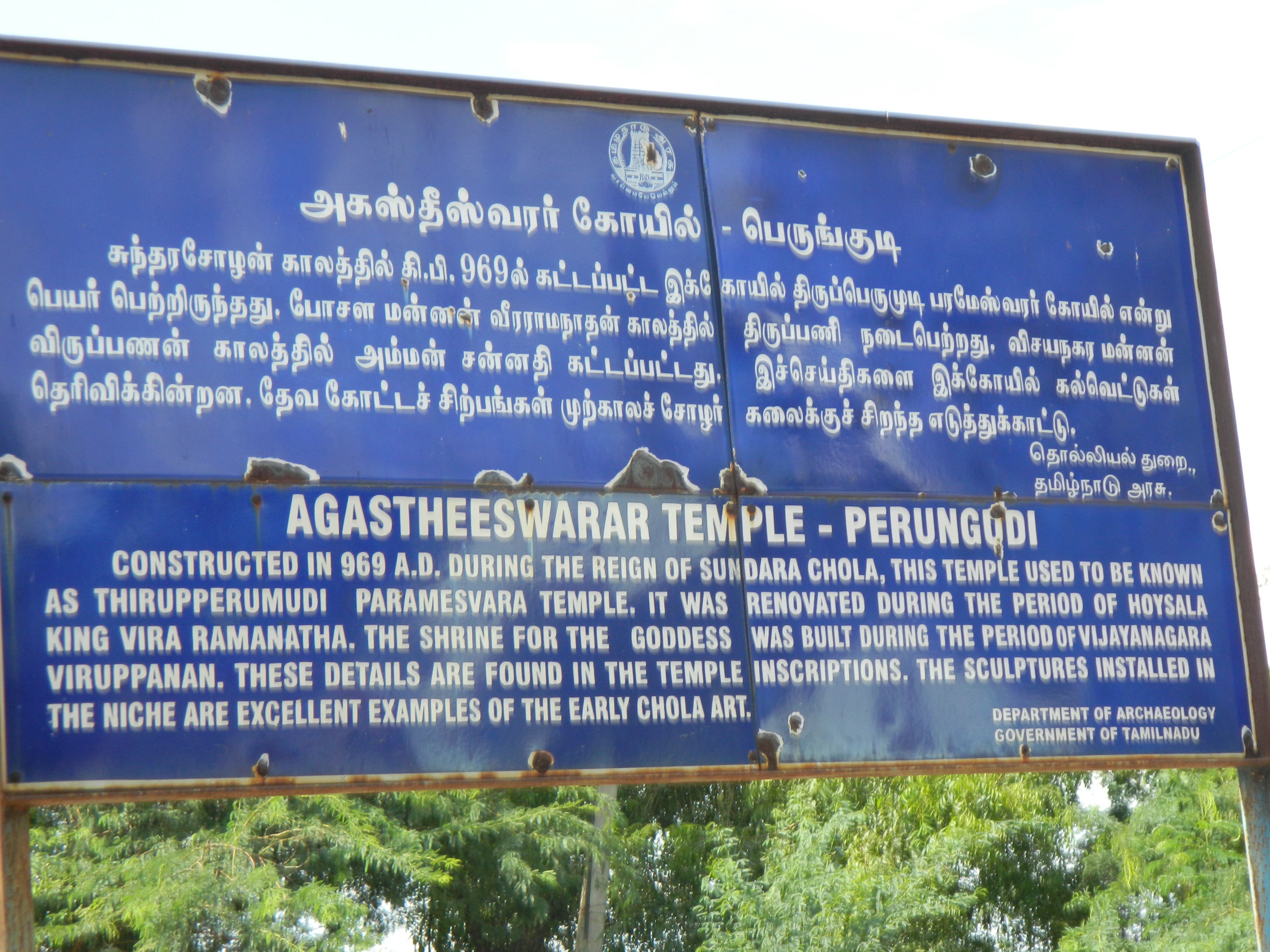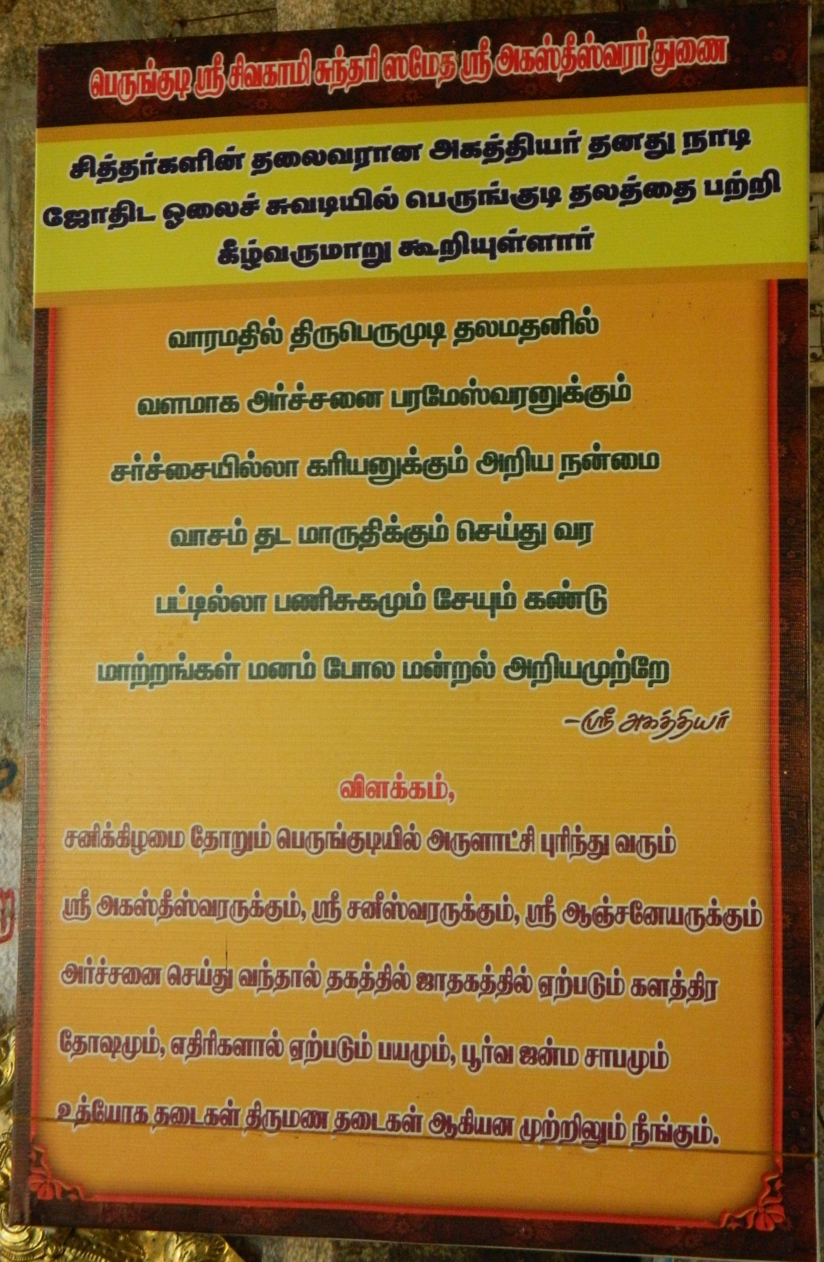 | வழிபாட்டுத் தலத்தின் பெயர் | பெருங்குடி அகஸ்தீஸ்வரர் கோயில் |