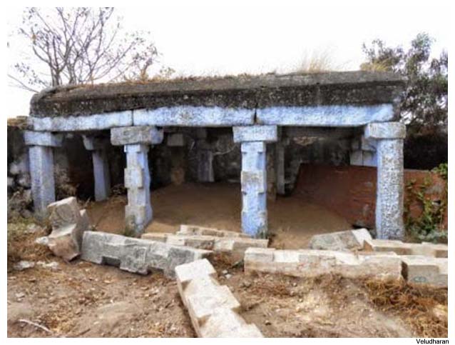 | கோயிலின் அமைப்பு | கோயிலினுள் நுழையுமிடத்தில் இருபுறமும் திண்ணைகளுடன் கூடிய நுழைவாயில் உள்ளது. அதிலிருக்கின்ற தூண்களில் நாகபந்தங்கள் பெரியதாகவும், போதிகையில் வாழைப்பூ மாதிரி தொங்குகின்றன. வெளியே சிறுமண்டபத்தின் நடுவில் துவஜஸ்தம்பம் உள்ளது. கருவறை அமைப்பு அதிட்டானப்பகுதி கீழிருந்து மேலாக ஜகதி, முப்பட்டைக் குமுதம், கண்டம், வேதிகை ஆகிய அங்கங்களுடன் உள்ளன. அதிட்டானத்தின் மேலுள்ள பகுதி சுவர் அல்லது கால் என அழைக்கப்படும். தேவகோட்டங்கள் வேதிகையின் மீது அமைக்கப்பட்டுள்ளது. வேதிகைப்பட்டி தேவகோட்டத்தில் இடைவெளி விட்டுச் செல்கிறது. தேவகோட்டத்திற்கு மேலே வேலைப்பாடு இல்லாத, மகரதோரணம் அரை வட்ட வடிவில் காணப்படுகிறது. அதன் நடுவில் வட்டமாகப் பத்ம இதழ்களுடன் உள்ளன. கால்வாயில் பத்மபந்தம், தாடி, இதழ், பலகை, போதிகை, முதலியன இருக்கின்றன. கருவறையில் மூன்று தேவகோட்டங்கள் உள்ளன. தேவகோட்டங்களில் உருவங்கள் இல்லை. கூரைப்பகுதியில் பூதவரியில் சிறுசிறு சிற்பங்கள் இருக்கின்றன. கபோதத்தின் கூடுகள் உள்ளன. பக்கத்திற்கு நான்காக (வடக்கு, கிழக்கு, தெற்கு) மொத்தம் பன்னிரண்டு கூடுகள் வேலைப்பாடுகள் அதிகமில்லாமல் இருக்கின்றன. கபோதத்திற்கு மேலே யாளி வரி இருக்கின்றது. இரு தளங்களையுடைய நாகர விமானமாகும். ஒவ்வொரு தளத்திலும் இருபுறமும் கர்ணகூடு, இடையில் சாலை அமைப்பைக் கொண்டது. நாகர விமானத்துக்கு மேலே கலசம் ஒன்று வைக்கப்பட்டுள்ளது. அர்த்தமண்டபம் கருவறையின் அதிட்டான அமைப்பை போலவே இருக்கிறது. சுவர்ப்பகுதியில் தேவகோட்டமோ அல்லது வேதிகைப்பட்டியோ எதுவும் இல்லாமல் வெறுமனாக உள்ளது. அர்த்த மண்டபத்தின் பிரஸ்தரம் பகுதி கருவறையின் அமைப்பை போலவே உள்ளது. முன்மண்டப அமைப்பு அர்த்த மண்டபத்தைப் போலவே ஒத்திருக்கிறது. ஆனால் தூண்களில் பத்ம இதழ்கள் உள்ளன. கருவறையின் கிழக்கு, தெற்கு, வடக்குச் சுவர்களின் நீளம் 6.68 மீட்டராக உள்ளது. அர்த்த மண்டபத்தின் நீளம் 24 மீட்டராக உள்ளது. முன்மண்டபத்தின் நீளம் 7.67 மீட்டராகவும், மேற்கு திசையில் அகலத்தில் நுழைவாயில் அகலம் 1.04 மீட்டராக உள்ளது. முன்மண்டபத்துள் இருக்கும் தூண்களும் முன்மண்டபத்துக்கு வெளியேயுள்ள மகாமண்டபத்தில் முருகன் கருவறைக்கு எதிரேயுள்ள மூன்று தூண்களைத் தவிர மற்ற தூண்களில் உடல் சதுரமாகவும், போதிகை வேலைப்பாடு இல்லாமல் காணப்படுகின்றன. முருகன் கருவறைக்கு எதிரேயுள்ள மூன்று தூண்களில் நாகபந்தங்கள் உள்ளன. முன்மண்டபத்துள் நான்கு முழுத்தூண்களும், நான்கு அரைத்தூண்களும் இருக்கின்றன. மகாமண்டபத்தில் மொத்தம் பத்தொன்பது தூண்கள் இருக்கின்றன. மகாமண்டபத்தின் வடமேற்கு மூலையில் முருகப்பெருமானின் 