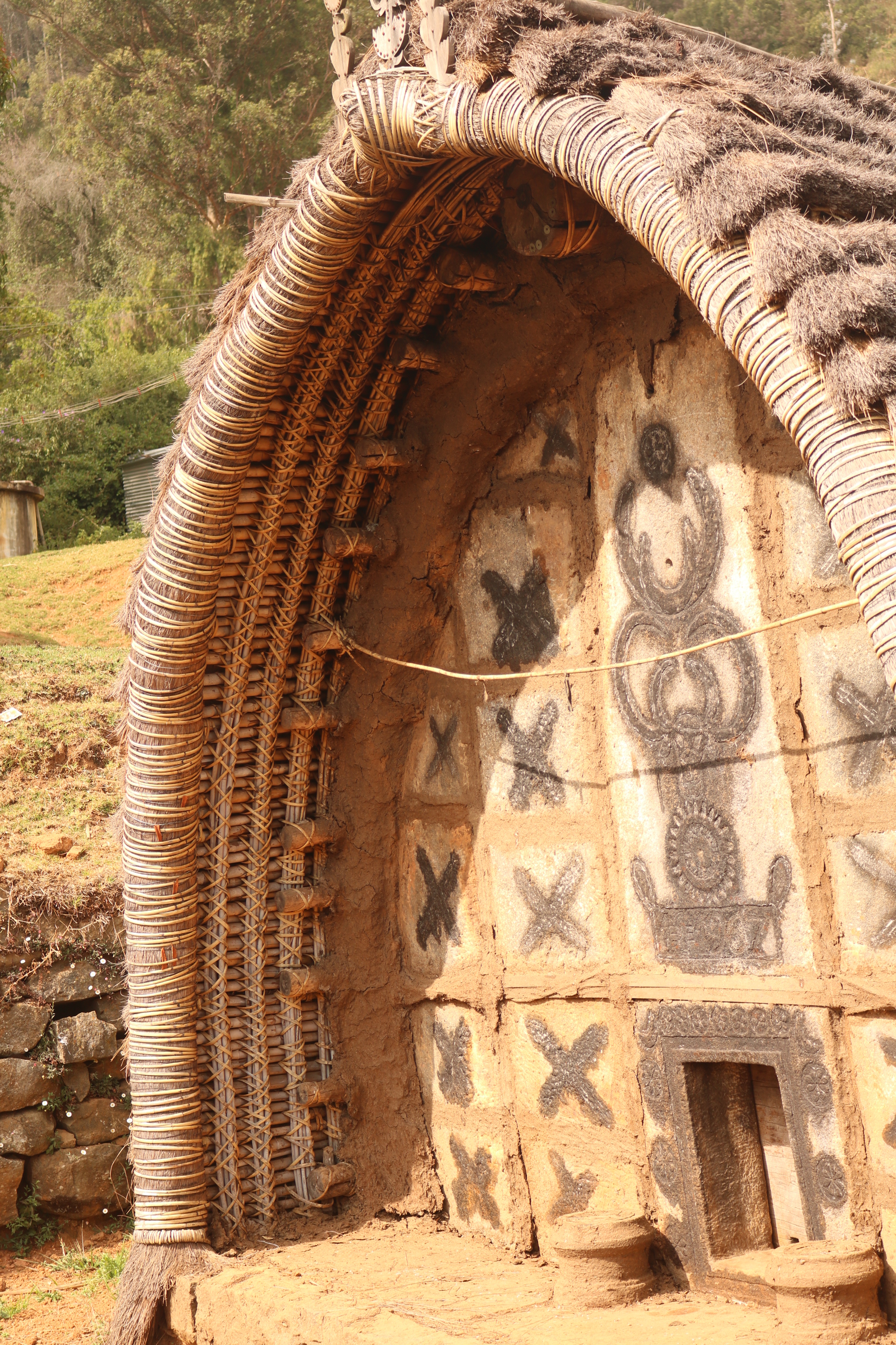 | கோயிலின் அமைப்பு | மூங்கில் கழிகளாலும், மூங்கில் தட்டைகளாலும் வேயப்பட்டு உருளை வடிவத்தில் காணப்படும். |