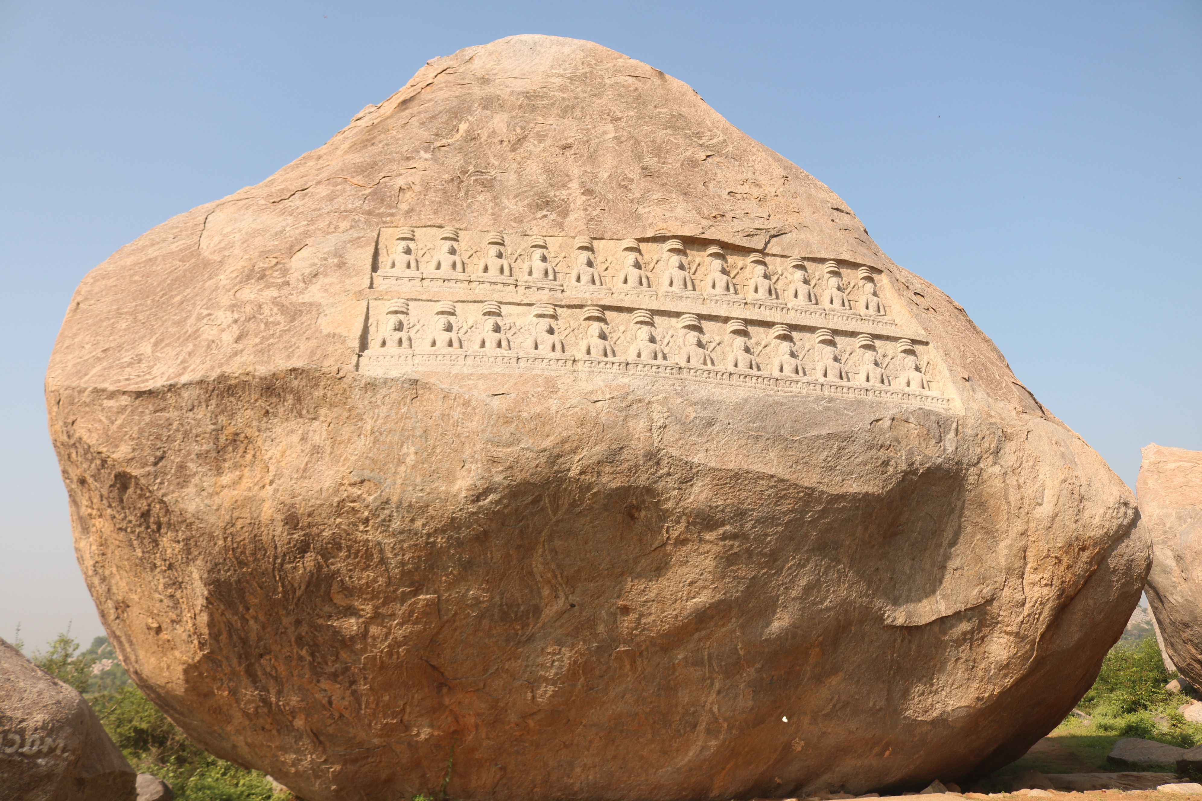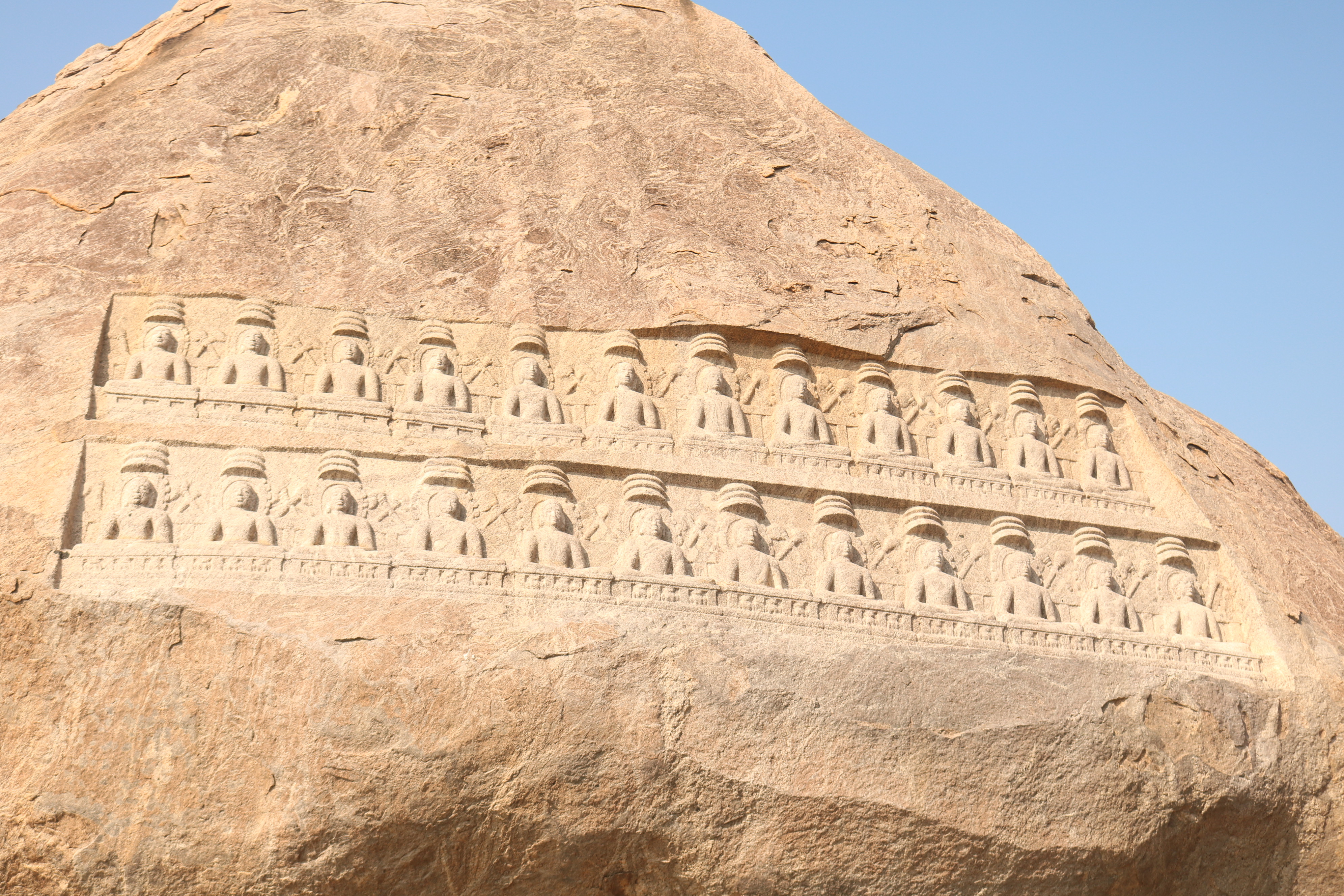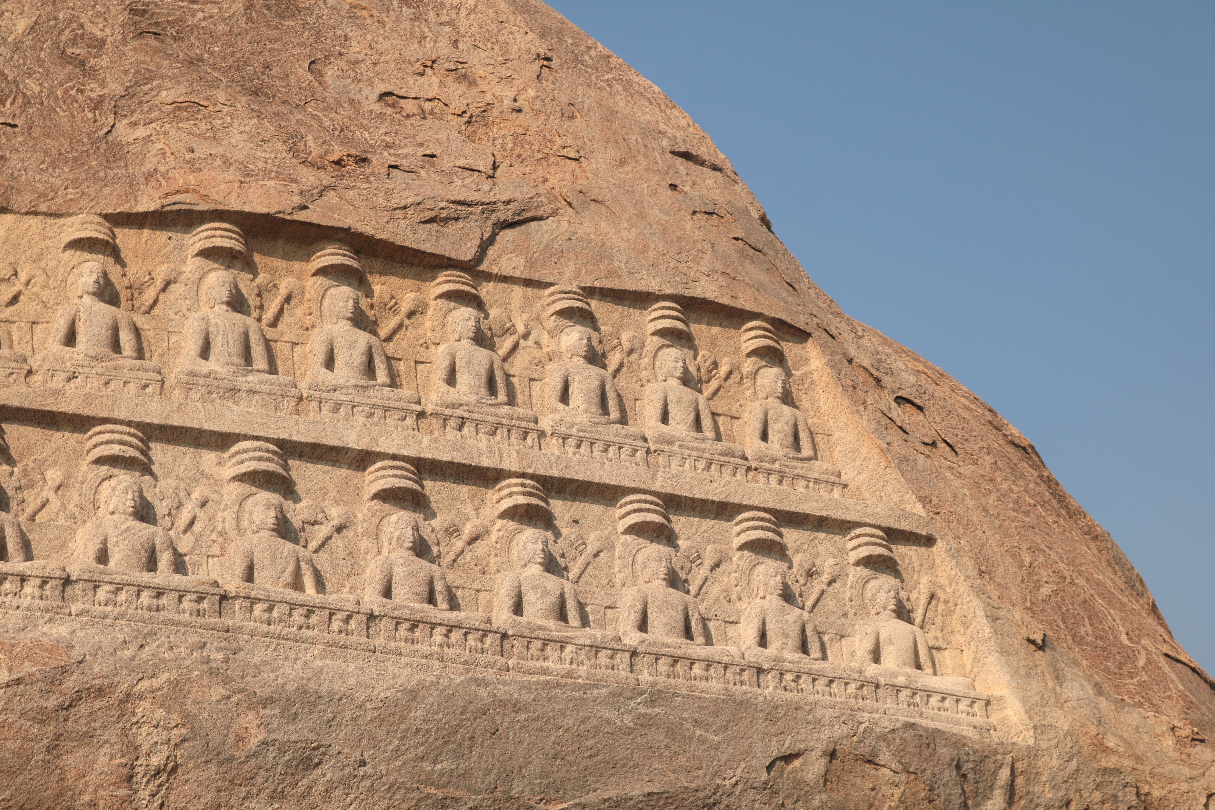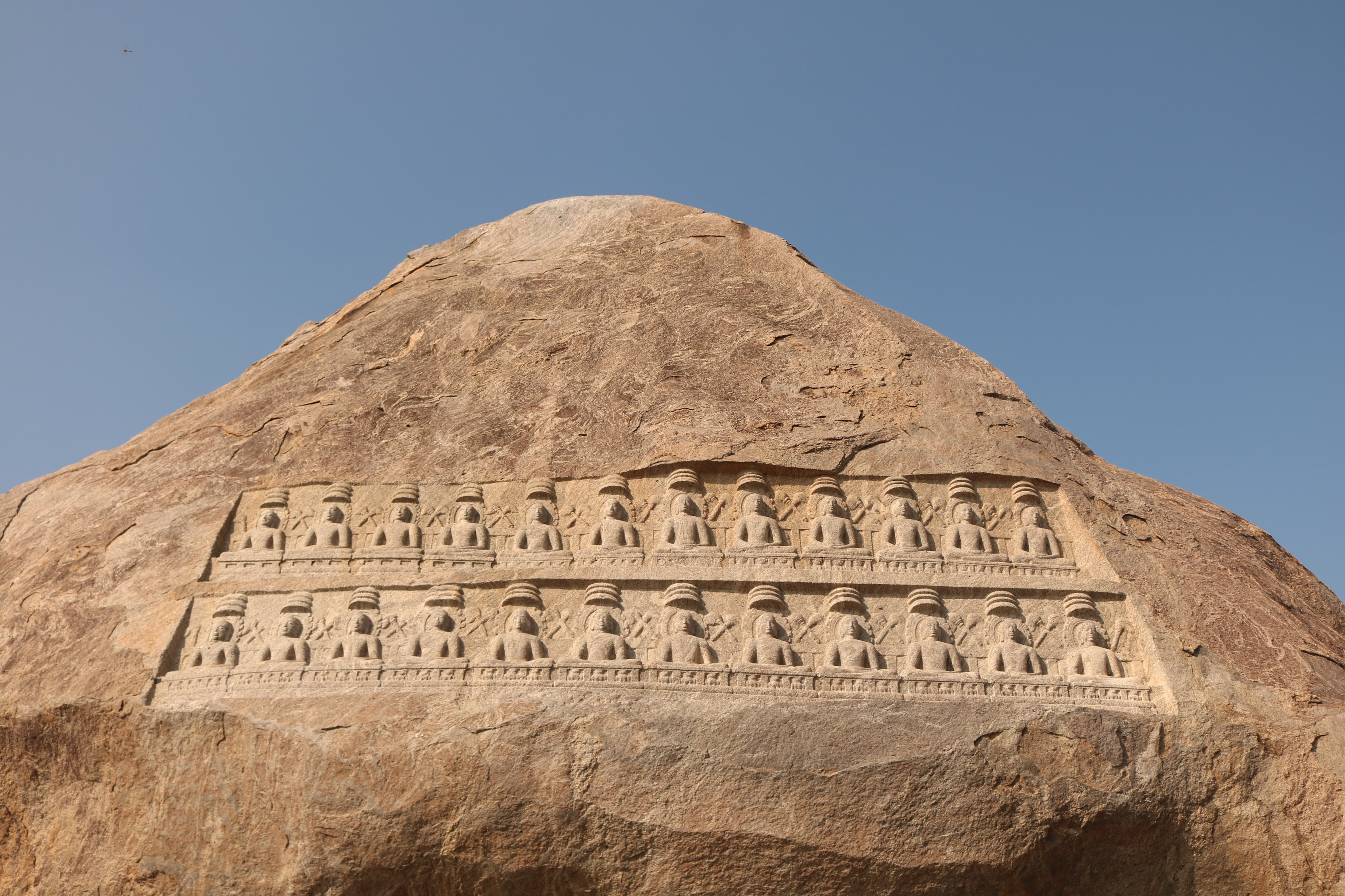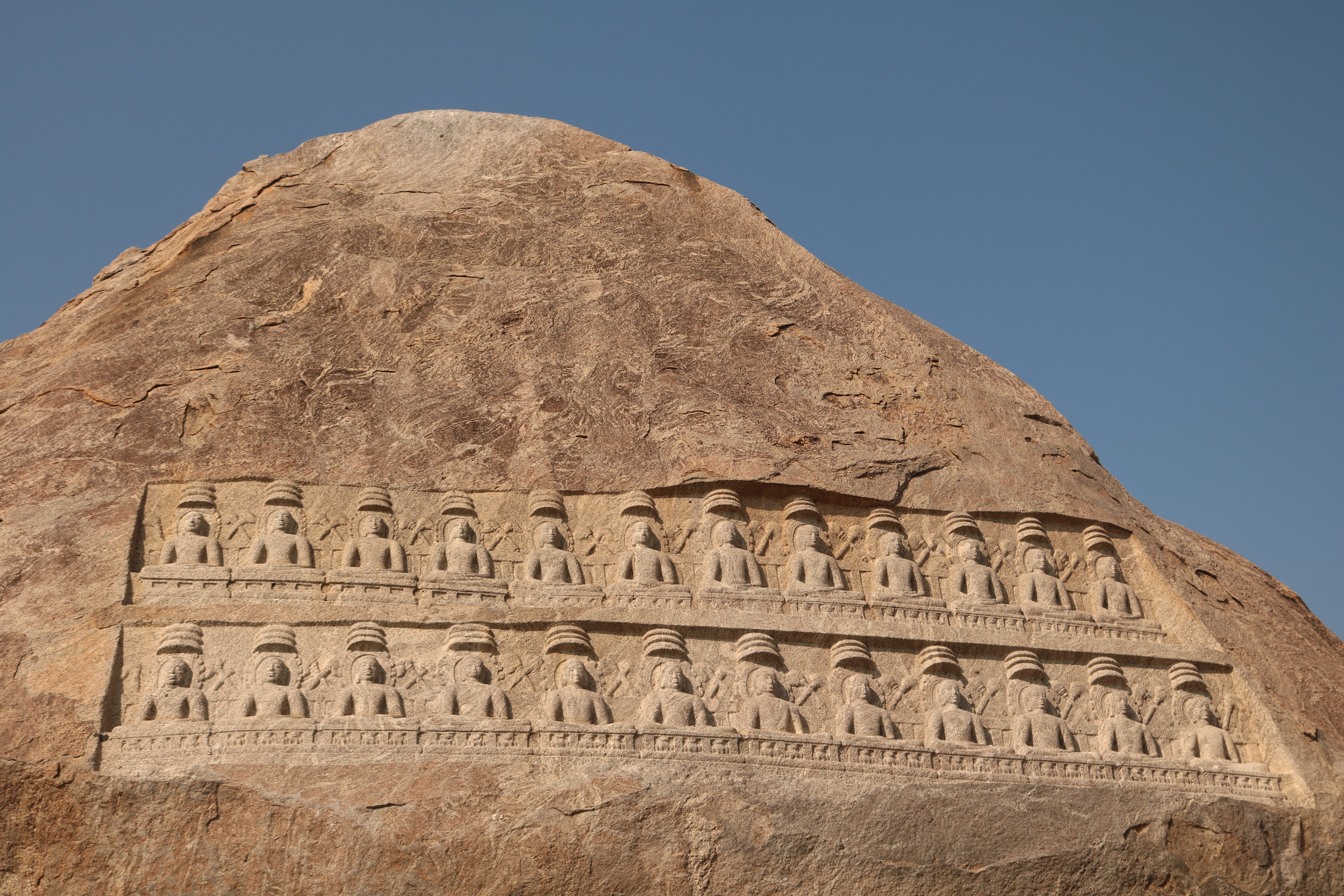 | சிற்பங்கள் | திருநாதர்குன்றின் உச்சிப்பகுதியில்பெரிய கற்பாறை ஒன்று காணப்படுகிறது. அதன் உச்சி பகுதியில் இரண்டு வரிசைகளில் சமமான இடைவெளியில் செதுக்கப்பட்டுள்ள 24 சிற்பங்கள் நமது கண்களை கவரும் வகையில் உள்ளன. அந்தச் சிற்பங்கள், சமணத்தைப் பரப்பிய தீர்த்தங்கரர்களின் திருமேனிகள் எனக் கூறப்படுகின்றன. முதல் வரிசையில் உள்ள 12 தீர்த்தங்கரர்கள் சிற்பங்களும், இரண்டாம் வரிசையில் உள்ள 12 தீர்த்தங்கரர்கள் சிற்பங்களும் அமர்ந்த நிலையிலேயே வடிவமைக்கப்பட்டுள்ளன. சாமரங்கள் ஒவ்வொரு தீர்த்தங்கரரின் இடையிலும் பொறிக்கப்பட்டுள்ளன. ஒவ்வொரு தீர்த்தங்கரர்களின் தலையின் மேற்பகுதியிலும் முக்குடை அமைப்பு காணப்படுகிறது. |