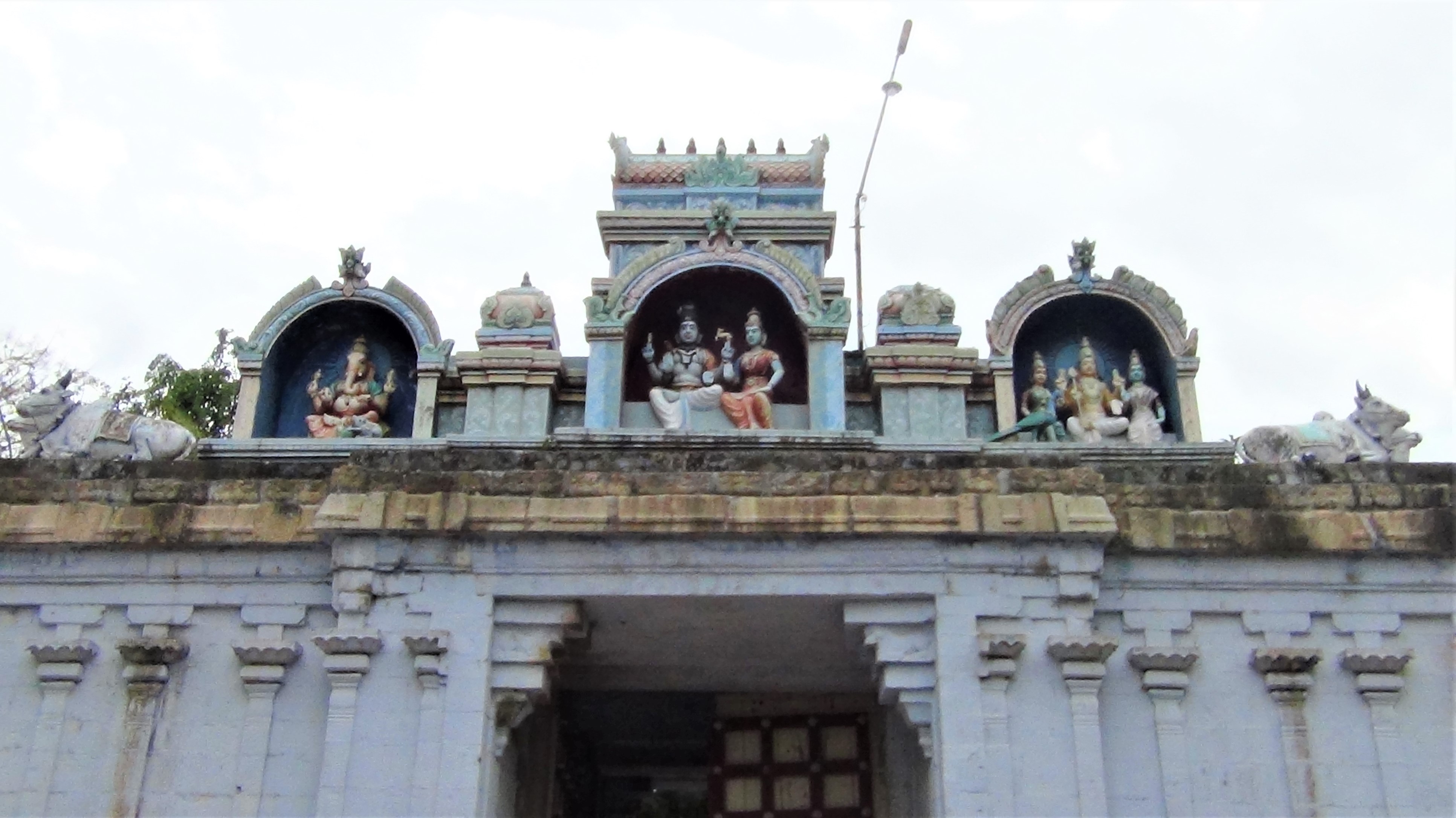 | சிற்பங்கள் | இக்கோயில் முகப்பு வாயிலில் மேலே அமர்ந்த நிலையில் சிவன் பார்வதியும், அவர்களின் ஒருபுறம் விநாயகரும், மறுபுறம் வள்ளி தெய்வானையுடன் முருகப்பெருமானும் சுதை வடிவில் காணப்படுகின்றனர். கருவறை விமானத்தின் தேவக்கோட்டங்களில் தெற்கில் தென்முகக்கடவுள், வடக்கில் நான்முகன், தெற்கில் நடராசரும், வடபுற அர்த்தமண்டபத்து வெளிப்புறக் கோட்டத்தில் துர்க்கை, அர்த்தமண்டப தென்புற கோட்டத்தில் விநாயகர் ஆகிய திருவுருவங்கள் காணப்படுகின்றன. மேலும் பஞ்சரக் கோட்டங்களில் சட்டை நாதரும் பிட்சாடனரும் காட்சியளிக்கின்றனர். கருவறையில் இலிங்கவடிவில் இறைவன் காட்சியளிக்கிறார். இத்தல இலிங்கத்தின் பாணம் மிகவும் பெரியது. இது சோழர்கால படைப்பாகும். |