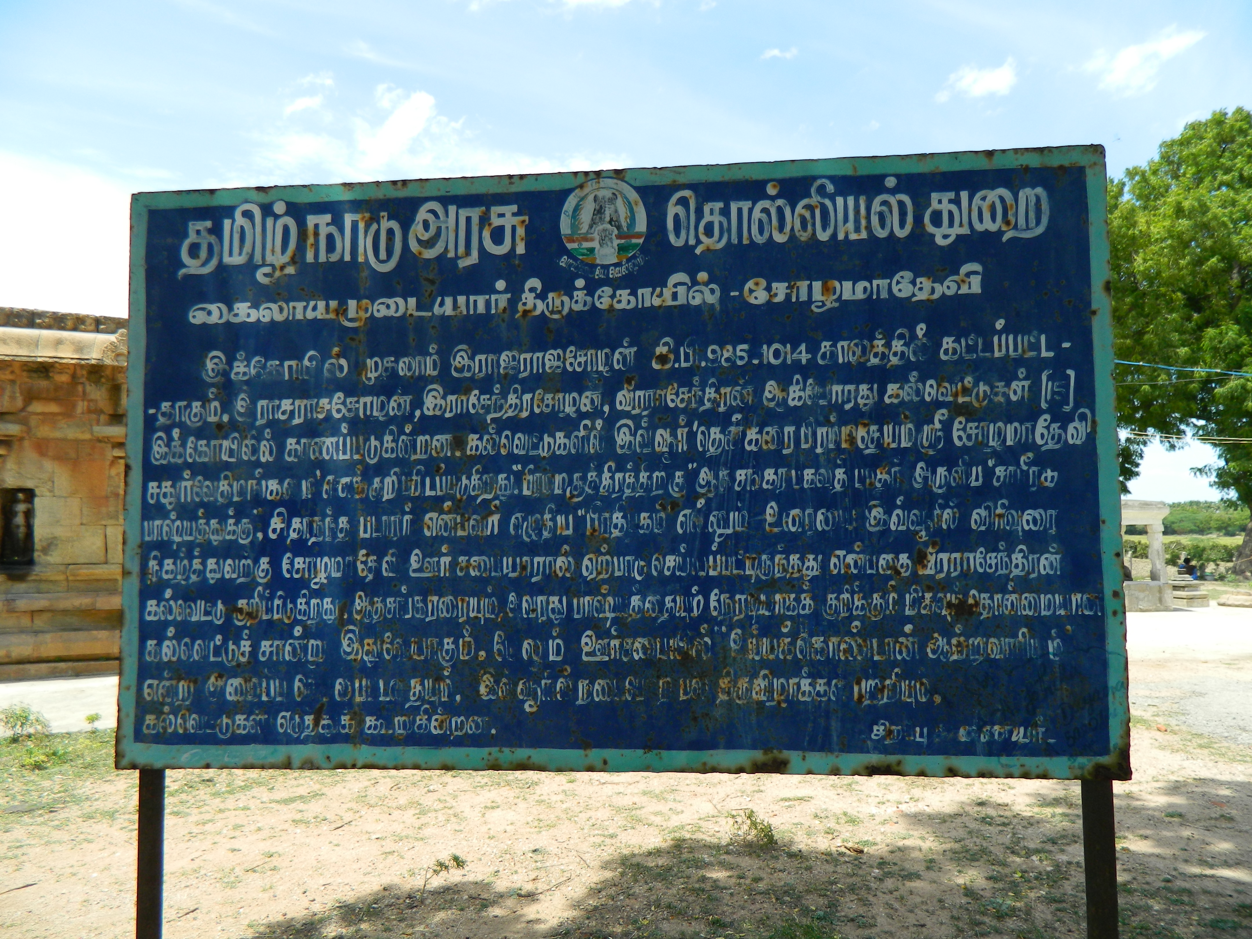 | வழிபாட்டுத் தலத்தின் பெயர் | சோழமாதேவி கைலாயமுடையார் கோயில் |