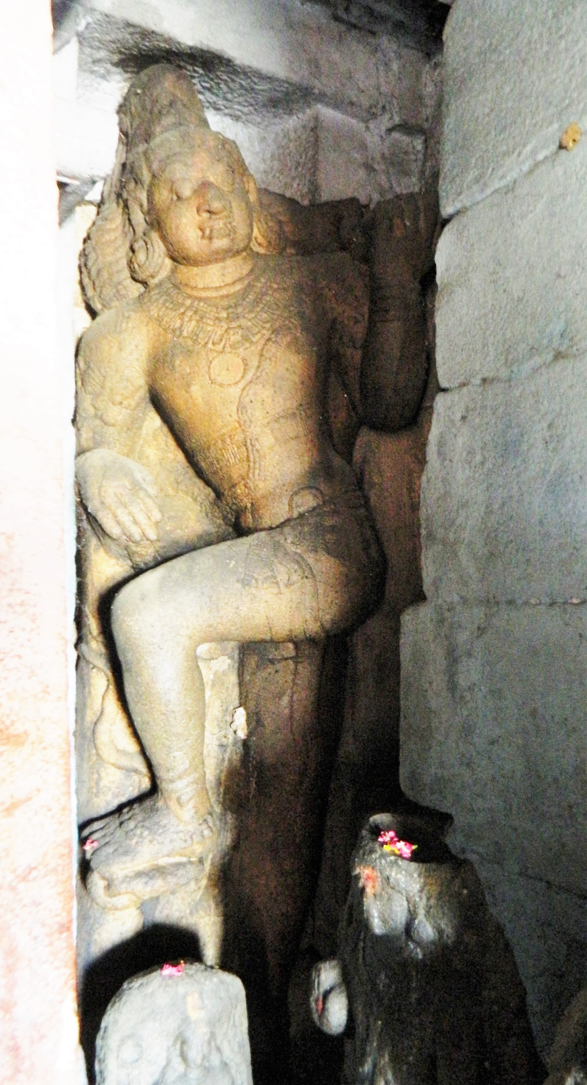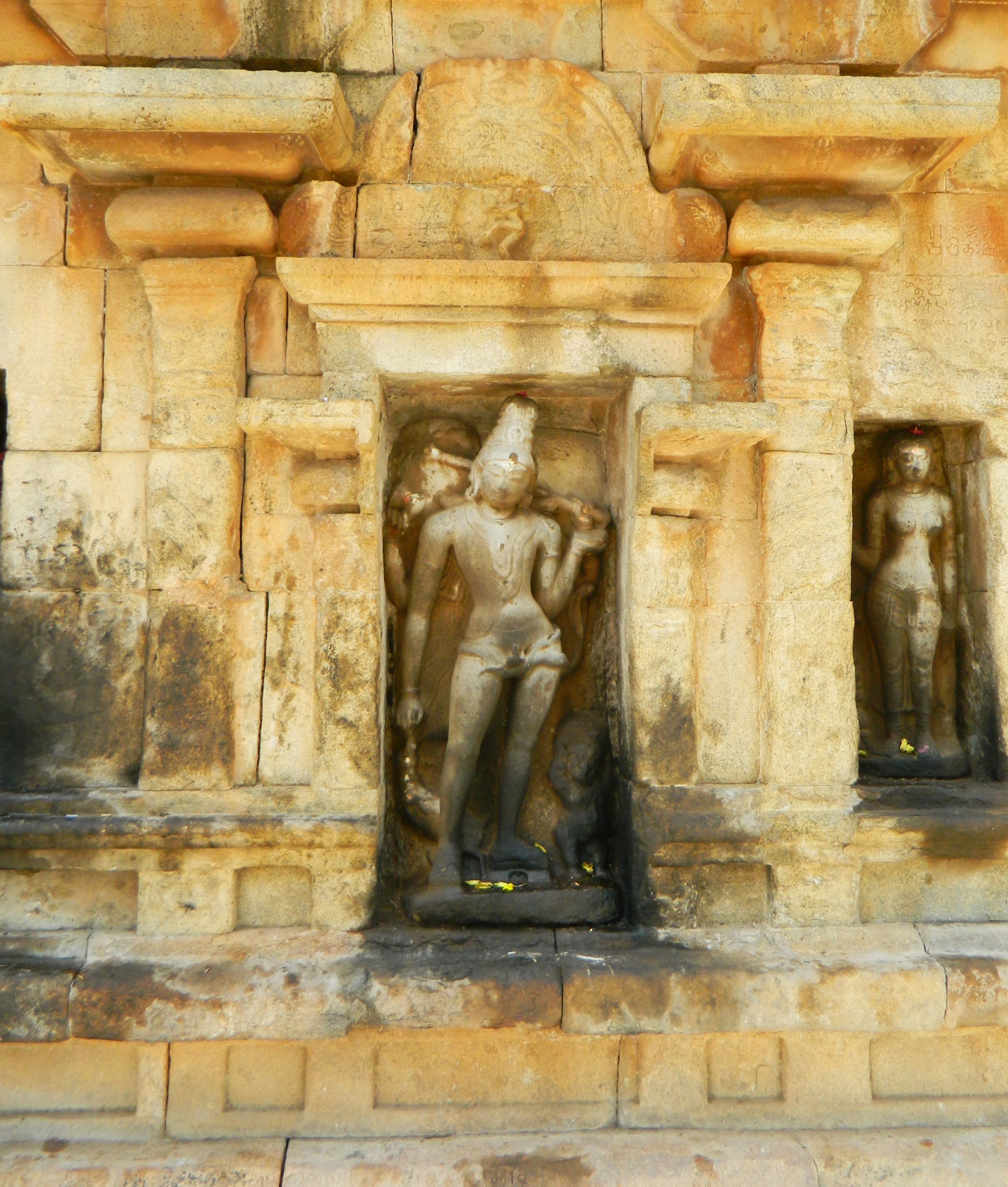 | சிற்பங்கள் | இக்கோயிலின் கருவறை புறச்சுவர் தேவகோட்டங்களில் தெற்கில் தென்முகக் கடவுள், மேற்கில் திருமால், வடக்கில் நான்முகன், அர்த்தமண்டப கோட்டத்தில் தெற்கில் விநாயகர், வடக்கில் துர்க்கை ஆகிய சிற்பங்கள் காணப்படுகின்றன. பஞ்சரக்கோட்டத்தில் முனிபத்தினியும் பிச்சையேற்கும் பெருமானும சிற்பங்களாக அமைந்துள்ளனர். இக்கோயில் முகமண்டபத்தில் முற்காலச்சோழர்களின் கலைப்பாணியில் அமைந்த திருமால், சண்டேசர் ஆகிய சிற்பங்கள் உள்ளன. கோயில் அர்த்தமண்டபத்தில் நுழைவாயிலில் வாயிற்காவலர்கள் நின்ற நிலையில் பேரளவினராய் உள்ளனர்.. இச்சிற்பங்கள் அனைத்தும் முற்காலச் சோழர் கலைப்பாணியில் அமைந்துள்ளன. மேலும் கருவறை விமானத்தின் தாங்குதளத்தில் சிவவடிவங்கள் புடைப்புச் சிற்பங்களாக அமைக்கப்பட்டுள்ளன. |