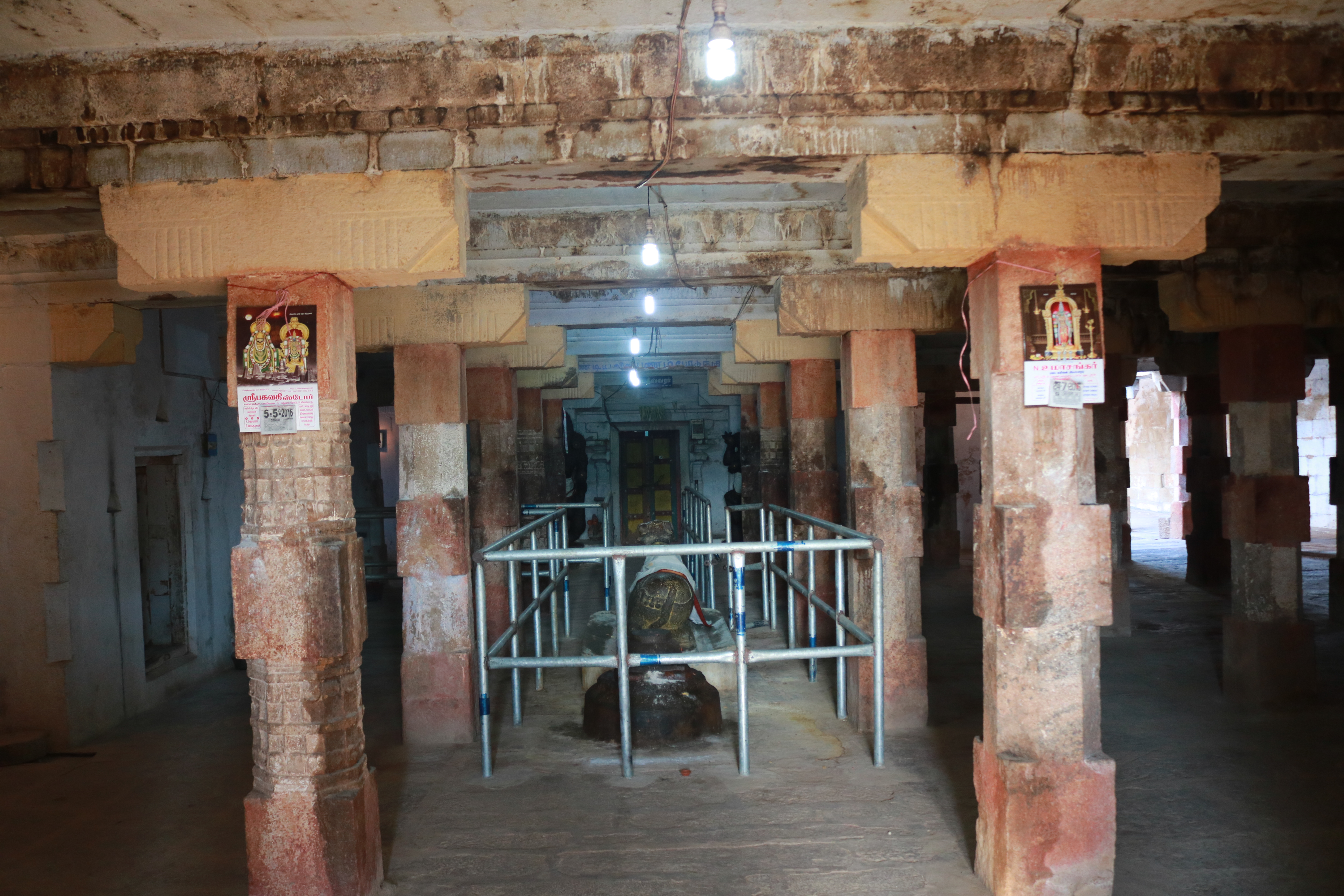 சிற்பங்கள் | கருவறை விமானத்தின் தாங்குதளத்தில் இராமாயணப் புடைப்புச் சிற்பங்கள் சிறிய சதுர வடிவில் காணப்படுகின்றன. அர்த்தமண்டப தென்புறக் கோட்டத்தில் கணபதியும், வடபுறக் கோட்டத்தில் துர்க்கையும் அமைந்துள்ளனர். கணபதியை அடுத்து பஞ்சரக்கோட்டத்தில் அகத்திமுனிவர் சிற்பம் அமைந்துள்ளது. தென்புற தேவகோட்டத்தில் ஆலமர்செல்வன் உள்ளார். மேற்குப்புற தேவகோட்டத்தில் அண்ணாமலையாரும், வடக்கில் நான்முகனும் அமைக்கப்பட்டுள்ளனர். மேலும் இச்சிற்பங்களை அமைத்த சிற்பியின் சிறுவடிவமும் அந்தந்த சிற்பங்களின் அருகிலேயே கல்வெட்டோடு காட்டப்பட்டுள்ளது இக்கோயிலின் தனிச்சிறப்பு. நந்தி மண்டபத்தில் மிகப்பெரிய நந்தி அமைந்து்ள்ளது. கருவறையில் இறைவன் இலிங்க வடிவில் காட்சியளிக்கிறார். அன்னை ஒப்பில்லாமுலை நாயகிக்கு தனி திருமுன் அமைந்துள்ளது. |