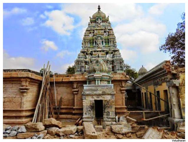 கோயிலின் அமைப்பு | இக்கோயில் இருதளங்களைக் கொண்டதாக அமைந்துள்ளது. நாற்கரமுள்ள நாகரபாணியில் விமானம் அமைக்கப்பட்டுள்ளது. கருவறை சதுர வடிவமானது. மேலும் கருவறையைத் தொடர்ந்து இடைநாழிகை எனப்படும் அந்தராளம் காணப்படுகிறது. அந்தராளம் என்பது கருவறைக்கும் அர்த்தமண்டபத்திற்கும் இடையில் காணப்படும் இடைவெளியாகும். அந்தராளத்தைத் தொடர்ந்து அர்த்த மண்டபம் காணப்படுகிறது. அர்த்தமண்டபத்தைத் தொடர்ந்து முகமண்டபம் காணப்படுகிறது. அமைக்கப்பட்டுள்ளது. தாங்குதளத்தில் பிரதிபந்த அதிட்டானம் என்று அழைக்கப்படுகிறது. தாங்குதளத்தில் குமுதப்பகுதியில் கல்வெட்டுகள் காணப்படுகின்றன. சுவர்ப்பகுதியிலும் கல்வெட்டுகள் உள்ளன. சுவர்ப்பகுதியில் அரைத்தூண்களுக்கு இடையே கோட்டங்கள் அமைக்கப்பட்டுள்ளது. தேவகோட்டங்களில் சிற்பங்கள் அமைந்துள்ளன. இக்கோயில் ராஜகோபுரத்தைக் கொண்டுள்ளது. கருவறையைச்சுற்றிலும் வெளிப்புறமாக மூன்று திருச்சுற்றுக்களைக் கொண்டுள்ளது (மூன்று பிரகாரம்). கருவறை விமானத்தின் தளத்தின் மீது எழிலார்ந்த சுதைச் சிற்பங்கள் காணப்படுகின்றன. மகா மண்டபம் அமைந்துள்ளது. மகாமண்டபத்தினையடுத்து நந்தி மண்டபம் உள்ளது. |