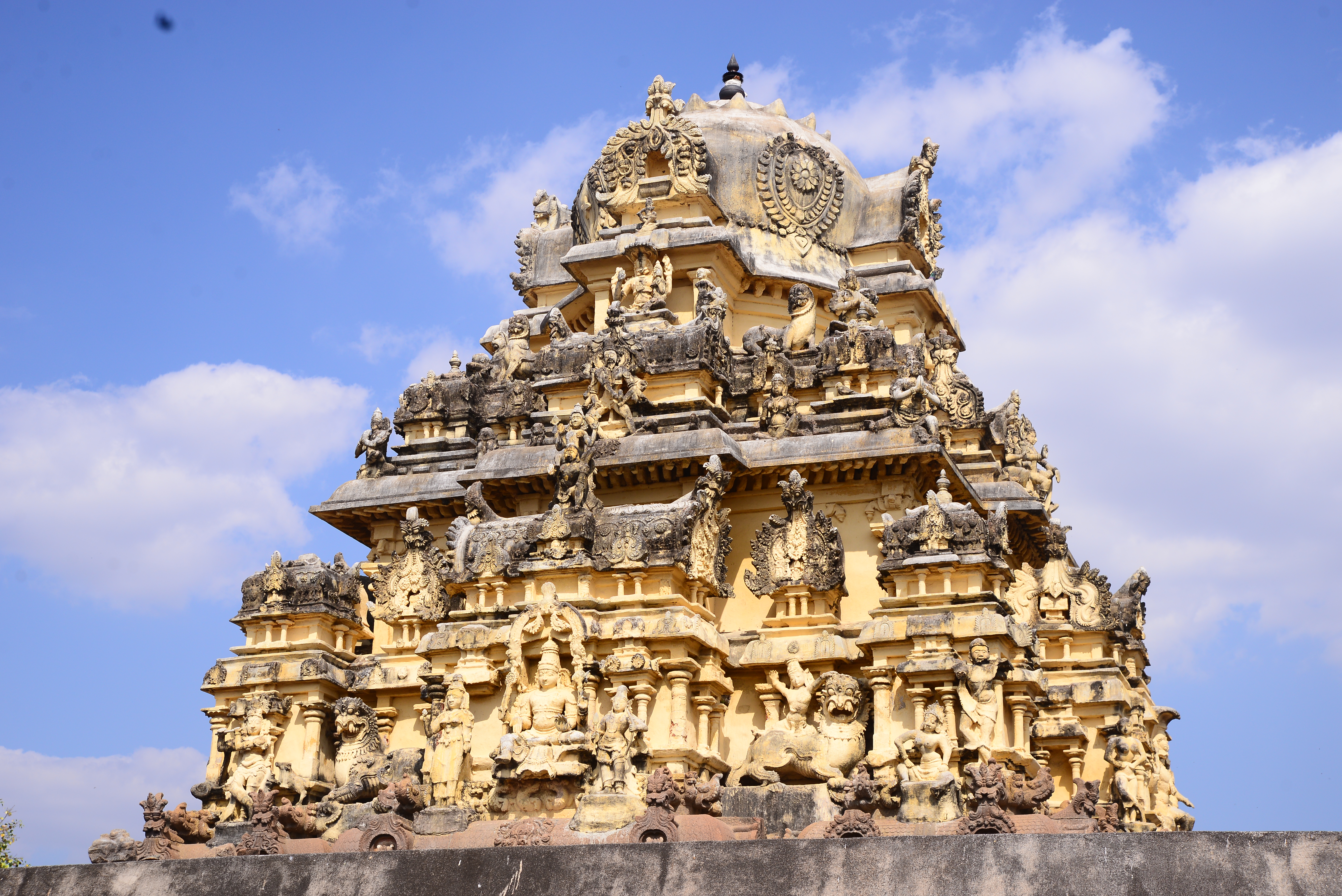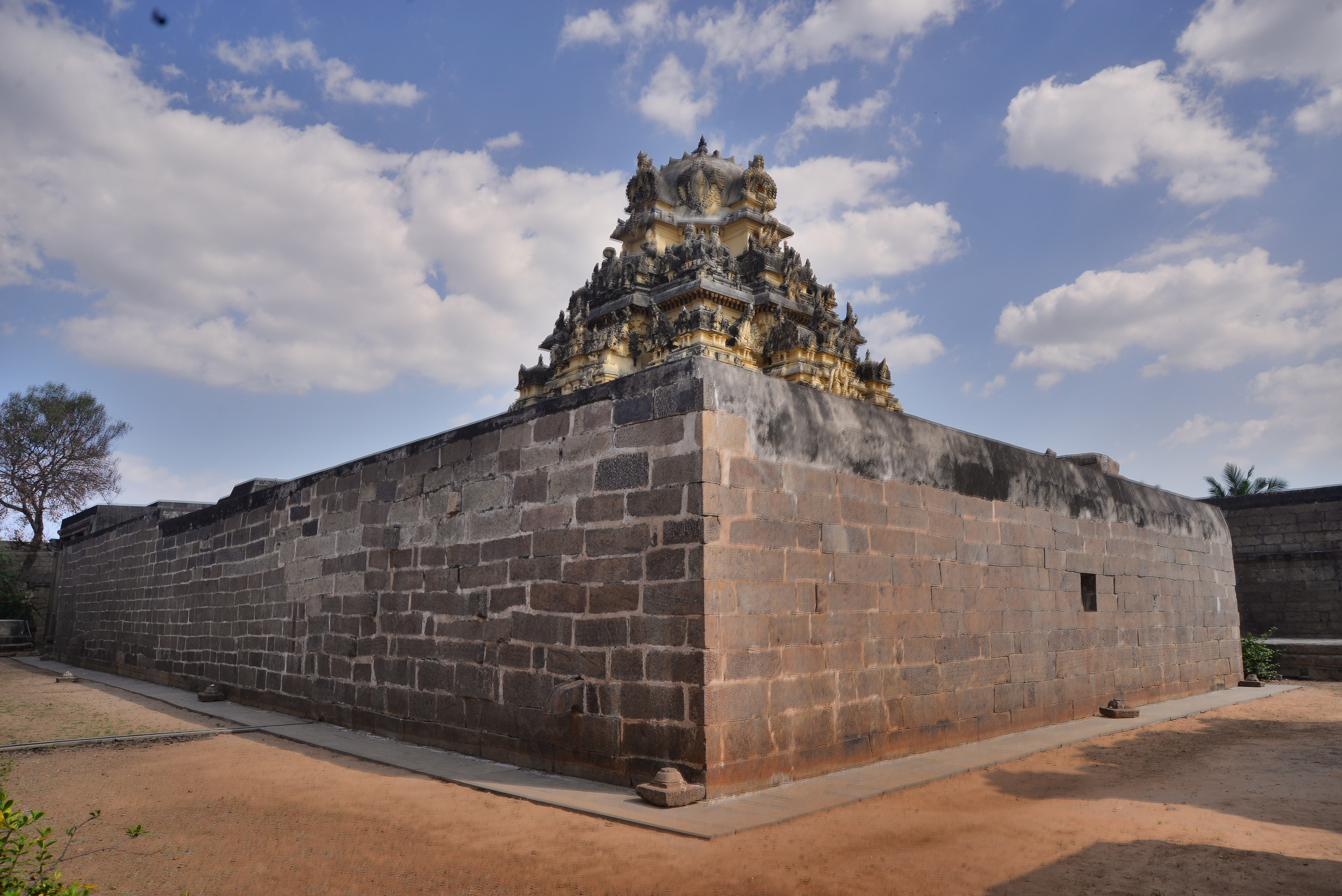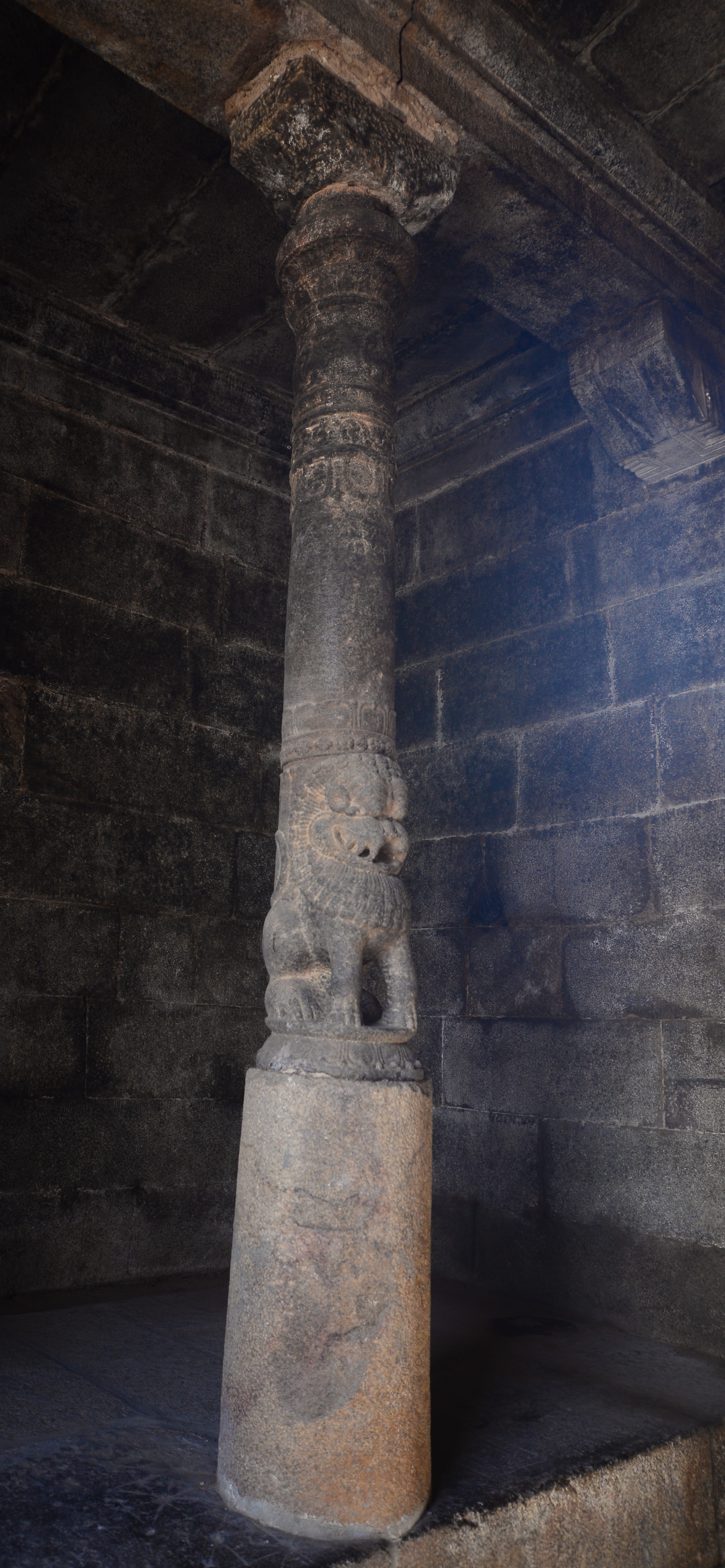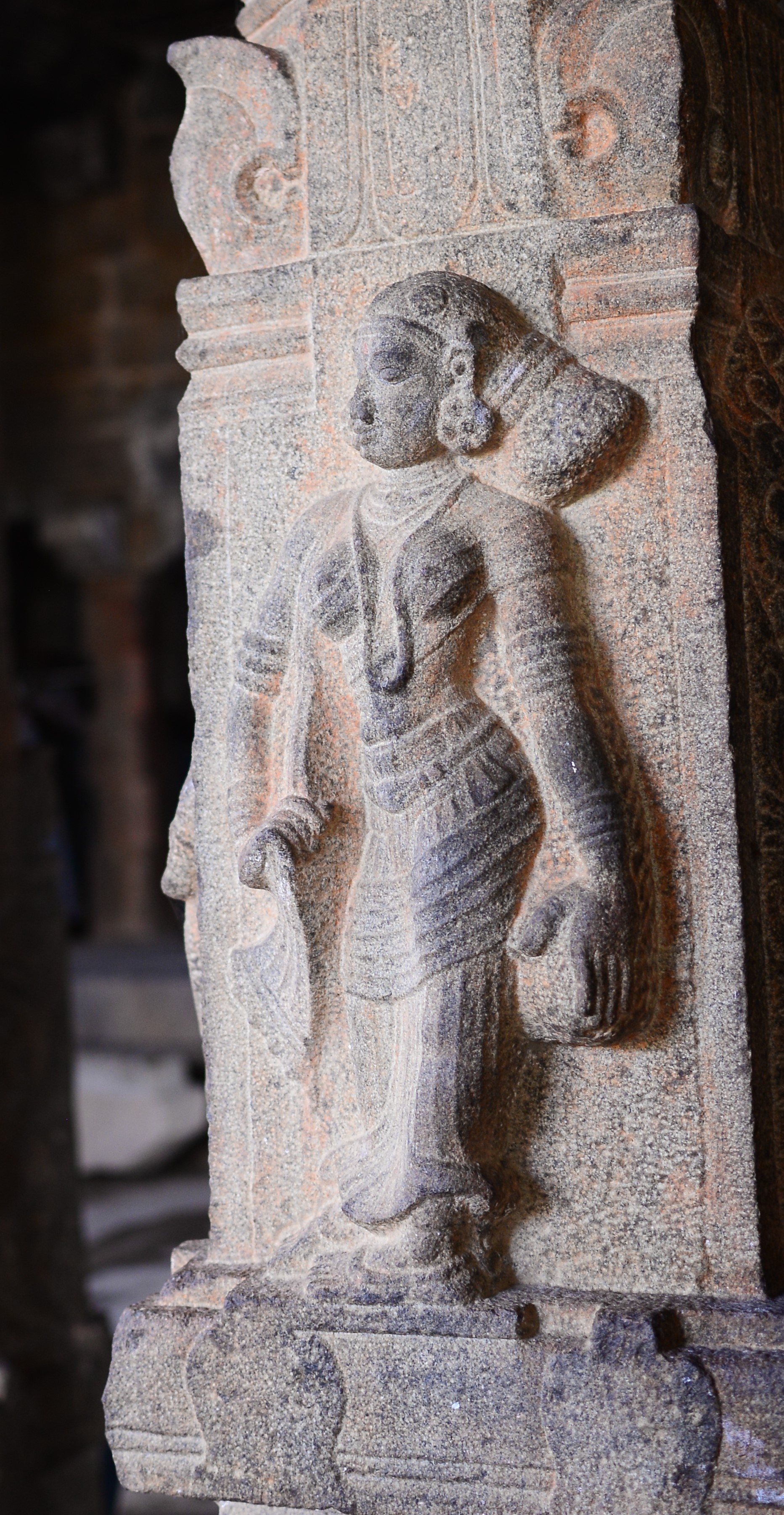 | சிற்பங்கள் | கருவறை விமானத்தின் தளங்களில் சுதையாலான திருமால் சிற்பங்கள் காணப்படுகின்றன. சிம்மம் தாங்குதளம் கொண்ட தூண்கள் உள்ளன. மேலும் தூண்களில் அடியவர், அரசன், அரசியார், பணிப்பெண், இராமன், இலக்குவன், சீதை, வீரன், அருச்சுனன், சிவன், அனுமன், கண்ணாடிப்பெண், பணிப்பெண், முதியவர் ஆகிய பல புடைப்புச் சிற்பங்கள் காணப்படுகின்றன. மண்டபங்களிலுள்ள தூண்களில் உள்ள இச்சிற்பங்கள் மிகுந்த எழில் வாய்ந்தவையாக விசயநகரர் காலத்தில் அமைக்கப்பட்டுள்ளன. |