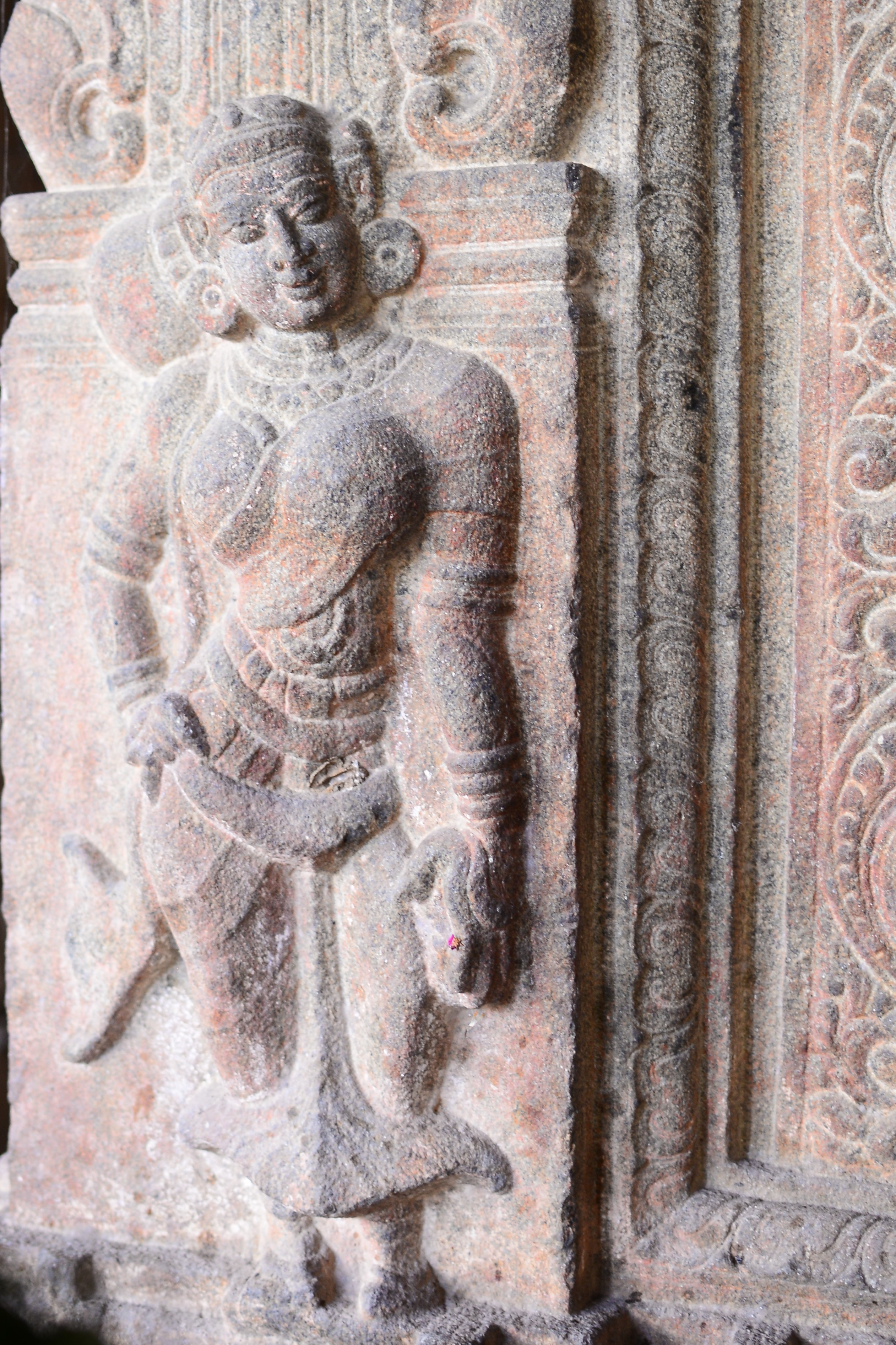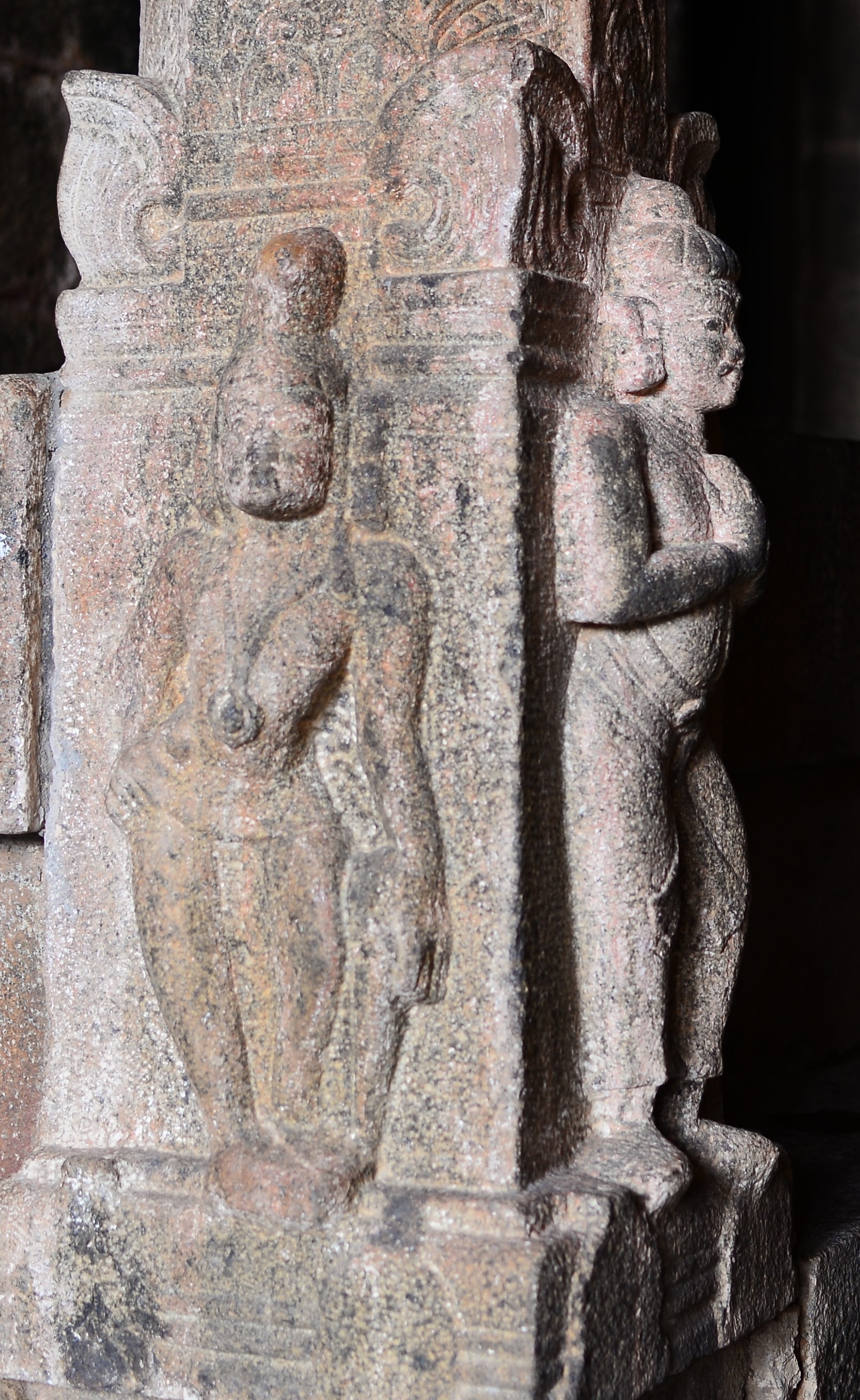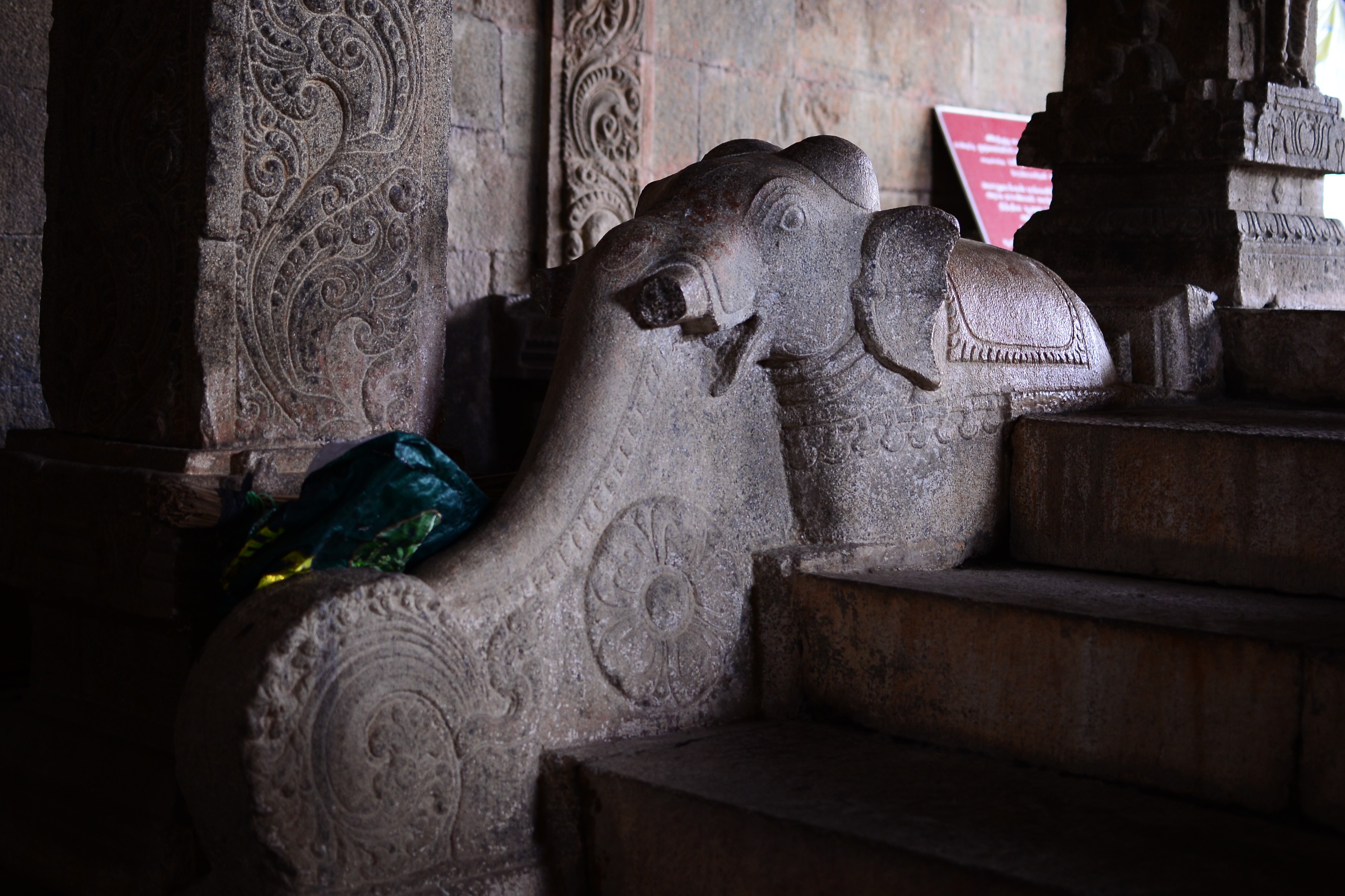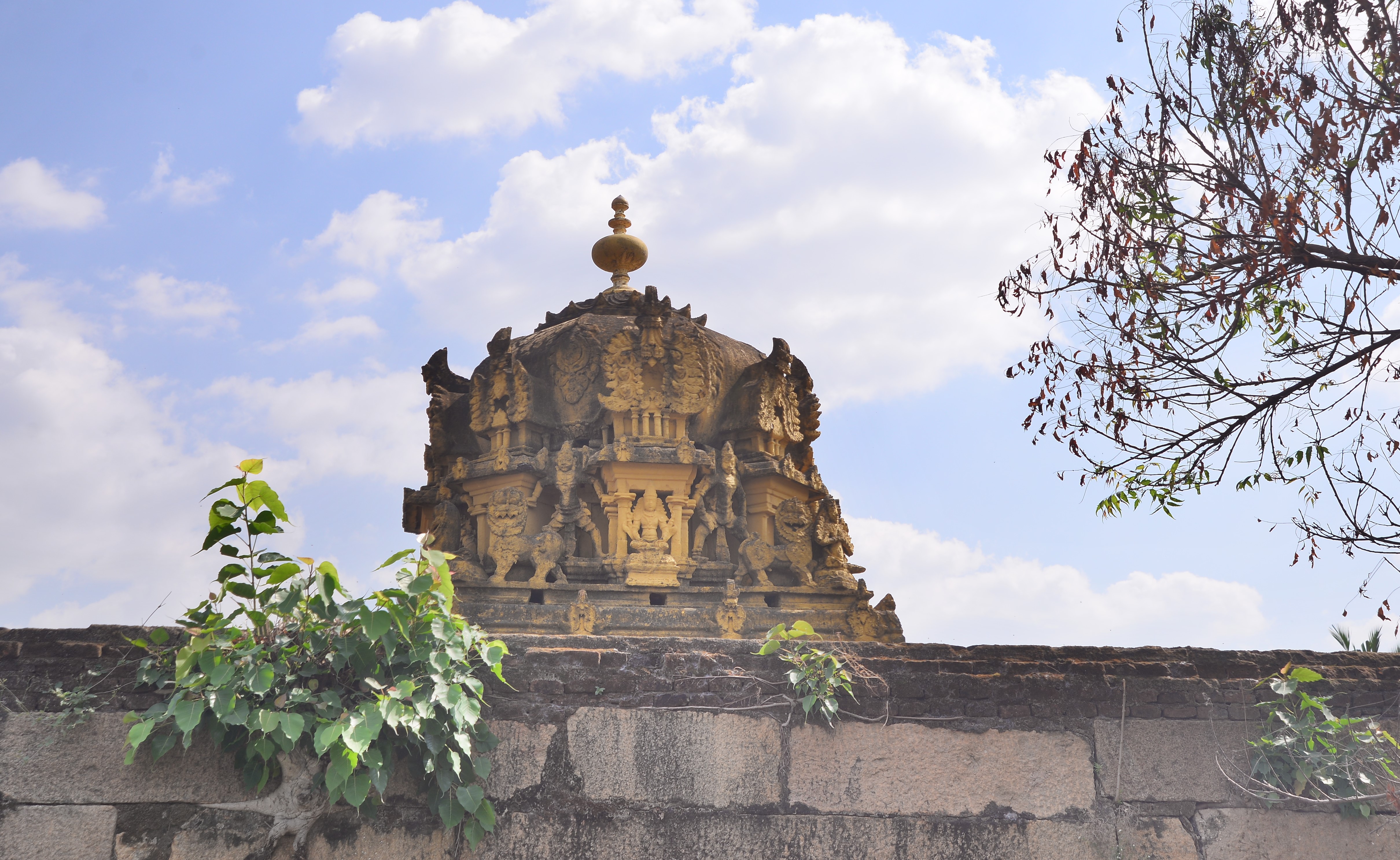 | சிற்பங்கள் | கருவறை விமானத்தின் தளங்களில் சுதையாலான திருமால் சிற்பங்கள் காணப்படுகின்றன. சிம்மம் தாங்குதளம் கொண்ட தூண்கள் உள்ளன. மேலும் தூண்களில் அடியவர், அரசன், அரசியார், பணிப்பெண், இராமன், இலக்குவன், சீதை, வீரன், அருச்சுனன், சிவன், அனுமன், கண்ணாடிப்பெண், பணிப்பெண், முதியவர் ஆகிய பல புடைப்புச் சிற்பங்கள் காணப்படுகின்றன. மண்டபங்களிலுள்ள தூண்களில் உள்ள இச்சிற்பங்கள் மிகுந்த எழில் வாய்ந்தவையாக விசயநகரர் காலத்தில் அமைக்கப்பட்டுள்ளன. |