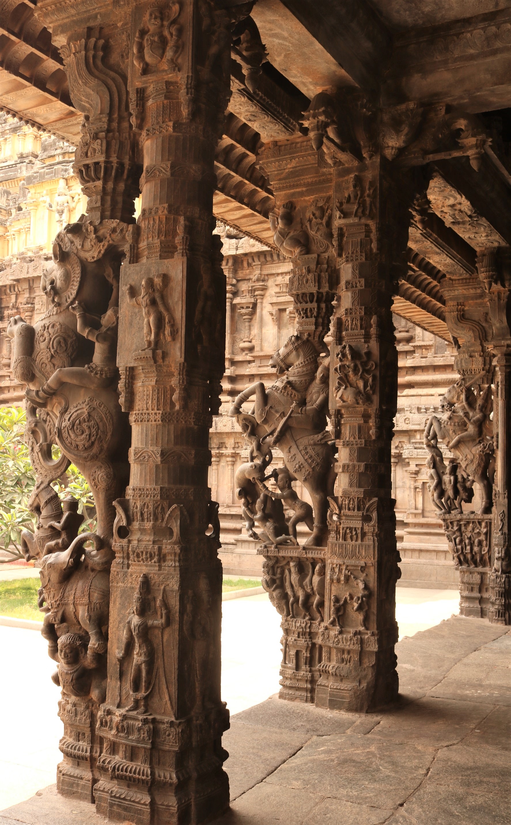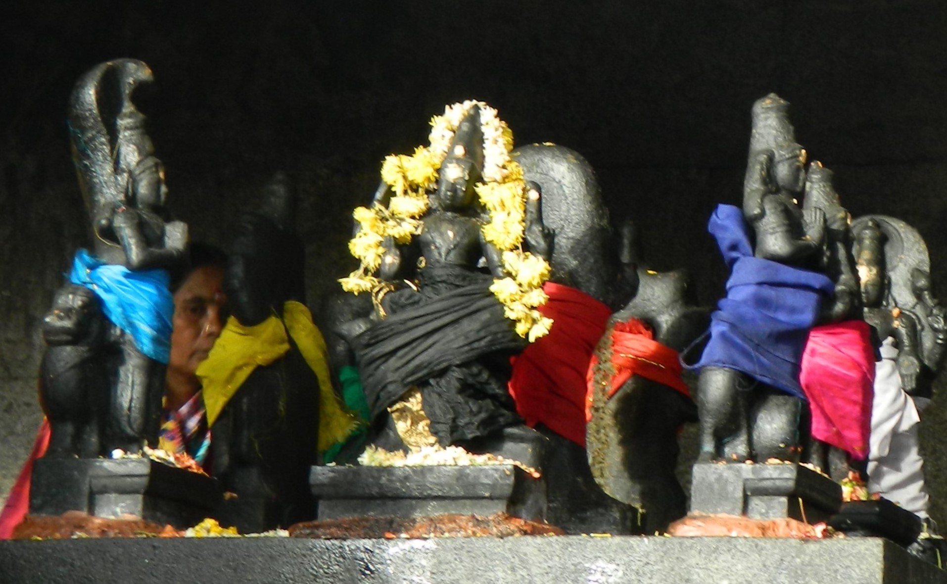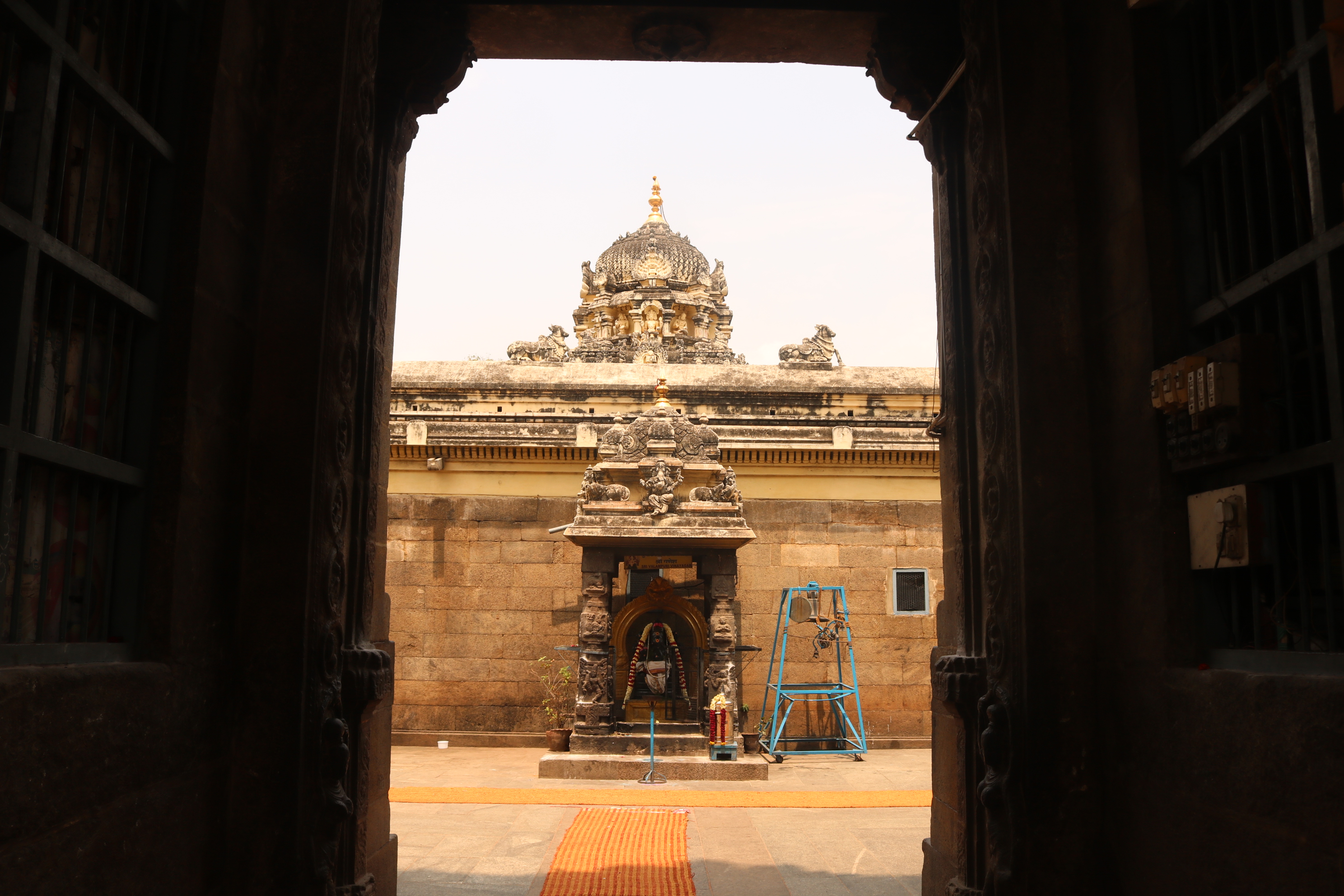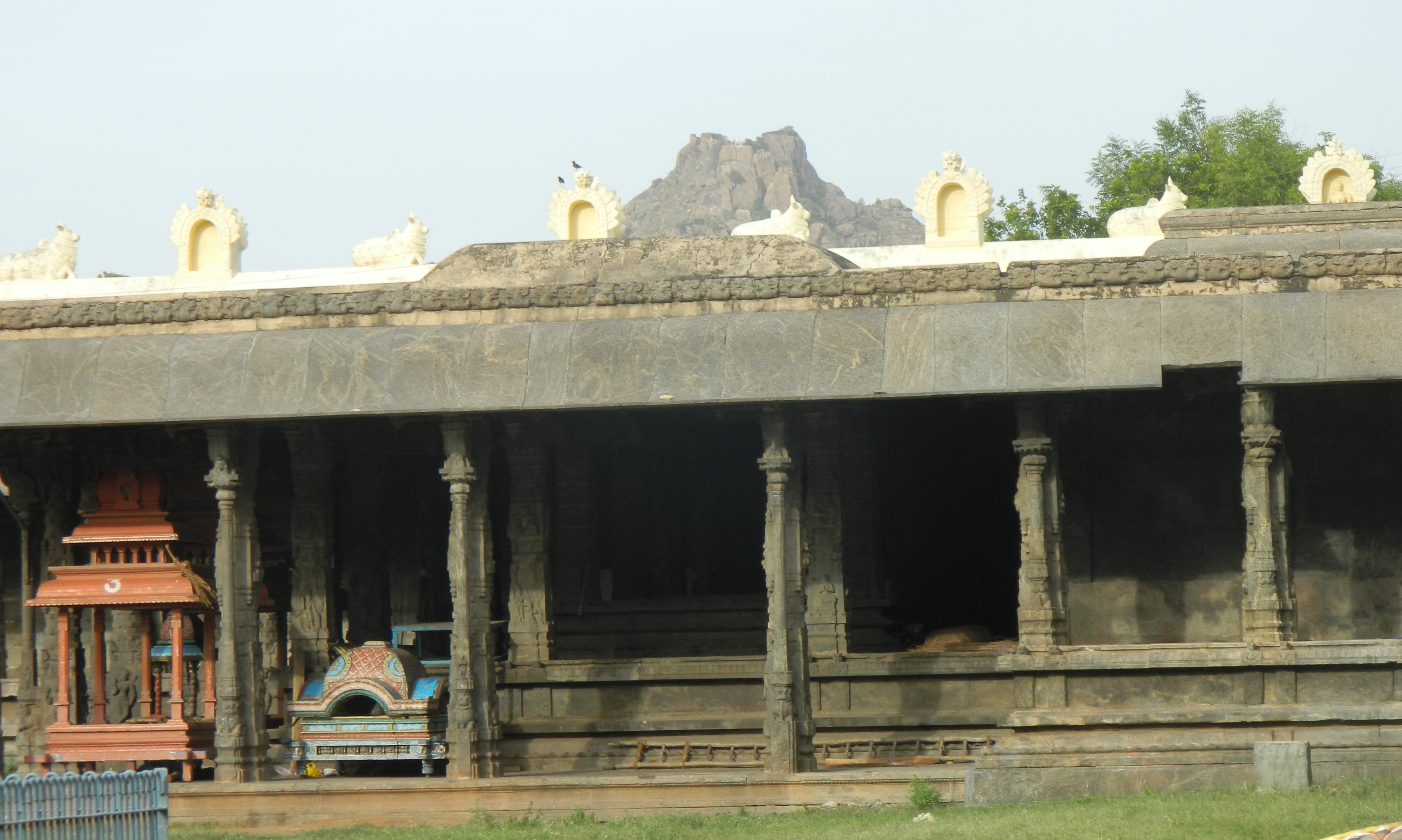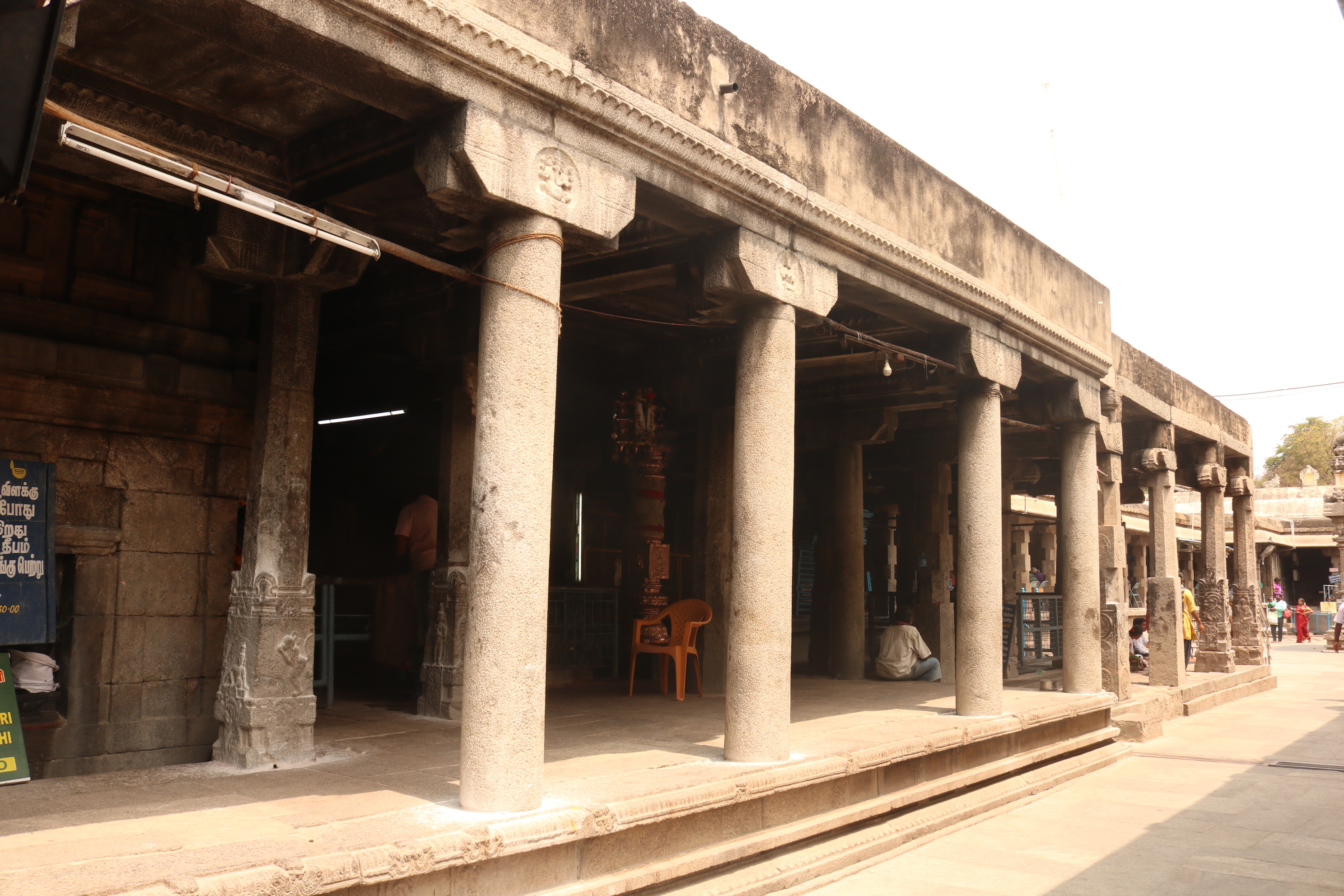 | சிற்பங்கள் | இத்தலத்து விநாயகர் செல்வவிநாயகர் எனப்படுகிறார். கருவறையில் இலிங்க வடிவில் இறைவன் காட்சியளிக்கிறார். இக்கருவறையின் பின்புறம் வெங்கடேசப்பெருமாள் அமைந்துள்ளார். சூரியன், சந்திரனை விழுங்கும் ராகு, கேது மற்றும் பல்லிகள் திருச்சுற்றில் சிற்பமாக வடிக்கப்பட்டிருக்கின்றன. ஆதிசங்கரர் திருவுரு இங்கு அமைந்துள்ளது. 63 நாயன்மார்களின் செப்புத் திருமேனிகள் இக்கோயிலில் இருக்கின்றன. சித்திரை பிரம்மோற்சவத்தின் போது 8 பல்லக்குகளில் 8 நாயன்மார்களாக 63 நாயன்மார்களும் திருவீதியுலா வருவது சிறப்பு. இத்தலத்தின் அன்னை தெய்வம் அகிலாண்டேஸ்வரி தனிக்கோயில் கொண்டிருக்கிறார். அம்மன் மகாமண்டபத்தில் இலக்குமி, சரஸ்வதி ஆகிய தெய்வ வடிவங்கள் இடம் பெற்றுள்ளன. மேலும் இங்குள்ள கலியாண மண்டபம் என அழைக்கப்படும் அழகிய சிற்பங்கள் நிறைந்த மண்டபம் விசயநகர சிற்பக் கலைப்பாணிக்கு சிறந்த எடுத்துக்காட்டாகும். இம்மண்டபத்தின் உள்ள தூண்களின் பாதப்பகுதியில் நான்குபுறமும் புடைப்புச் சிற்பங்கள் வடிக்கப்பட்டுள்ளன. பைரவர், நடராஜர், கண்ணப்பர் வரலாறு, கிருஷ்ணன், மத்தளம் வாசிக்கும் திருமால், நரசிம்மர் காலடியில் கருடாழ்வார், சிவவடிவங்கள் ஆகியன எழிலார்ந்த சிற்பங்களாகும். |