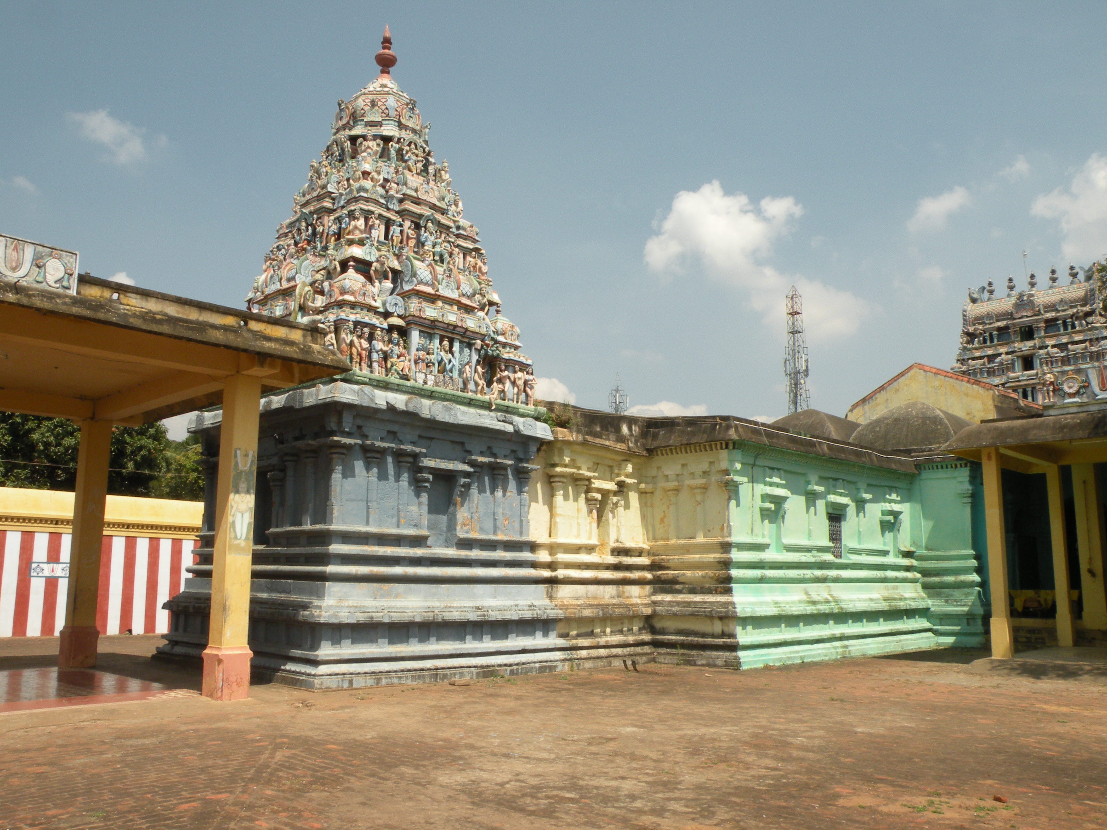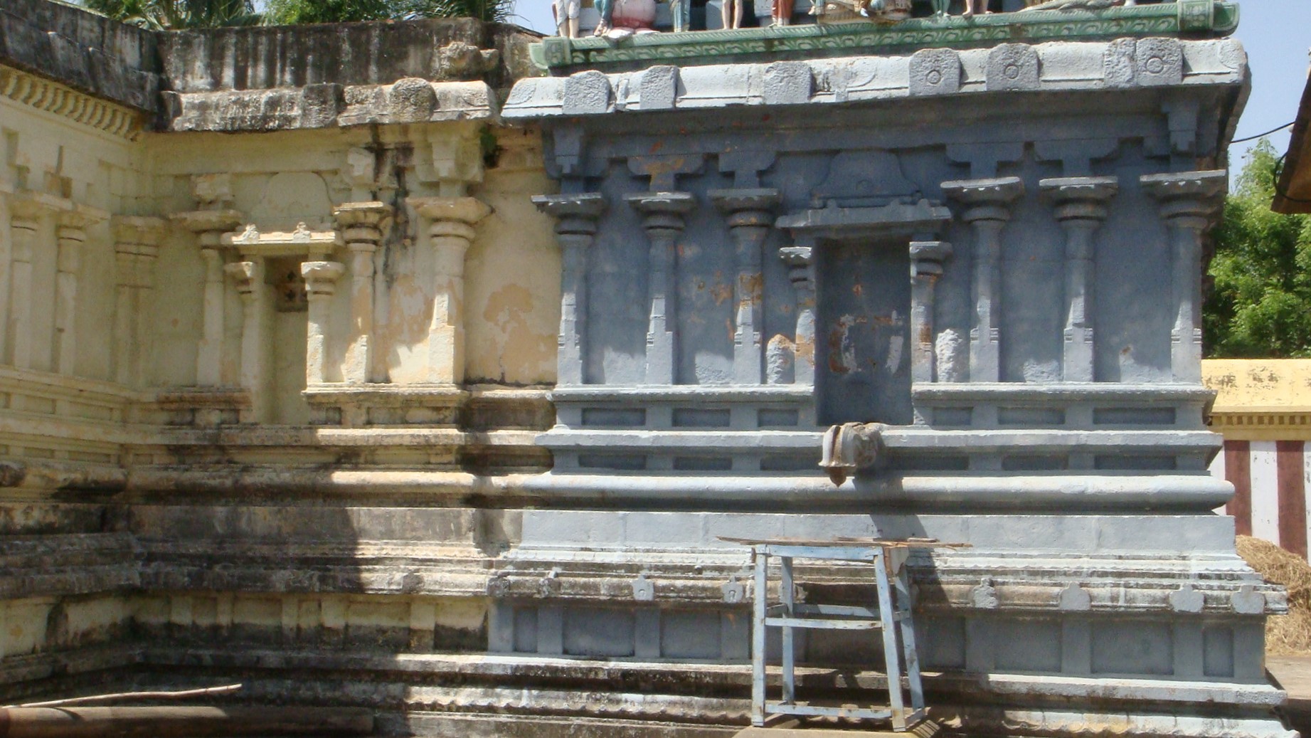 | கோயிலின் அமைப்பு | கருவறை விமானம் இரு தளங்களை உடையது. தாங்குதளம் முதல் கூரைப்பகுதி வரை கற்றளியாகவும், அதற்கு மேல் உள்ள பகுதி சுதையாலும் அமைக்கப்பட்டுள்ளது. விமானத்தின் தளத்தில் சுதைச் சிற்பங்கள் அமைந்துள்ளன. கருவறை, அர்த்தமண்டபம், முகமண்டபம், மகாமண்டபம், இராஜகோபுரம், நுழைவுவாயில் மண்டபம் ஆகியன இக்கோயிலில் அமைந்துள்ளன. கருவறை விமானம் புஷ்பவிமானமாக அமைக்கப்பட்டுள்ளது. கருவறையின் வெளிப்புறச் சுவர்களில் வெற்றுக் கோட்டங்கள் அமைந்துள்ளன. எளிய அமைப்புடைய கருவறை விமானமாகவே இக்கோயில் விமானம் அமைந்துள்ளது. |