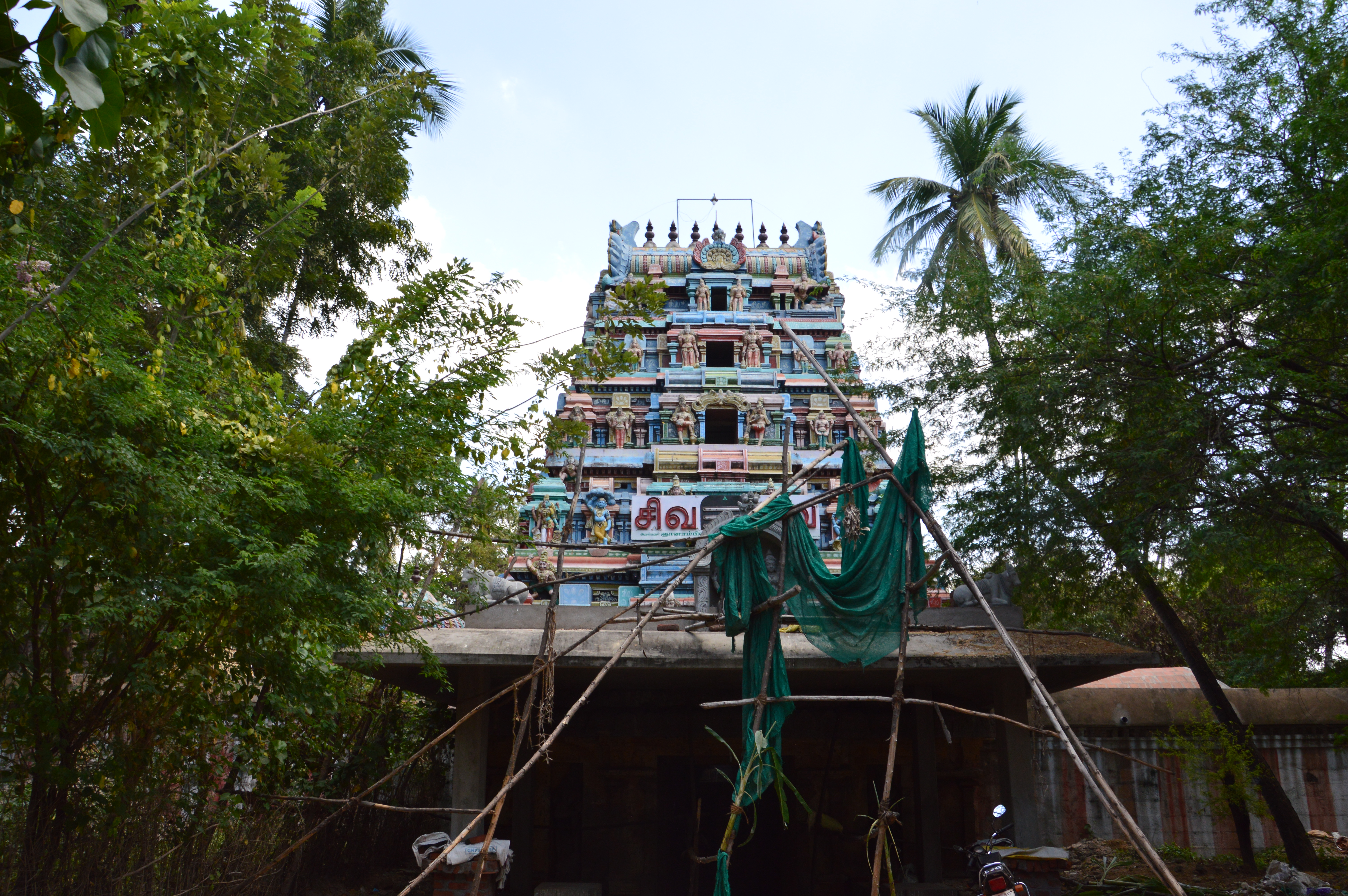 | கோயிலின் அமைப்பு | மேற்கு நோக்கிய திருத்தலமாக இக்கோயில் விளங்குகிறது. இக்கோயில் இறைவன் கருவறை தாங்குதளத்திலிருந்து சுவர் வரை கற்றளியாகவும், கூரையிலிருந்து விமானத்தின் மேற்பகுதி சுதையாலும் அமைக்கப்பட்டுள்ளது. இக்கோயில் சோழர்காலத்தில் கற்றளியாக்கப்பட்டிருக்க வேண்டும். இக்கோயிலை அப்பர் தனது திருமுறையில் பாடியுள்ளதால் கி.பி.6-ஆம் நூற்றாண்டிலேயே இக்கோயில் இருந்திருக்க வேண்டும். பின்பு இக்கோயில் சோழர்காலத்தில் கற்றளியாக்கப்பட்டிருக்க வேண்டும். கோயில் முழுவதும் புனரமைக்கப்பட்டுள்ளது. கட்டடக்கலைப் பாணியில் ஆங்காங்கே சோழர்கால எச்சம் தெரிகிறது. தாங்குதளத்தின் உபானம், ஜகதி ஆகிய உறுப்புகள் மண்ணுக்குள் புதையுண்டுள்ளன. உருளைக் குமுதம் வெளியேத் தெரிகின்றது. சுவர்களில் உள்ள கோட்டங்களில் சோழர்கால சிற்பங்கள் காணப்படவில்லை. அரைத்தூண்களுக்கு நடுவே கோட்டங்கள் அமைந்துள்ளன. பஞ்சரப்பத்தியிலும் கோட்டங்கள் உள்ளன. அவையும் வெற்றுக் கோட்டங்களாகவே உள்ளன. கருவறை, அர்த்தமண்டபம், முகமண்டபம், இராஜகோபுரம் ஆகியன இடம் பெற்றுள்ளன. அர்த்தமண்டபம் மற்றும் முகமண்டபத்தின் கூரைப்பகுதியில் யாளிவரி செல்கிறது. இராஜகோபுரம் மூன்று நிலைகளைக் கொண்டுள்ளது. கோபுரத்தில் சுதைச் சிற்பங்கள் அழகு செய்கின்றன. அம்மனுக்கு தனி சிறுகோயில் அமைந்துள்ளது. அம்மன் கருவறை விமானம் ஒரு தளத்தைப் பெற்றுள்ளது. இது பிற்காலக் கட்டடக்கலைப் பாணியாகும். இக்கருவறைக் கோட்டங்களும் வெற்றிடமாகவே உள்ளன. |