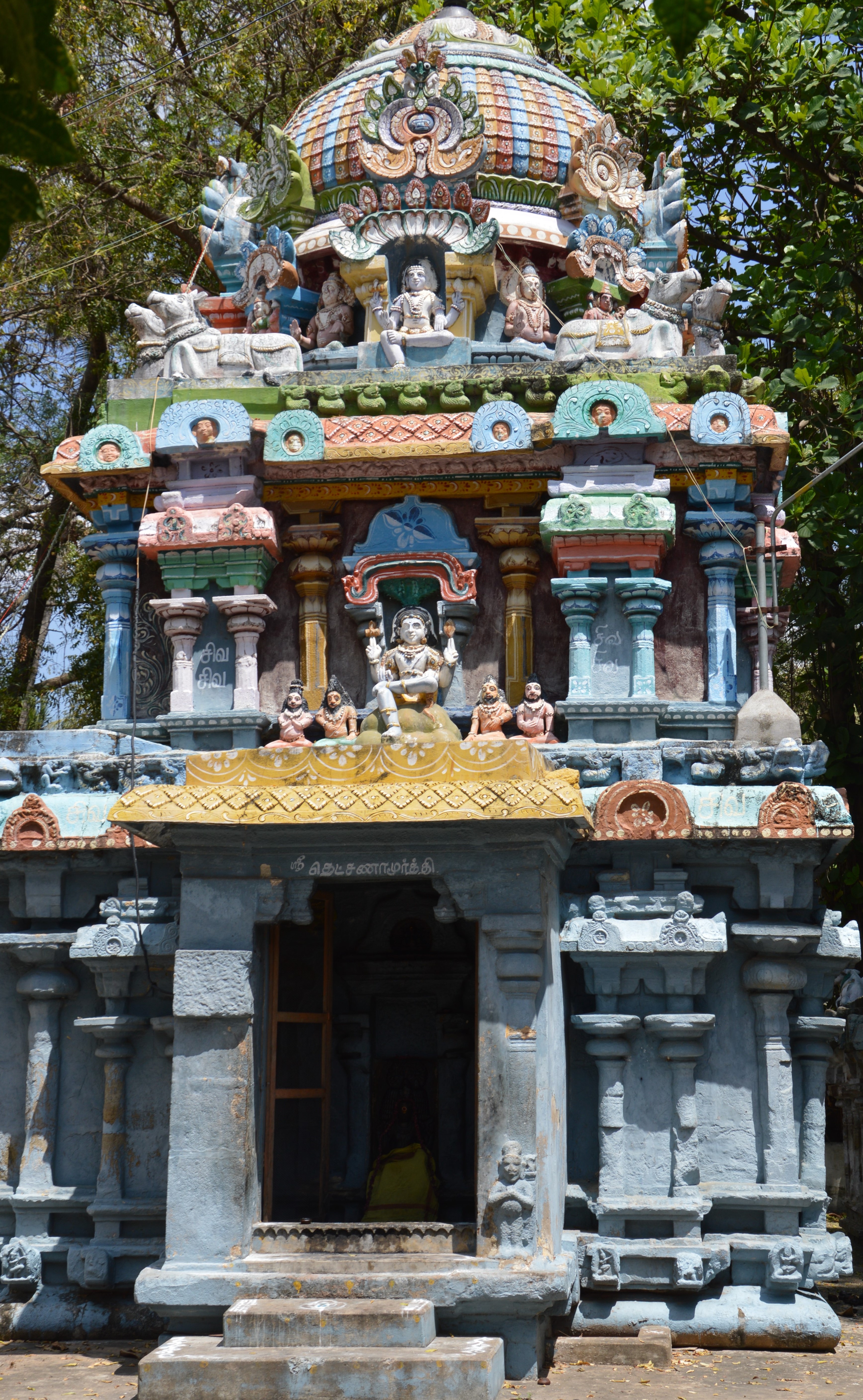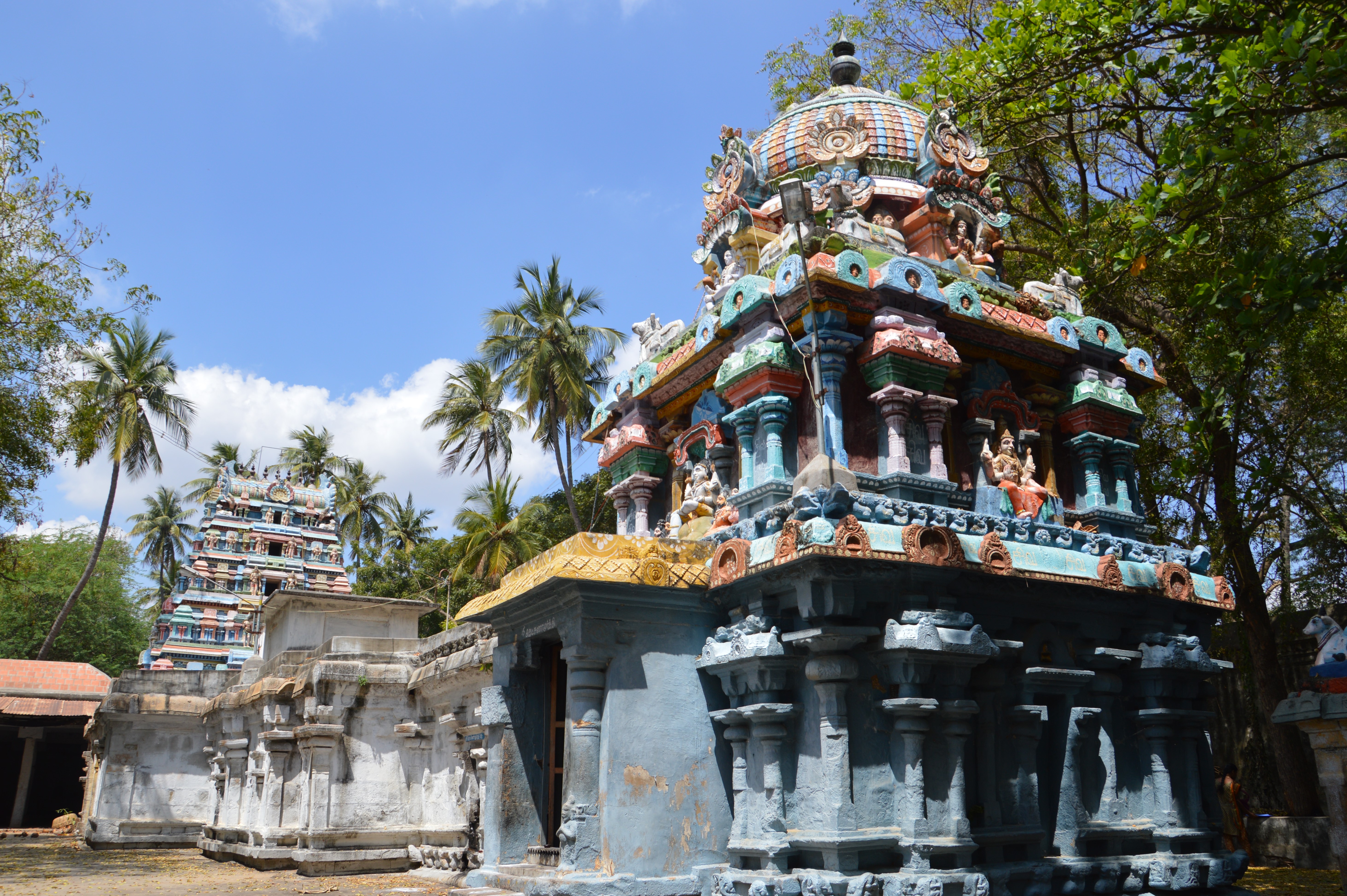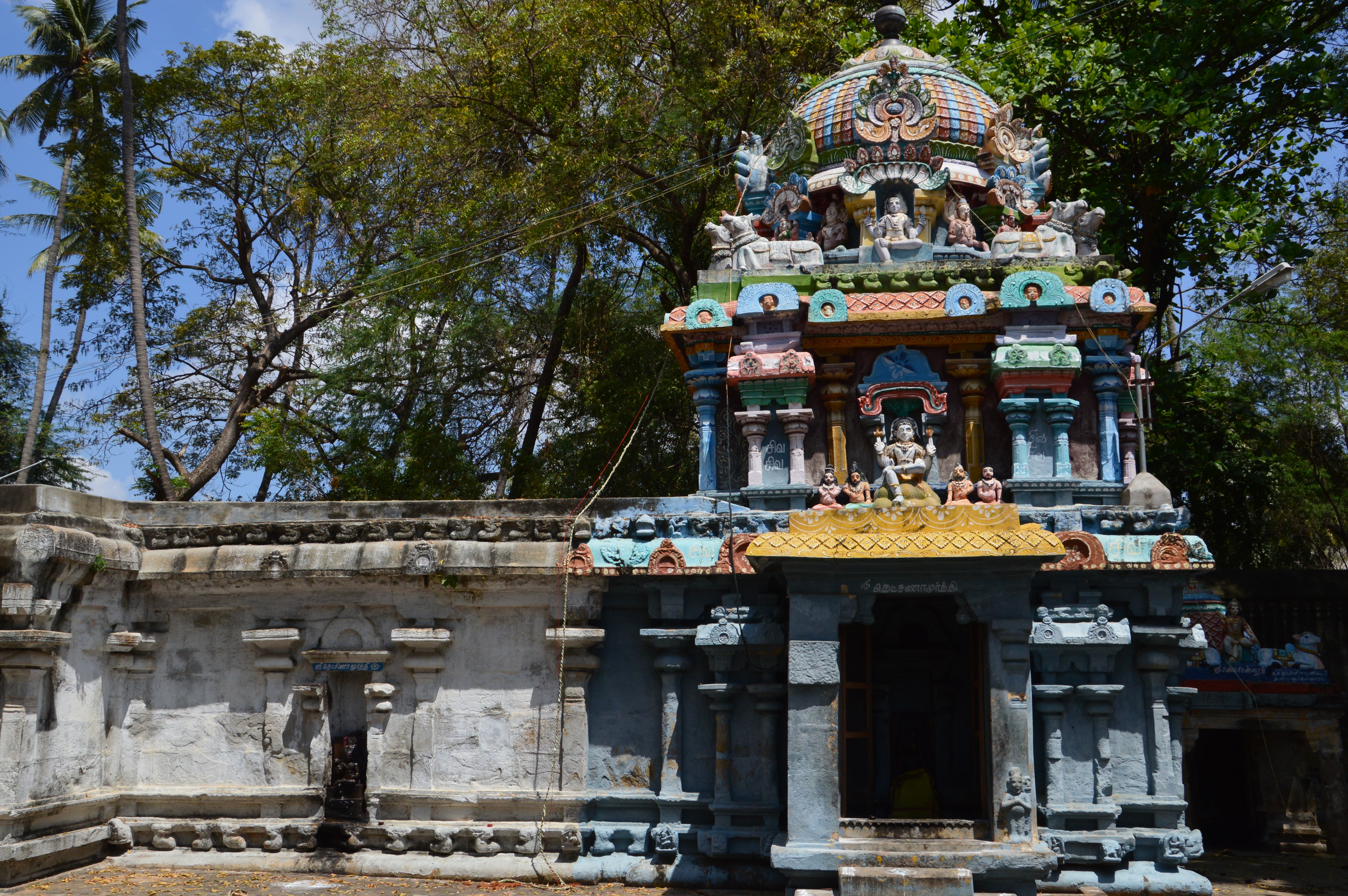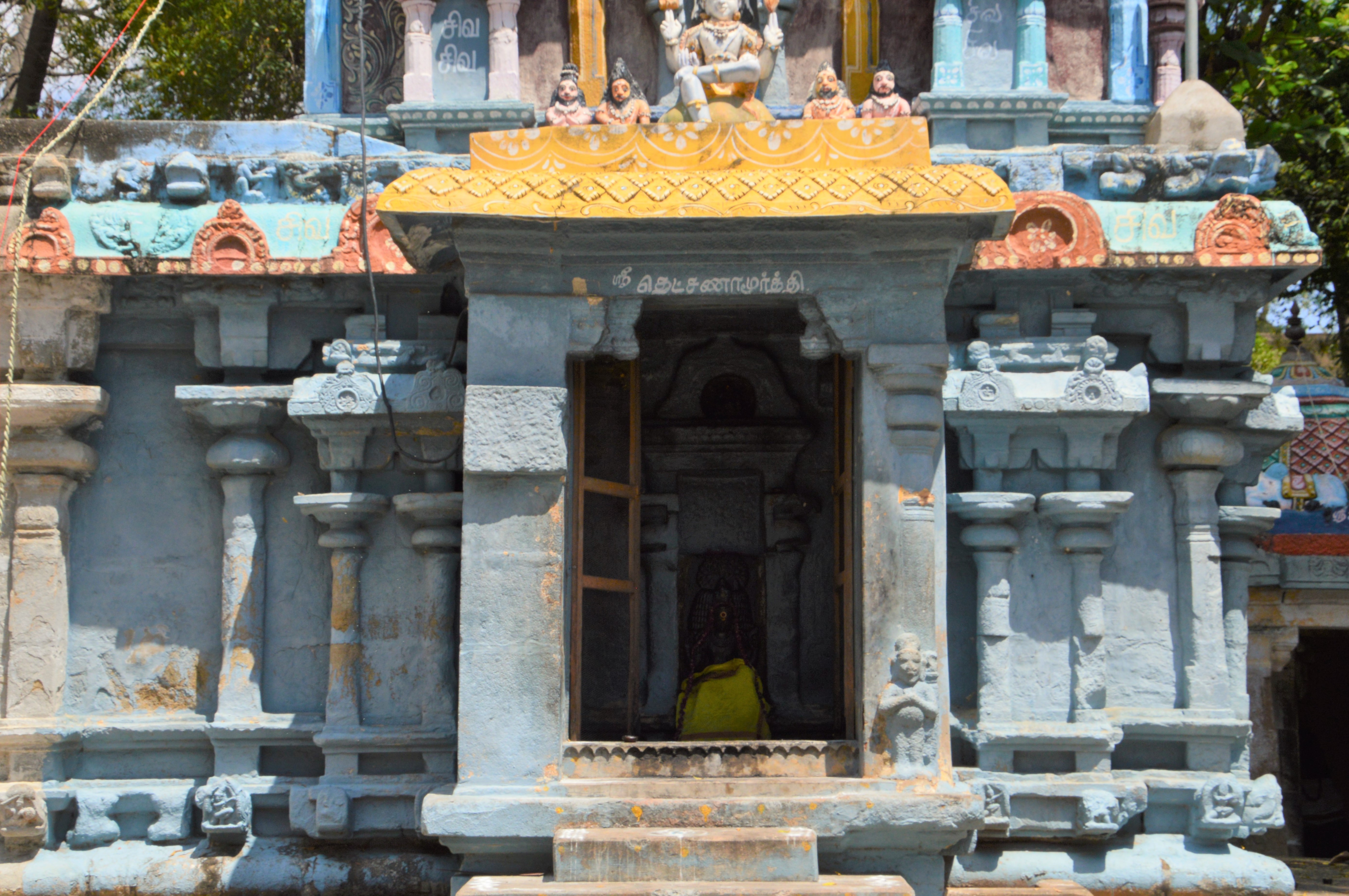 | சிற்பங்கள் | இறைவன் கருவறை விமானத்தின் தென்புறக்கோட்டத்தில் பிற்காலத்திய தென்முகக் கடவுள் உள்ளார். மேலும் அதனையடுத்து உள்ள பஞ்சரக் கோட்டத்திலும் ஒரு தென்முகக் கடவுள் சிற்பம் அமைக்கப்பட்டுள்ளது. நான்முகன், விஷ்ணுதுர்க்கை, சண்டேசர், நவக்கிரகம், நால்வர், அப்பர் ஆகிய பிற்கால சிற்பங்களும் உள்ளன. கருவறை, அர்த்தமண்டபம், முகமண்டபம் ஆகியவற்றின் கூரைப்பகுதியில் யாளிவரி செல்கிறது. இறைவன் கருவறை விமானத்திலும், அம்மன் கருவறை விமானத்திலும் சுதைச்சிற்பங்கள் உள்ளன. இராஜகோபுரத்தில் சுதைச்சிற்பங்கள் காணப்படுகின்றன. |