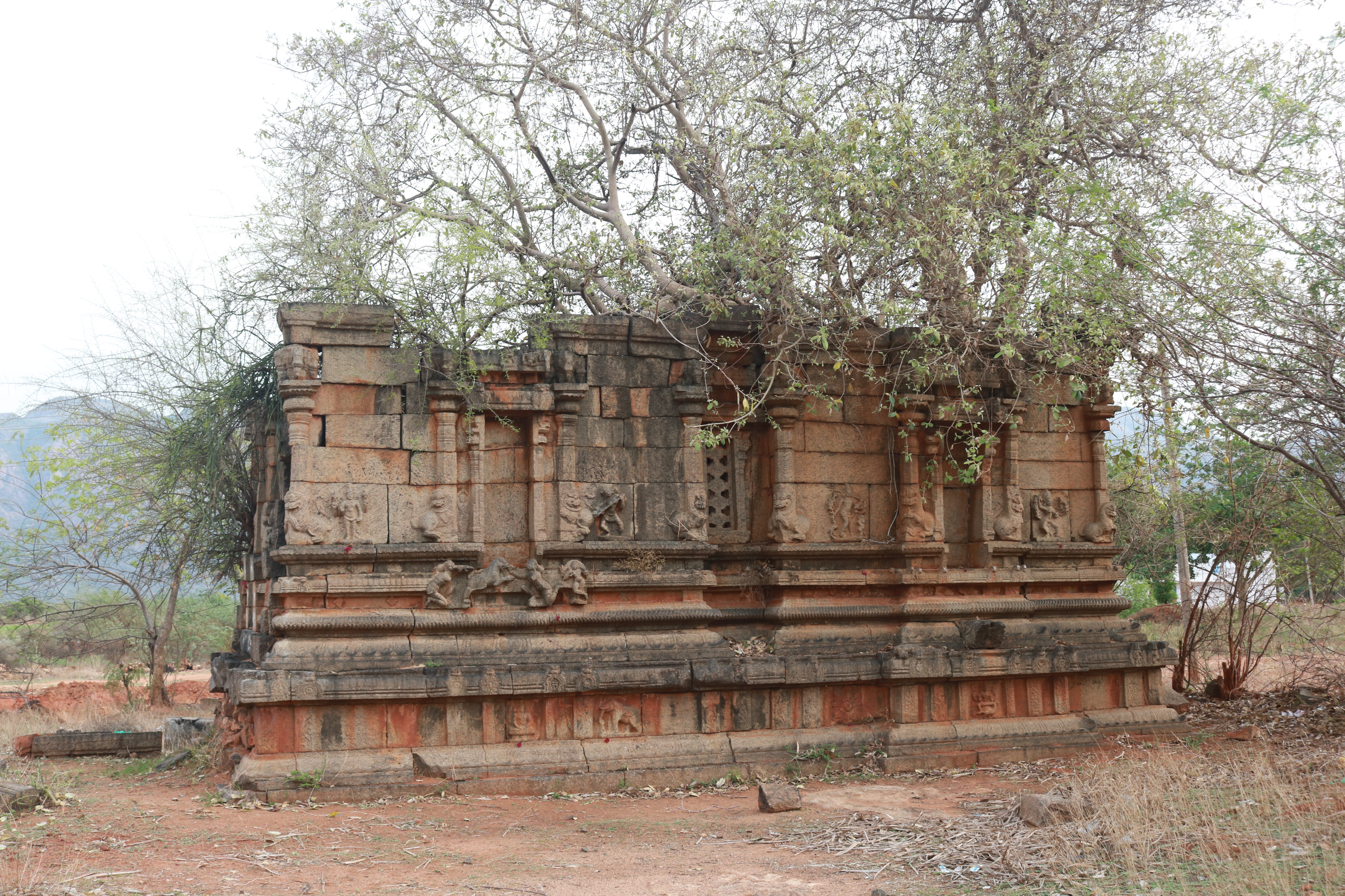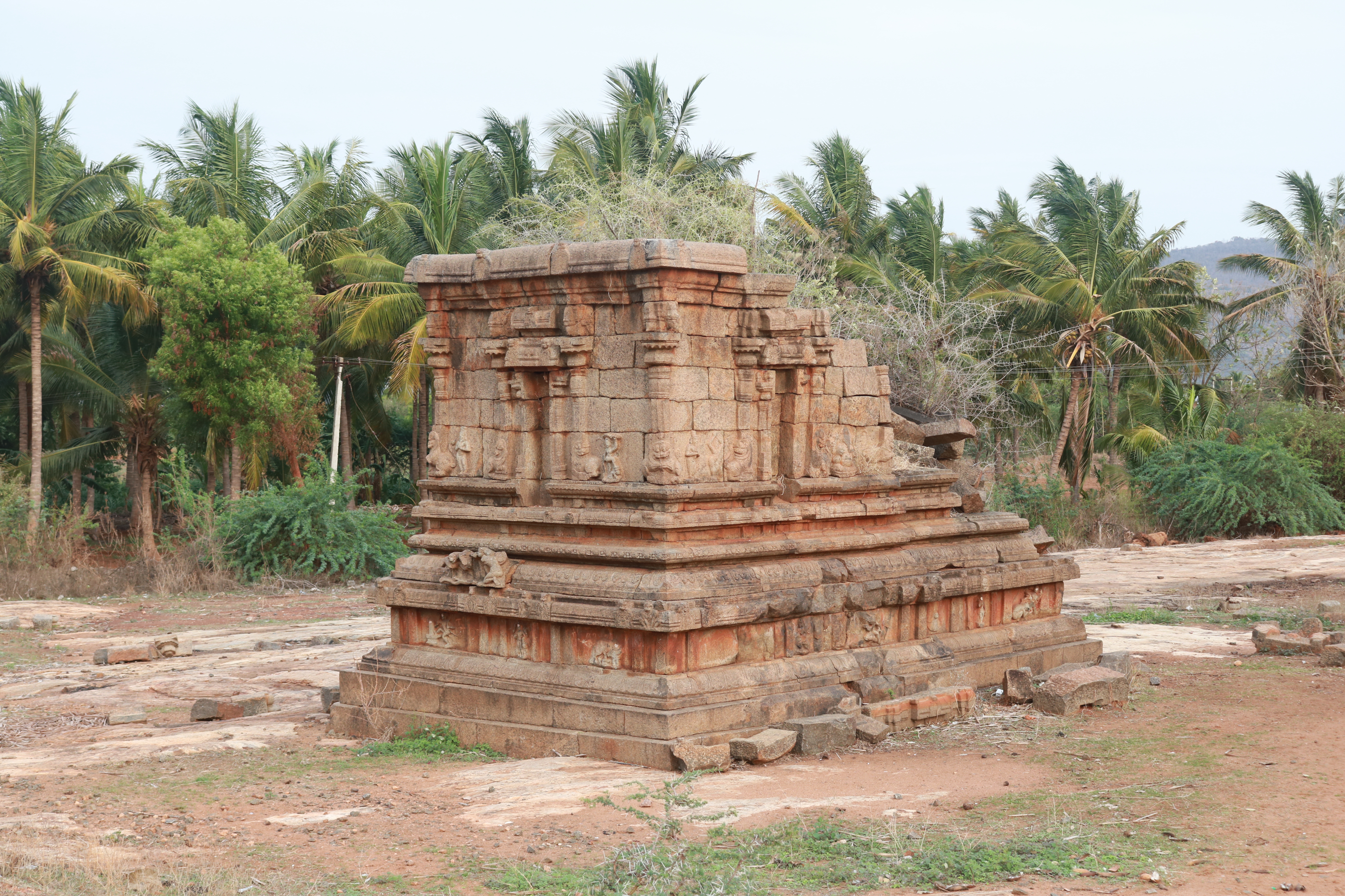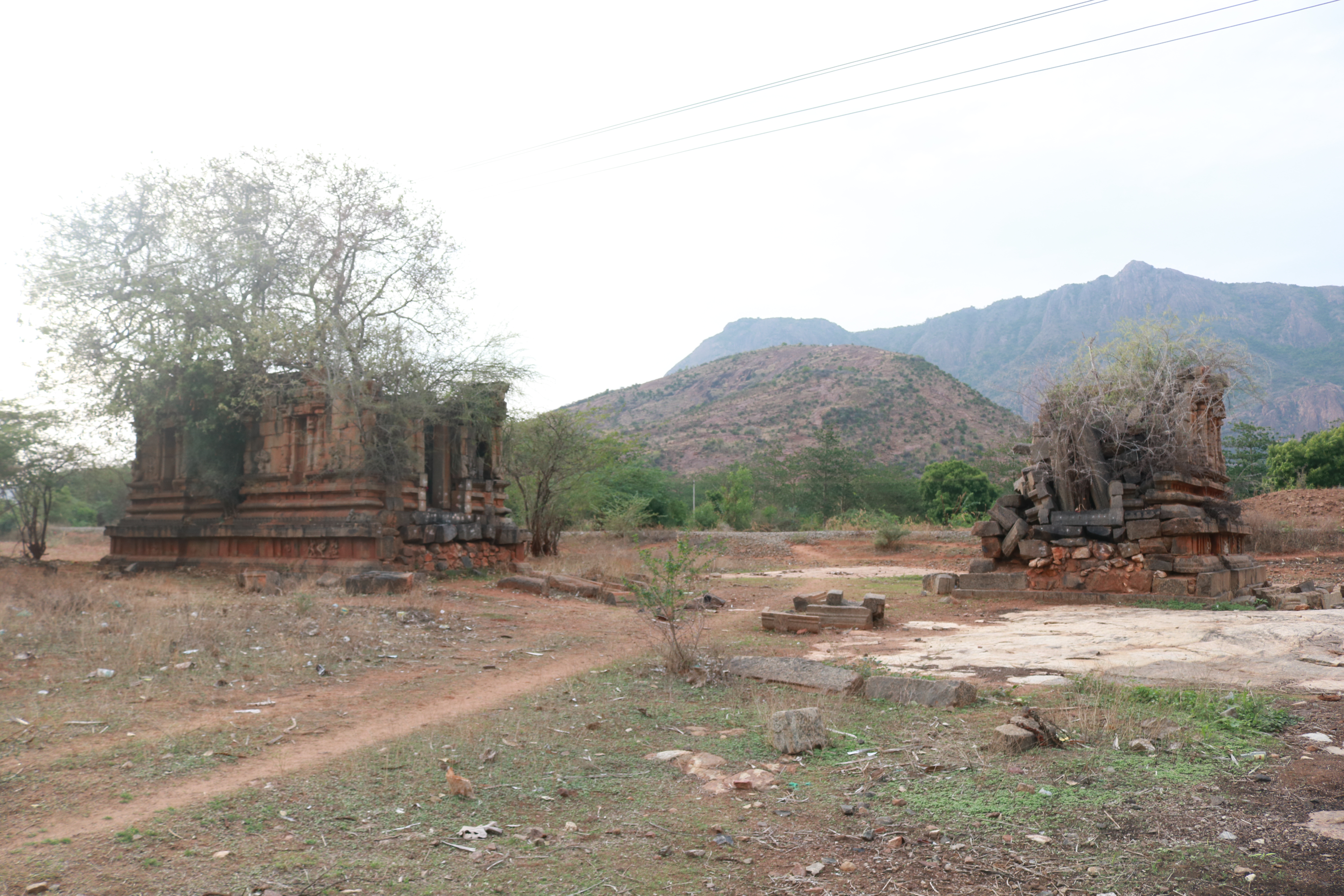 | கோயிலின் அமைப்பு | சிவன் கோயில் முழுவதும் தாங்குதளத்திலிருந்து கற்றளியாக அமைந்துள்ளது. துணைத் தாங்குதளத்துடன் (உபபீடம்) தாங்குதளம் உள்ளது. உபானம், ஜகதி, சிலம்புக் குமுதம், கண்டம், பட்டிகை என்ற தாங்குதள உறுப்புகளைக் கொண்டுள்ளது. துணைத் தாங்குதளத்தில் புடைப்புச் சிற்பங்கள் அமைந்துள்ளன. கருவறையும் அர்த்தமண்டபமும் கொண்டதாக இக்கோயில் அமைந்துள்ளது. கருவறை புறச் சுவரிலும், அர்த்தமண்டப புறச்சுவரிலும் வெற்றுக் கோட்டங்கள் அமைந்துள்ளன. கோட்டங்களை இருபுறமும் சிம்ம அரைத்தூண்கள் அழகு செய்கின்றன. இக்கோட்டங்களின் புறத்தே இருபுறமும் புடைப்புச் சிற்பங்கள் அமைக்கப்பட்டுள்ளன. கருவறையைத் தொடர்ந்து இடைநாழிகை எனப்படும் அந்தராளம் உள்ளது. அந்தராளப் பகுதியில் தெற்கிலும், வடக்கிலும் சாளரம் அமைக்கப்பட்டுள்ளது. கோயிலின் உட்புறம் முழுவதும் சிதிலமடைந்துள்ளது. தளங்கள் ஏதும் காணப்படவில்லை. அம்மன் கோயில் தெற்கு நோக்கி அமைந்துள்ளது. கருவறையும் அர்த்தமண்டபமும் கொண்டதாக இக்கோயில் அமைந்துள்ளது. துணைத் தாங்கு தளத்தின் கண்டப்பகுதியில் புடைப்புச் சிற்பங்கள் அமைந்துள்ளன. சிவன் கோயில் போன்றே அம்மன் கோயில் கட்டட அமைப்பும் காணப்படுகின்றது. பத்ம ஜகதியும், முப்பட்டை குமுதத்தில் பூ வேலைப்பாடுகளும் காட்டப்பட்டுள்ளன. |