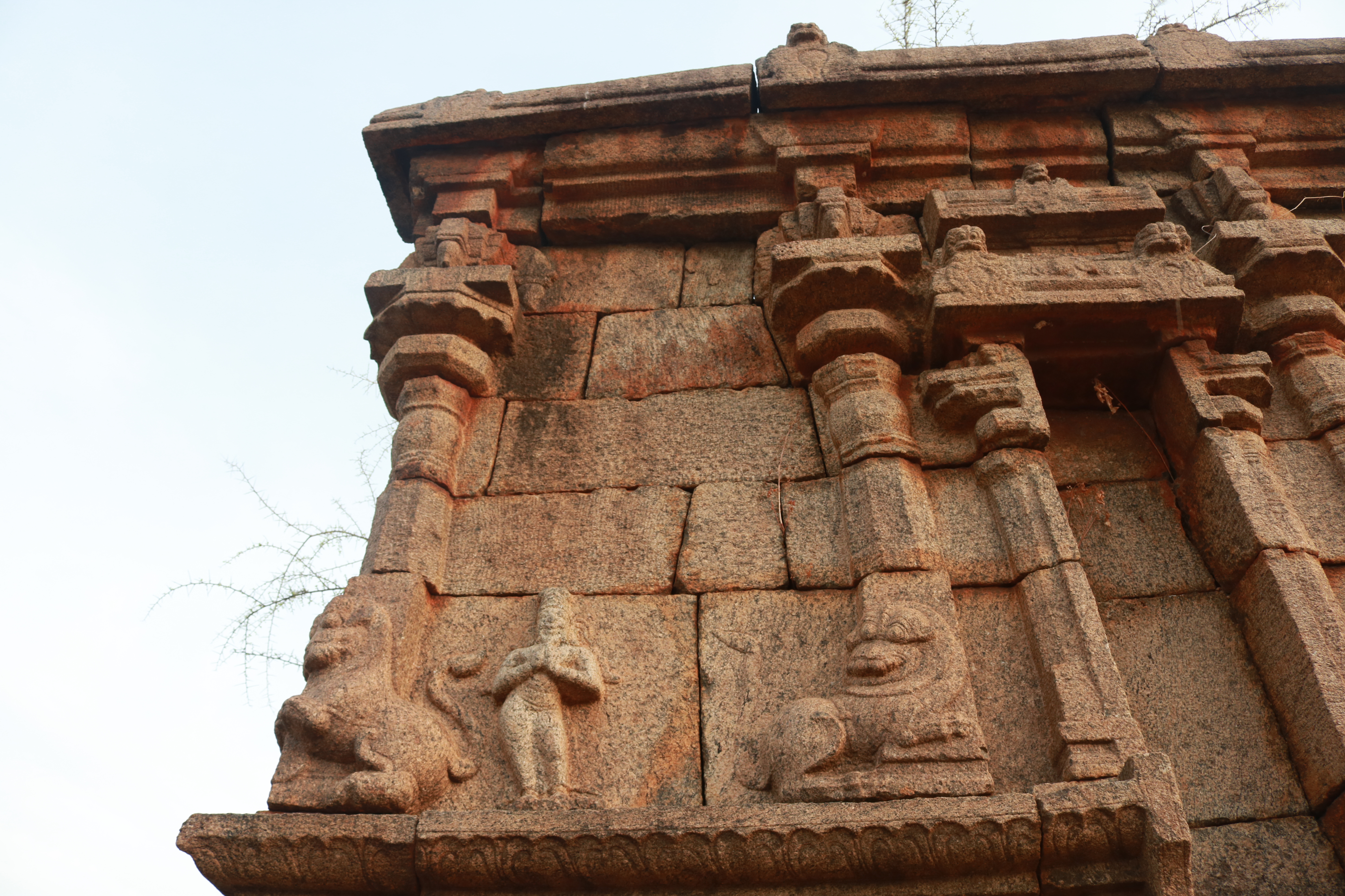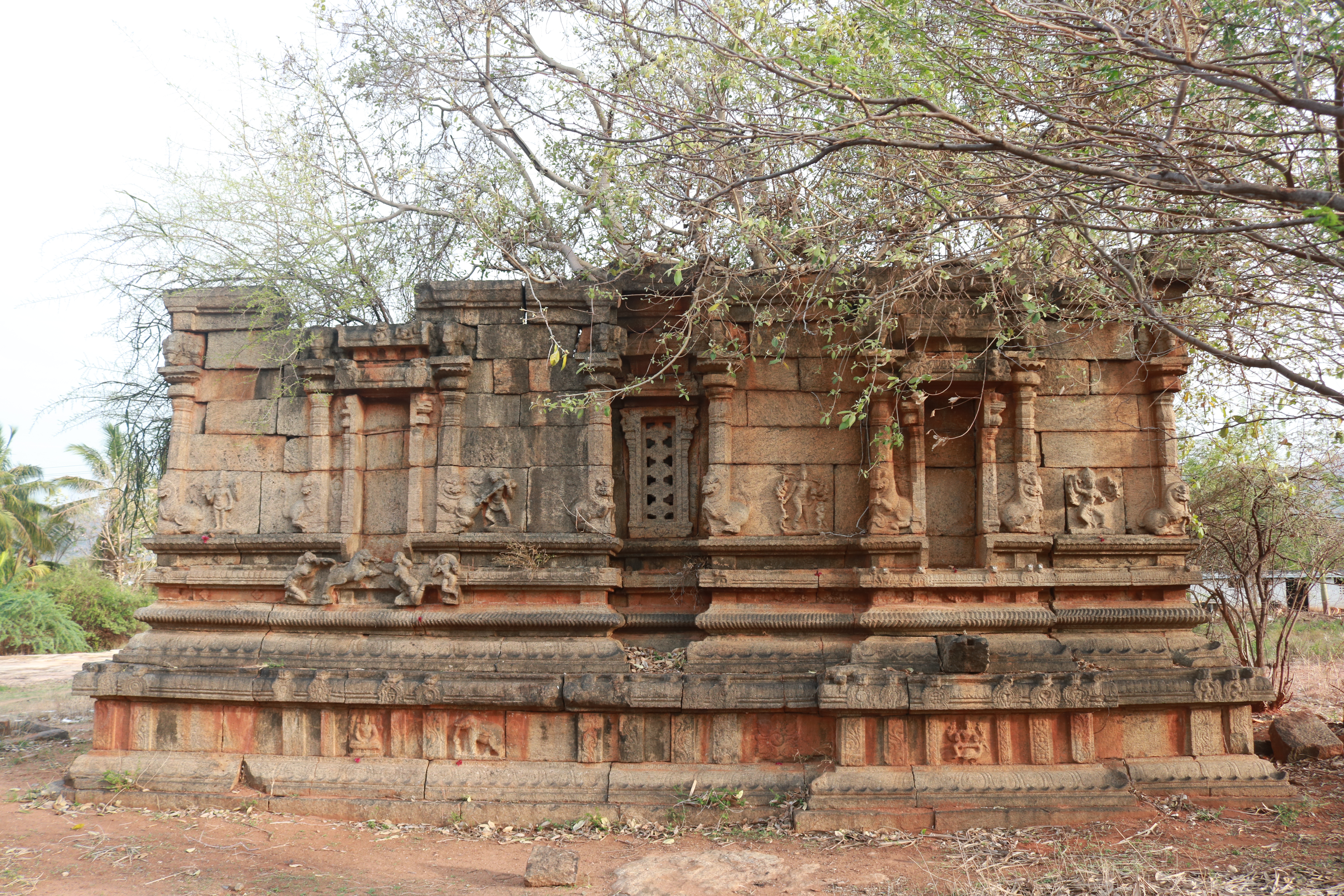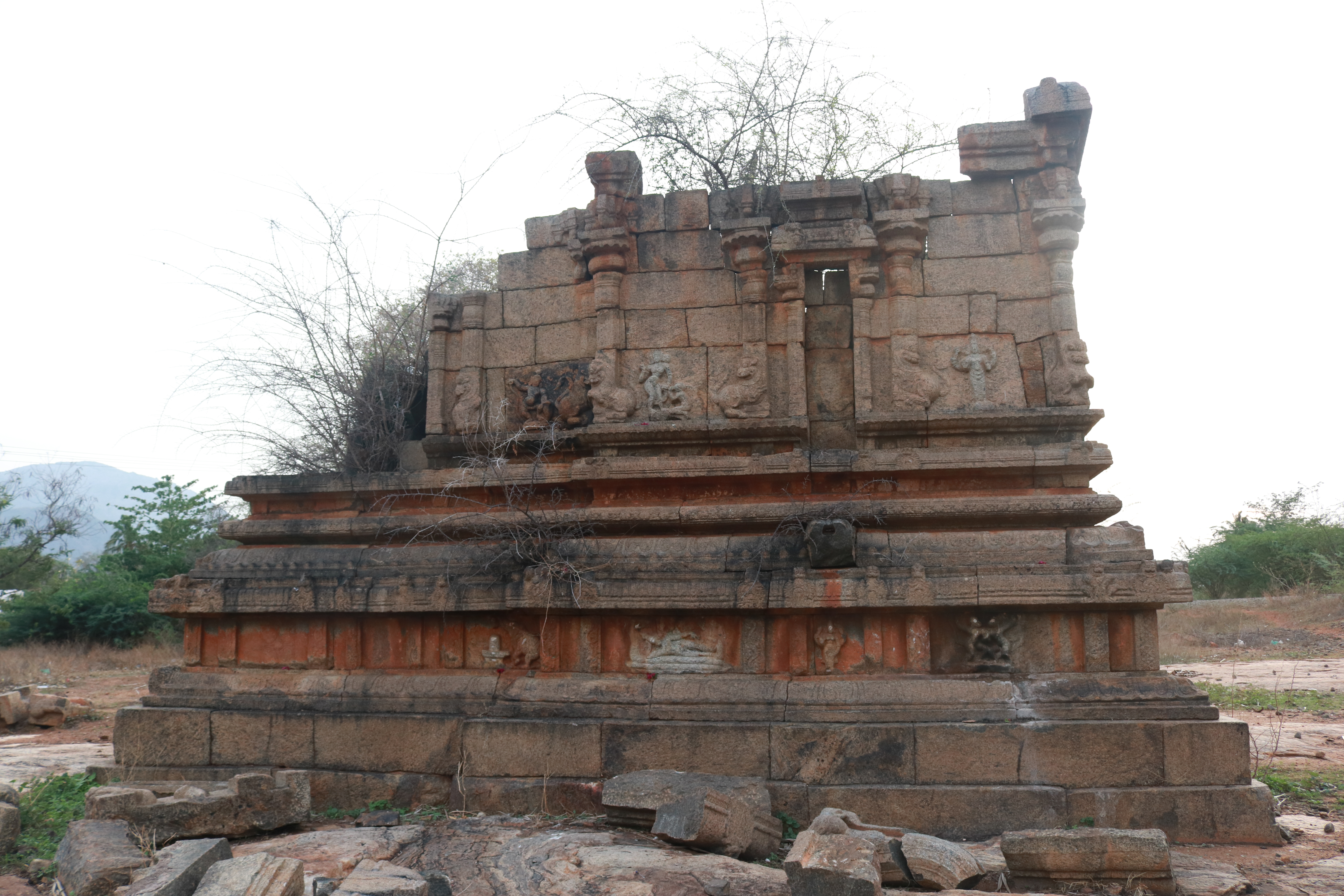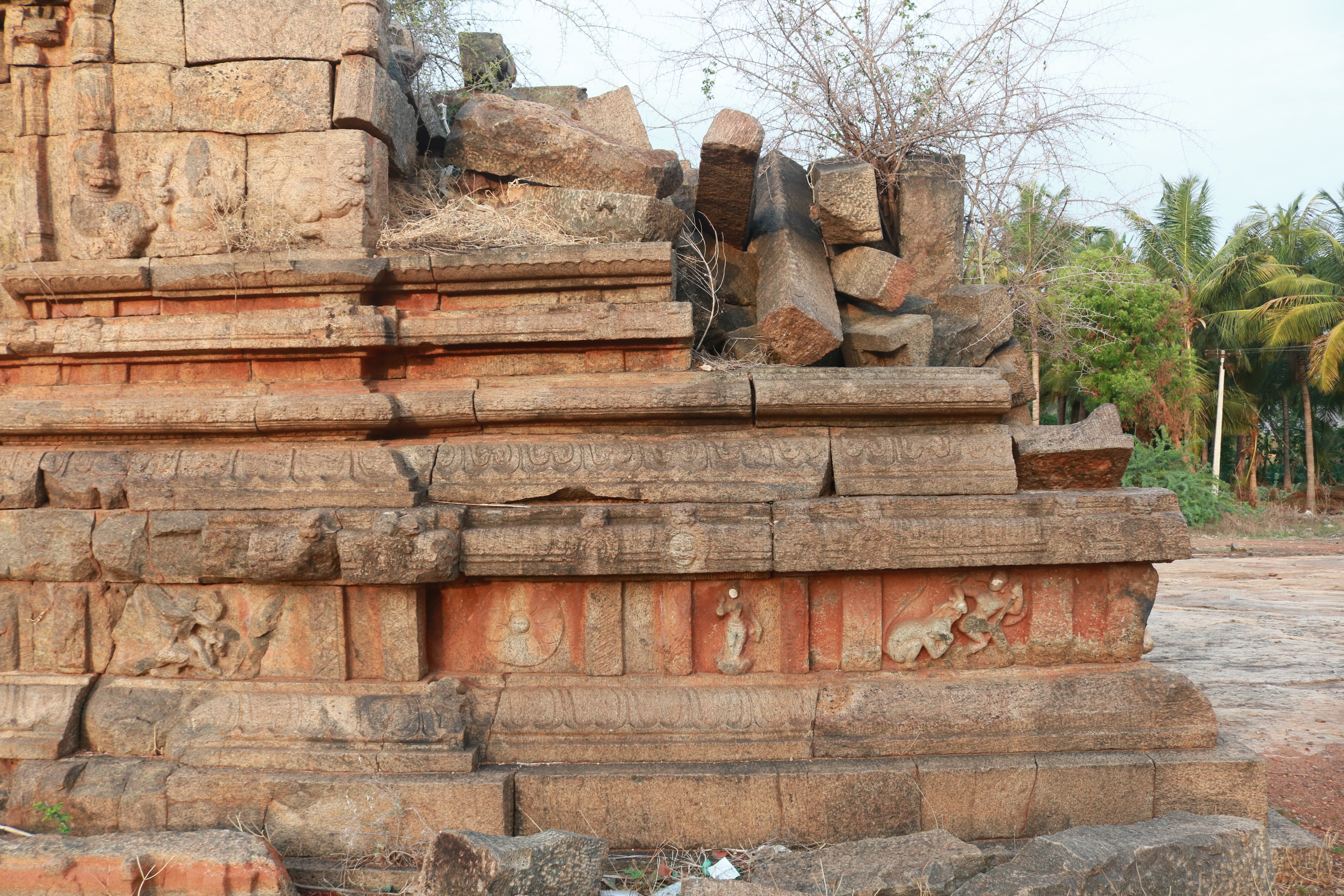 | கோயிலின் அமைப்பு | சிவன் கோயில் முழுவதும் தாங்குதளத்திலிருந்து கற்றளியாக அமைந்துள்ளது. துணைத் தாங்குதளத்துடன் (உபபீடம்) தாங்குதளம் உள்ளது. உபானம், ஜகதி, சிலம்புக் குமுதம், கண்டம், பட்டிகை என்ற தாங்குதள உறுப்புகளைக் கொண்டுள்ளது. துணைத் தாங்குதளத்தில் புடைப்புச் சிற்பங்கள் அமைந்துள்ளன. கருவறையும் அர்த்தமண்டபமும் கொண்டதாக இக்கோயில் அமைந்துள்ளது. கருவறை புறச் சுவரிலும், அர்த்தமண்டப புறச்சுவரிலும் வெற்றுக் கோட்டங்கள் அமைந்துள்ளன. கோட்டங்களை இருபுறமும் சிம்ம அரைத்தூண்கள் அழகு செய்கின்றன. இக்கோட்டங்களின் புறத்தே இருபுறமும் புடைப்புச் சிற்பங்கள் அமைக்கப்பட்டுள்ளன. கருவறையைத் தொடர்ந்து இடைநாழிகை எனப்படும் அந்தராளம் உள்ளது. அந்தராளப் பகுதியில் தெற்கிலும், வடக்கிலும் சாளரம் அமைக்கப்பட்டுள்ளது. கோயிலின் உட்புறம் முழுவதும் சிதிலமடைந்துள்ளது. தளங்கள் ஏதும் காணப்படவில்லை. அம்மன் கோயில் தெற்கு நோக்கி அமைந்துள்ளது. கருவறையும் அர்த்தமண்டபமும் கொண்டதாக இக்கோயில் அமைந்துள்ளது. துணைத் தாங்கு தளத்தின் கண்டப்பகுதியில் புடைப்புச் சிற்பங்கள் அமைந்துள்ளன. சிவன் கோயில் போன்றே அம்மன் கோயில் கட்டட அமைப்பும் காணப்படுகின்றது. பத்ம ஜகதியும், முப்பட்டை குமுதத்தில் பூ வேலைப்பாடுகளும் காட்டப்பட்டுள்ளன. |