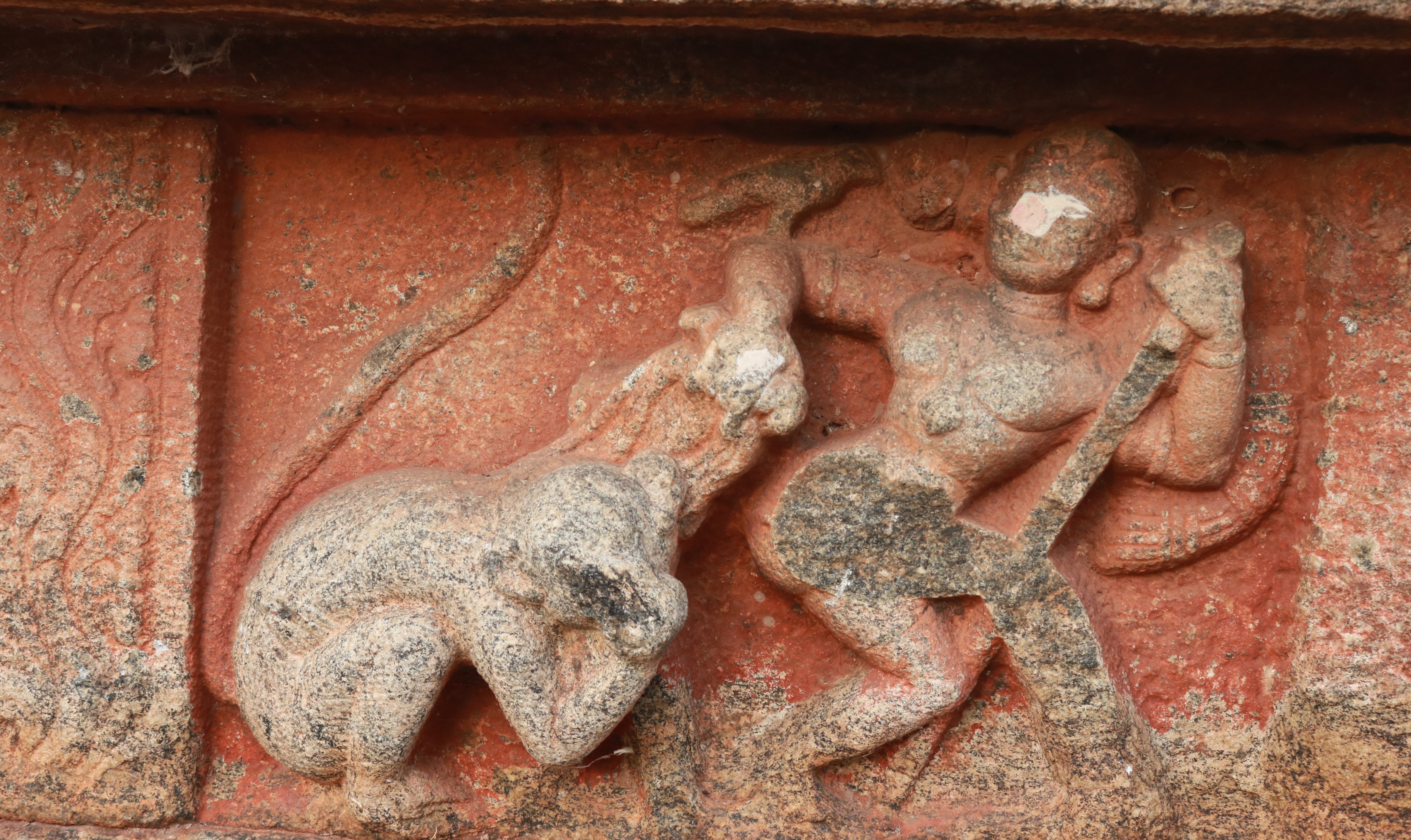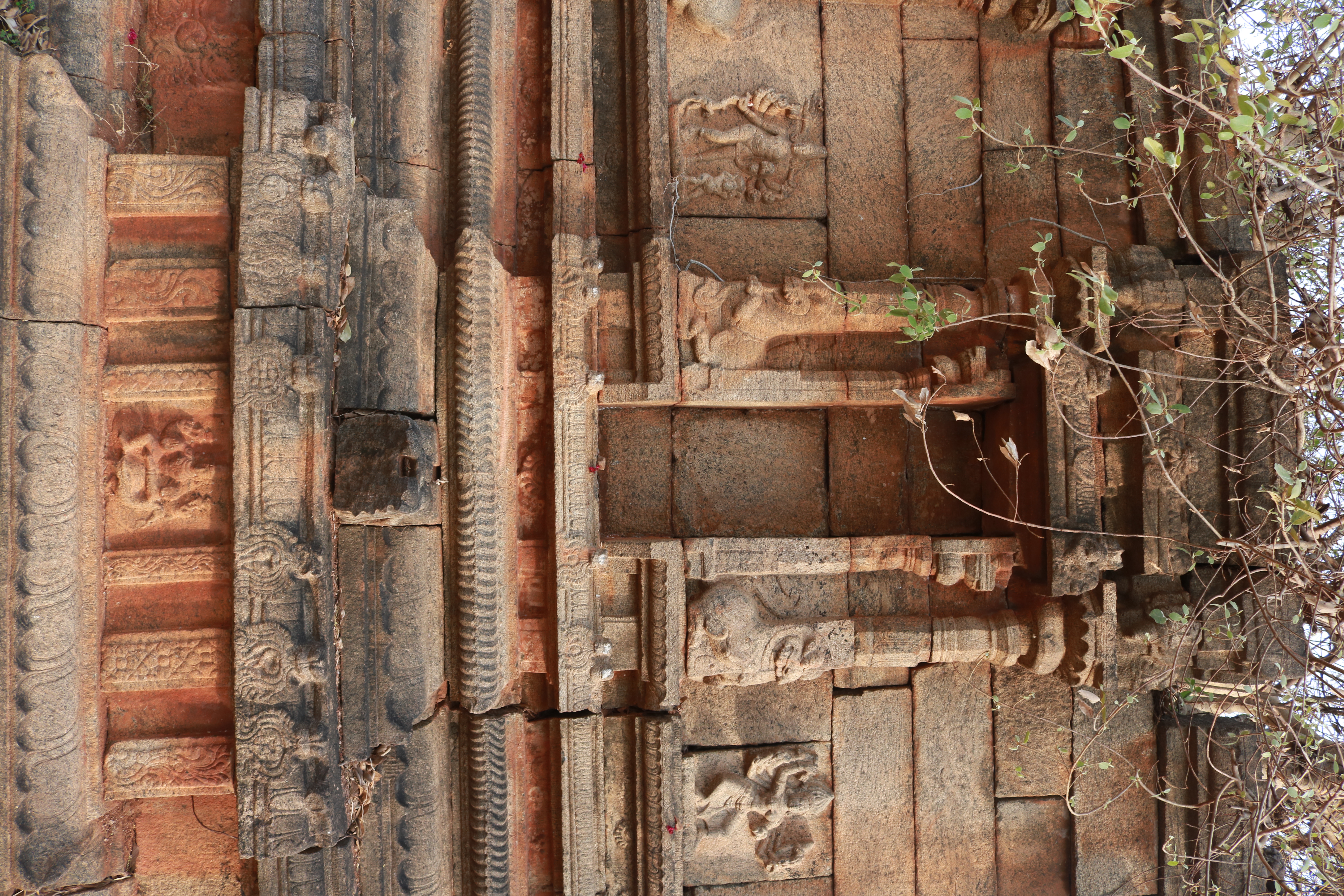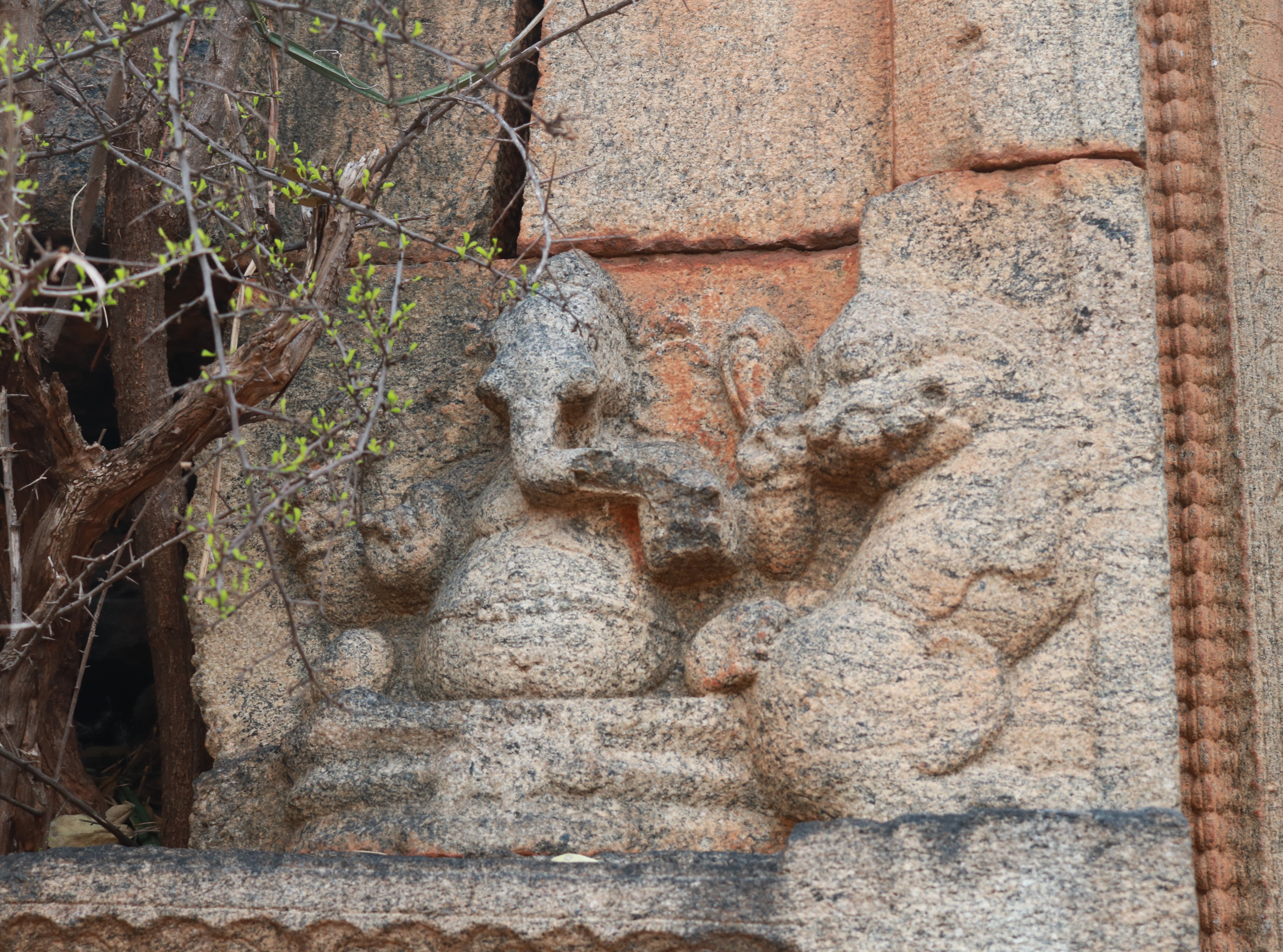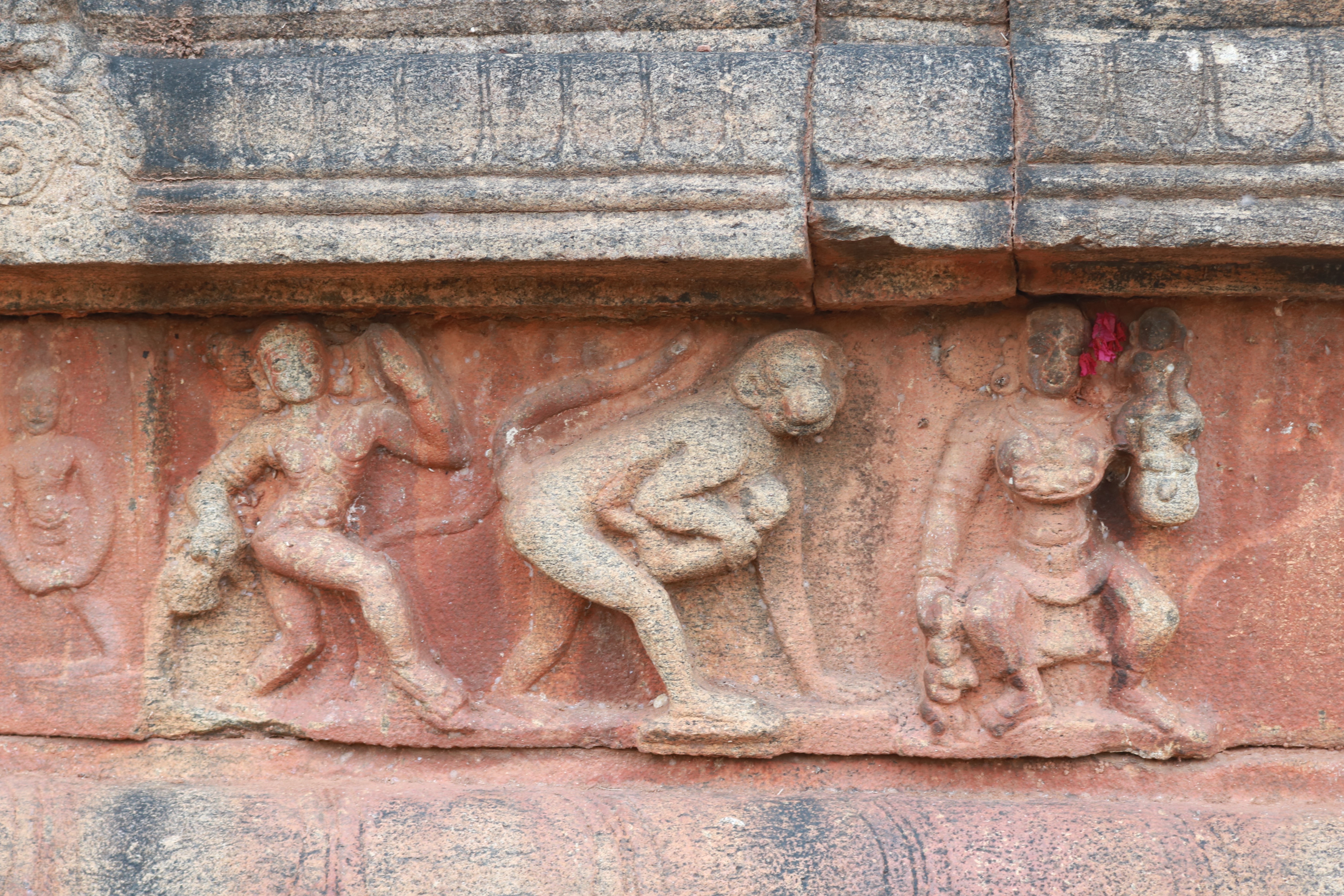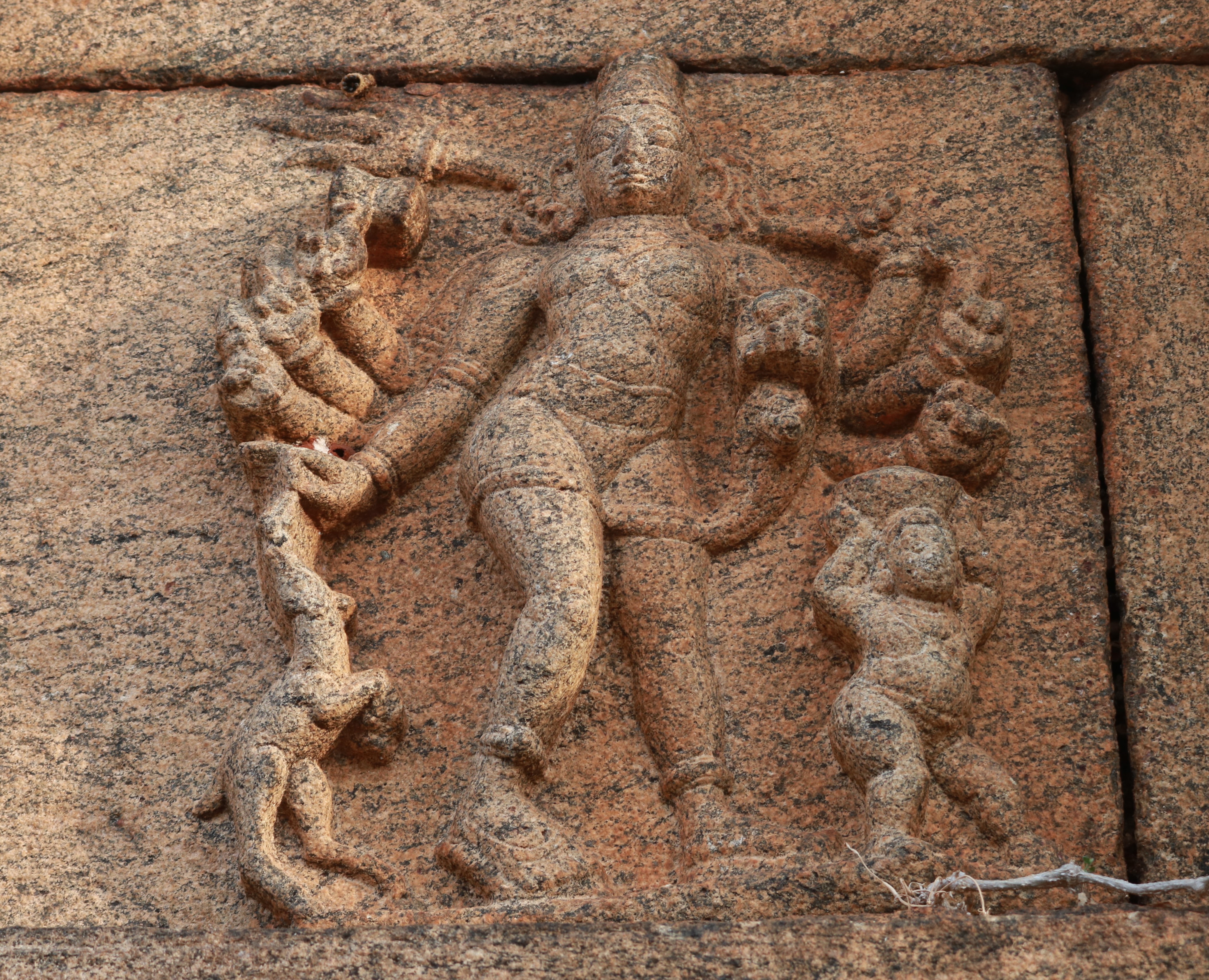 | சிற்பங்கள் | சிவன் கோயிலில் கருவறை புறச் சுவரிலும், அர்த்த மண்டப புறச் சுவரிலும் புடைப்புச் சிற்பங்கள் அமைந்துள்ளன. கிழக்கில் விநாயகர், மயில் மேல் அமர்ந்த முருகன், தெற்கில் கால் மாறி ஆடிய நடராஜர், காளி, மோகினி, ஆனையுரித்த பிரான் ஆகிய சிற்பங்கள் அமைந்துள்ளன. மேற்கில் அக்னி வீரபத்திரரும், அகோர வீரபத்திரரும் உள்ளனர். வடக்கில் காளி, பிட்சாடனர், வீரப் பெண், விஷ்ணு ஆகிய சிற்பங்களும், தாங்குதளத்தில் சிங்கத்துடன் விளையாடும் வீரன் உருவமும், கன்றினை தோளில் போட்டுக் கொண்டு நிற்கும் வீரன் உருவமும், குட்டியை அடிவயிற்றில் தாங்கும் குரங்கும் அமைந்துள்ளன. அம்மன் கோயிலில் வீரபத்திரர், கண்ணப்பர், இலிங்கத்தை வழிபடும் பசு, தேவி, இடபாரூடர், தவம் செய்யும முனிவர், அடியவர், பாம்பாட்டி, மோகினி, விஷ்ணு, திருவரங்கன், இலிங்க பூசை செய்யும் யானை, காளிங்க நர்த்தனம், வாலி-சுக்ரீவன் சண்டை ஆகிய புடைப்புச் சிற்பங்கள் கருவறை புறச் சுவரிலும், அர்த்த மண்டப புறச் சுவரிலும் அமைந்துள்ளன. |