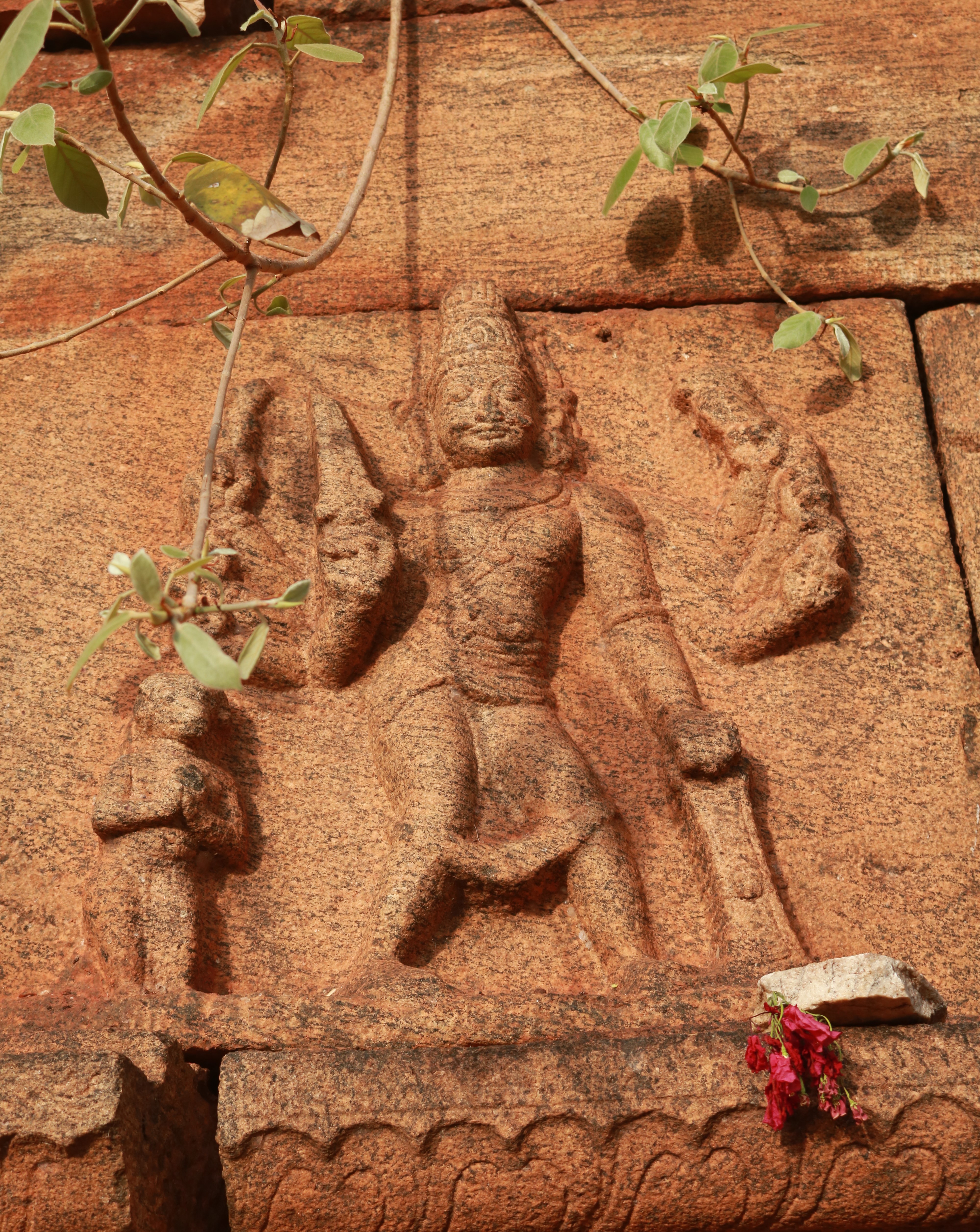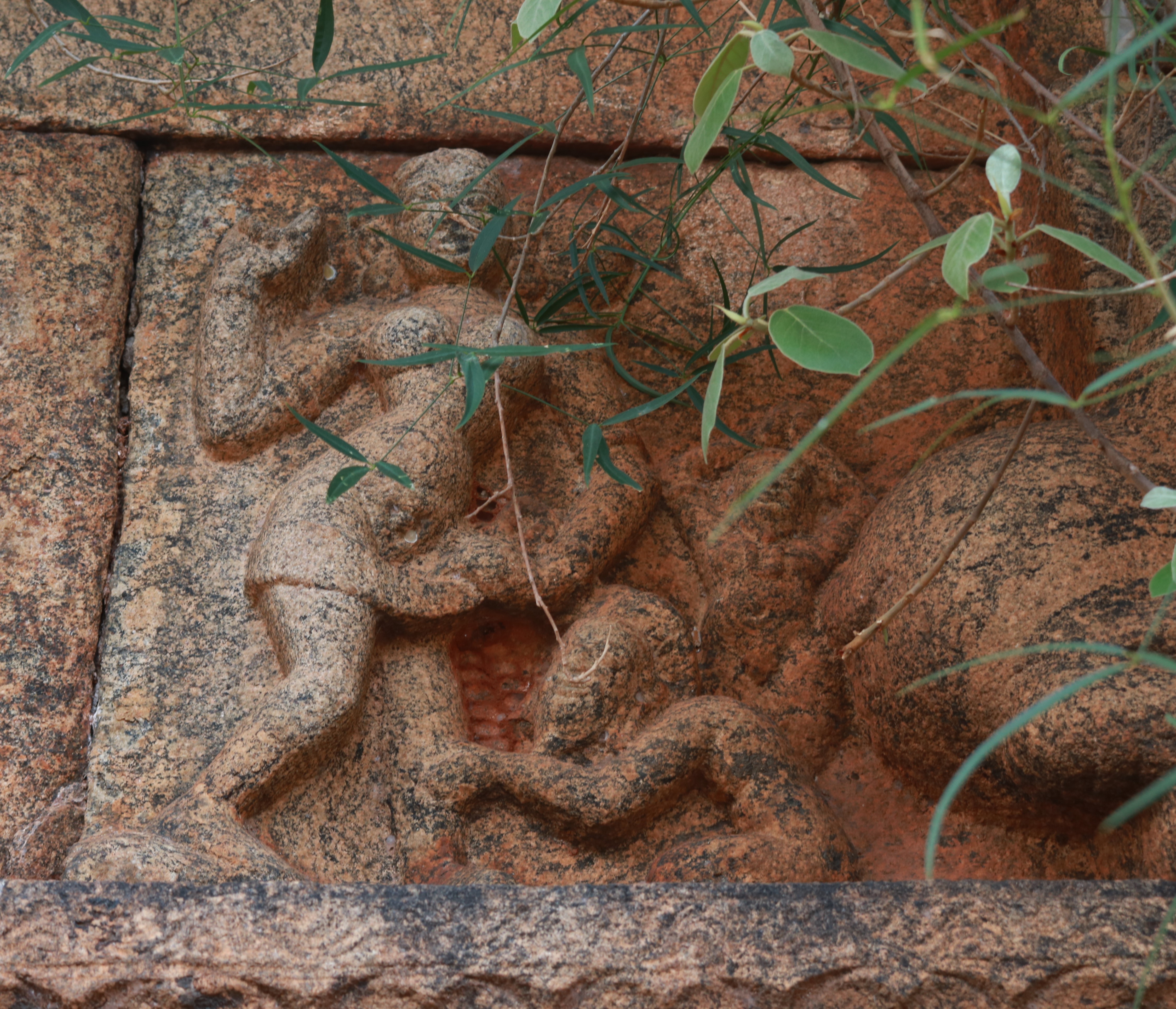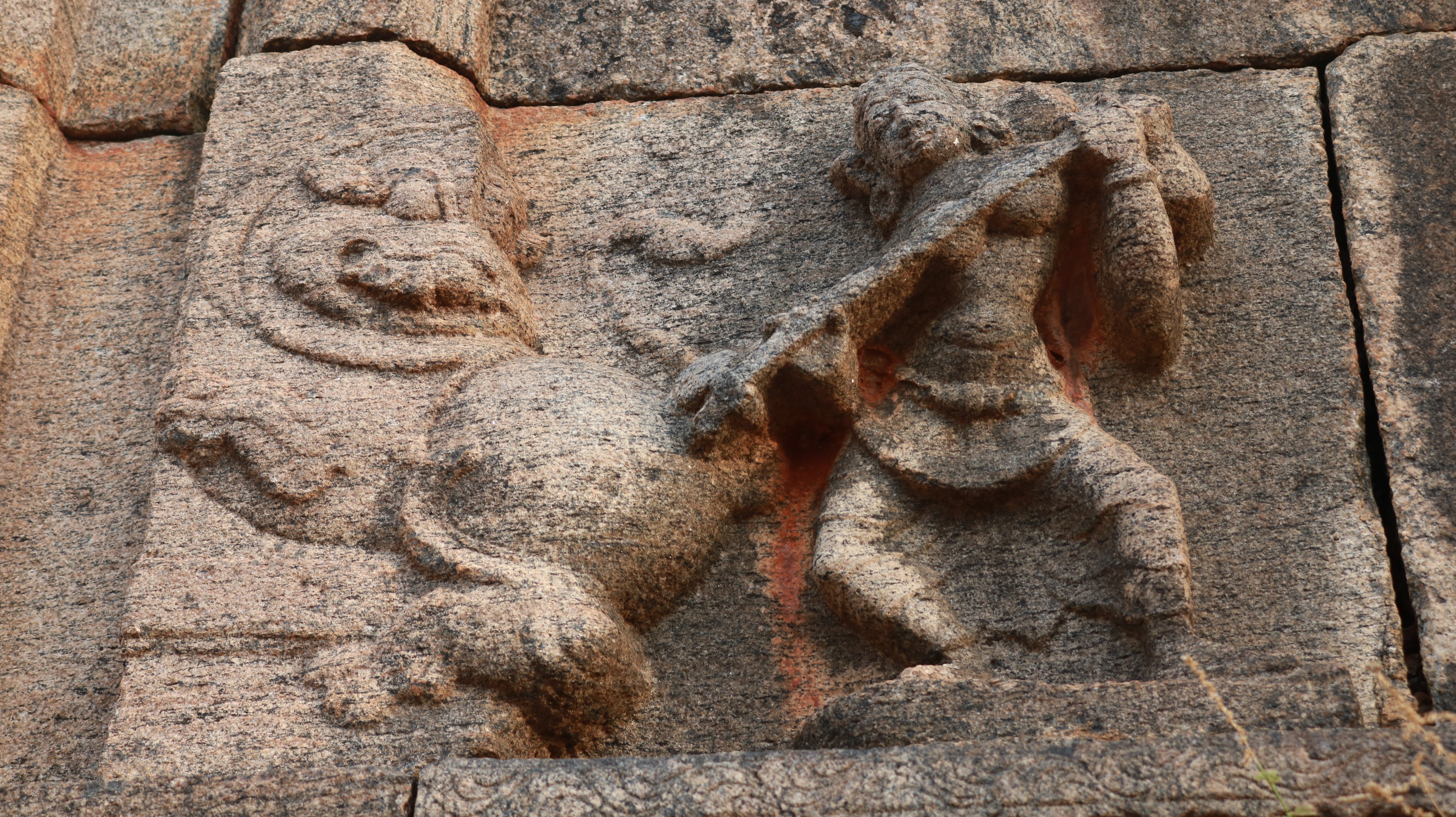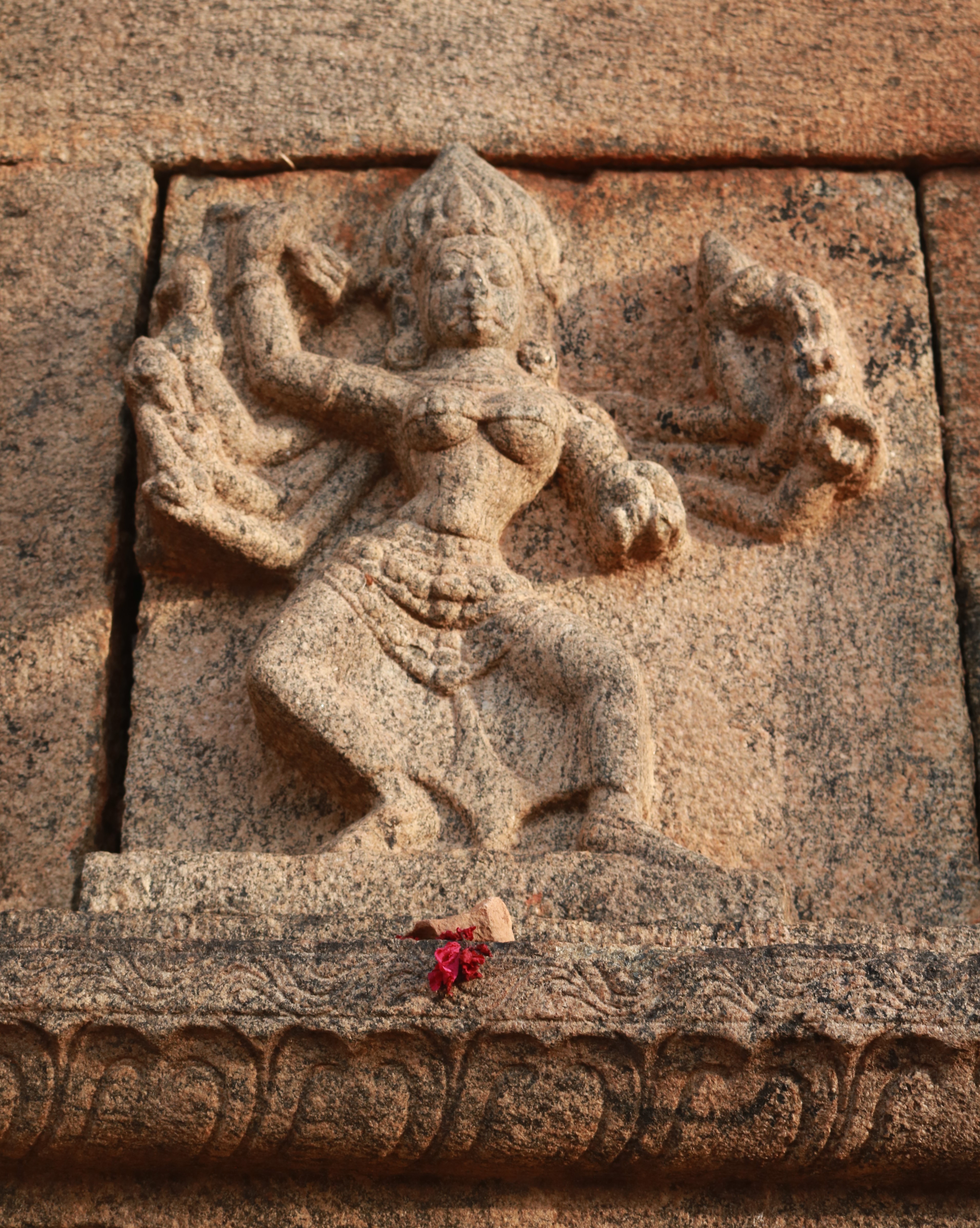 | சிற்பங்கள் | சிவன் கோயிலில் கருவறை புறச் சுவரிலும், அர்த்த மண்டப புறச் சுவரிலும் புடைப்புச் சிற்பங்கள் அமைந்துள்ளன. கிழக்கில் விநாயகர், மயில் மேல் அமர்ந்த முருகன், தெற்கில் கால் மாறி ஆடிய நடராஜர், காளி, மோகினி, ஆனையுரித்த பிரான் ஆகிய சிற்பங்கள் அமைந்துள்ளன. மேற்கில் அக்னி வீரபத்திரரும், அகோர வீரபத்திரரும் உள்ளனர். வடக்கில் காளி, பிட்சாடனர், வீரப் பெண், விஷ்ணு ஆகிய சிற்பங்களும், தாங்குதளத்தில் சிங்கத்துடன் விளையாடும் வீரன் உருவமும், கன்றினை தோளில் போட்டுக் கொண்டு நிற்கும் வீரன் உருவமும், குட்டியை அடிவயிற்றில் தாங்கும் குரங்கும் அமைந்துள்ளன. அம்மன் கோயிலில் வீரபத்திரர், கண்ணப்பர், இலிங்கத்தை வழிபடும் பசு, தேவி, இடபாரூடர், தவம் செய்யும முனிவர், அடியவர், பாம்பாட்டி, மோகினி, விஷ்ணு, திருவரங்கன், இலிங்க பூசை செய்யும் யானை, காளிங்க நர்த்தனம், வாலி-சுக்ரீவன் சண்டை ஆகிய புடைப்புச் சிற்பங்கள் கருவறை புறச் சுவரிலும், அர்த்த மண்டப புறச் சுவரிலும் அமைந்துள்ளன. |