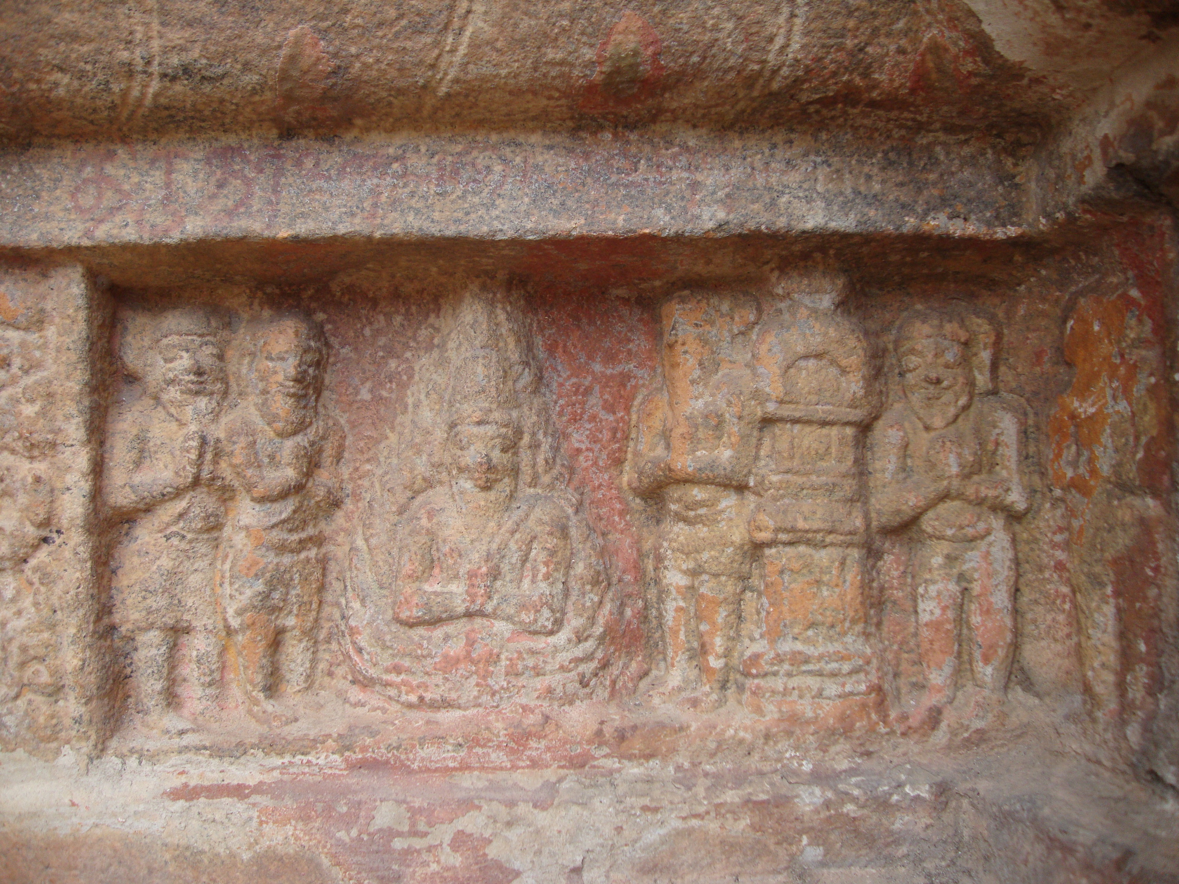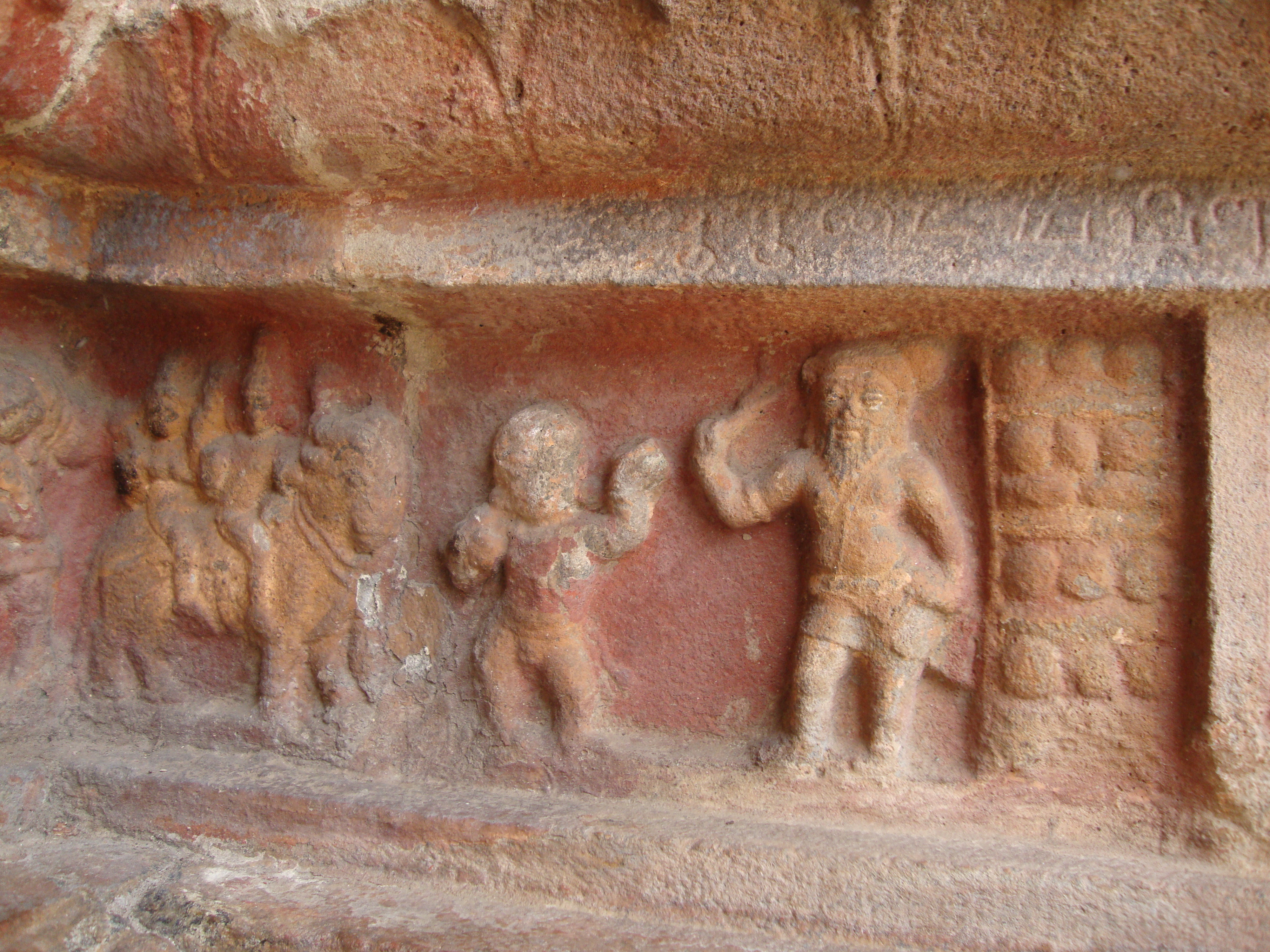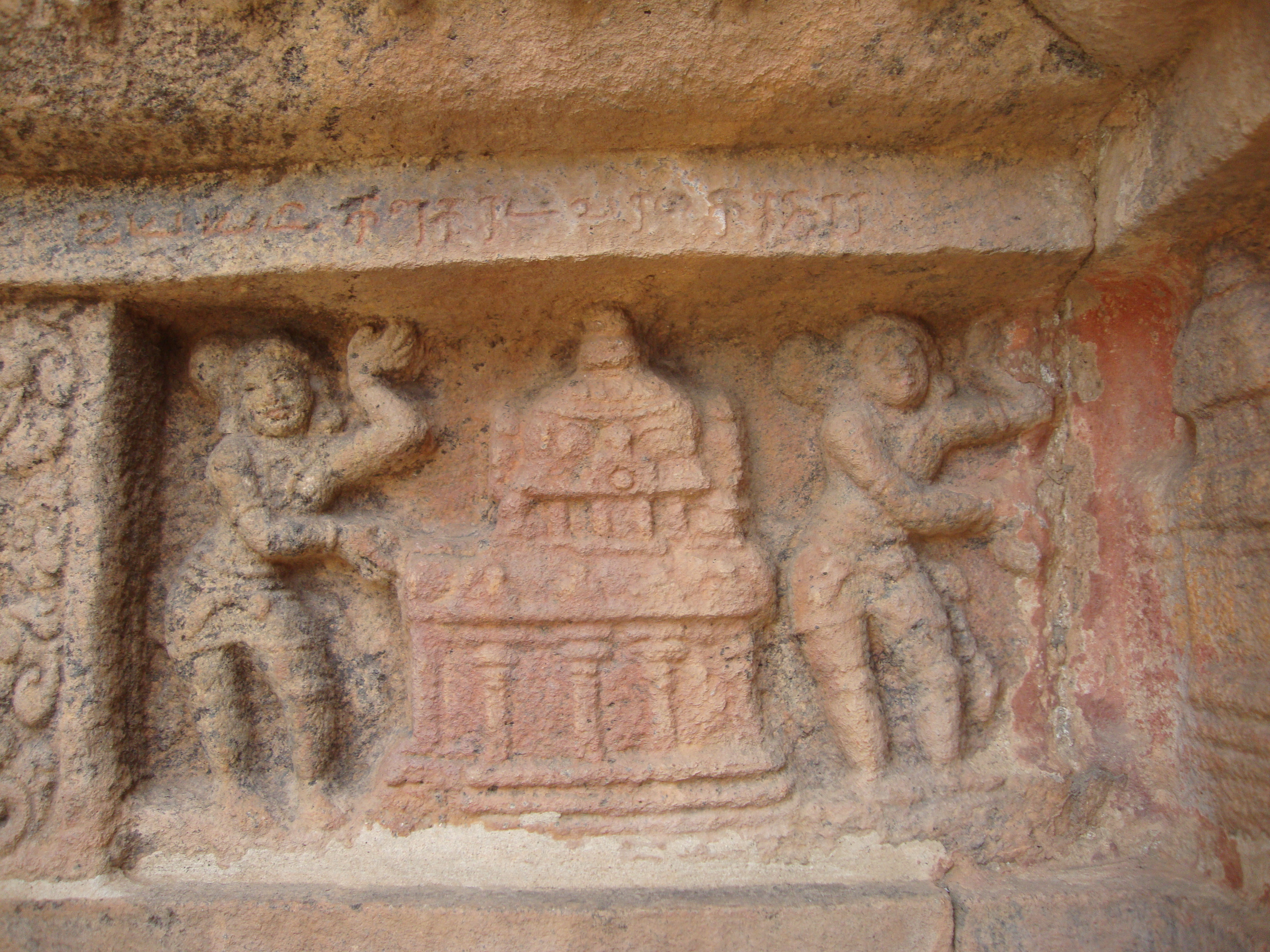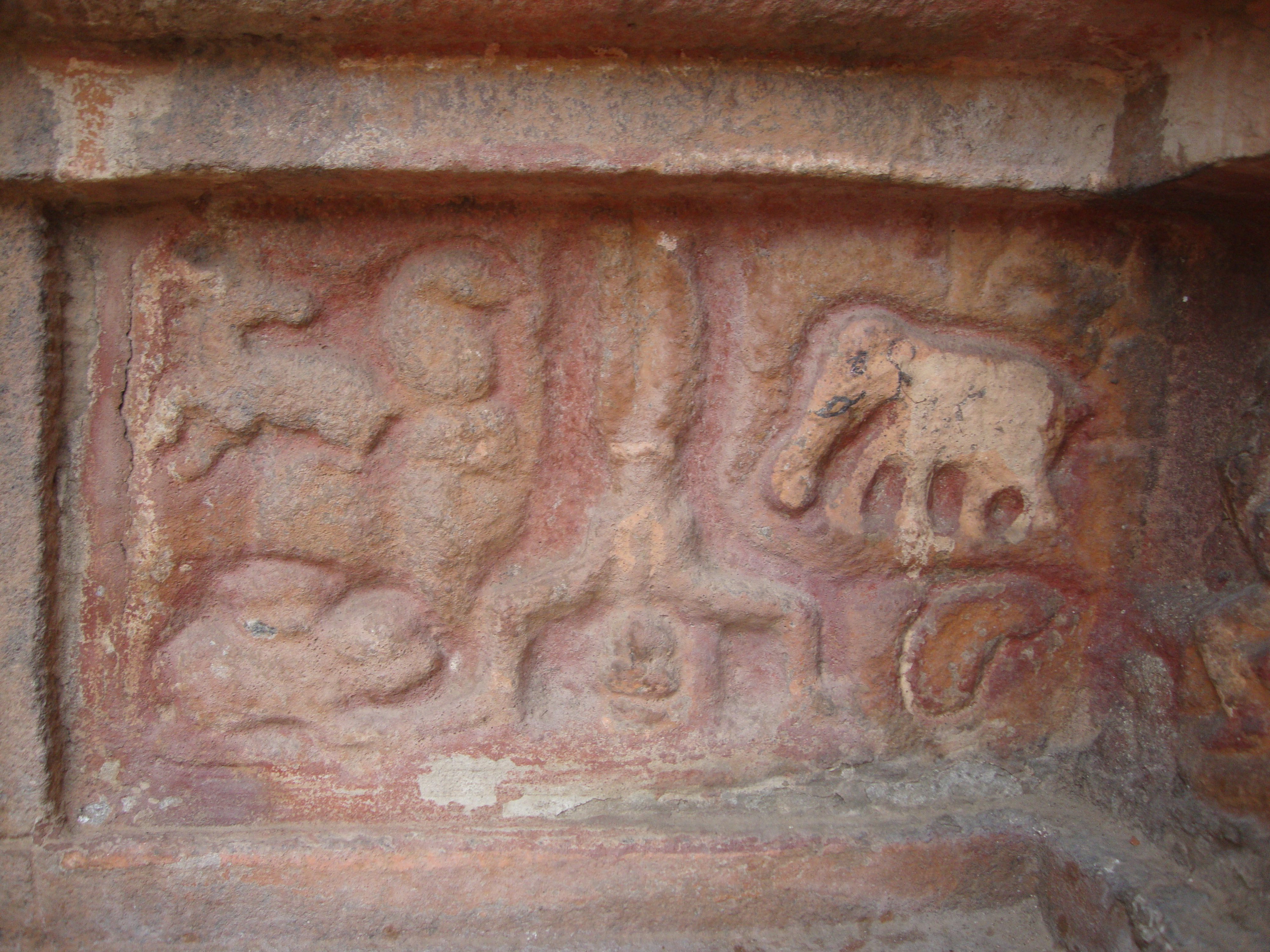 சுவரோவியங்கள் | கோட்டச் சிற்பங்கள் மற்றும் கண்டப் படை சிற்பங்கள் அனைத்தும் வண்ணந் தீட்டப்பட்டிருந்த எச்சங்கள் காணப்படுகின்றன |