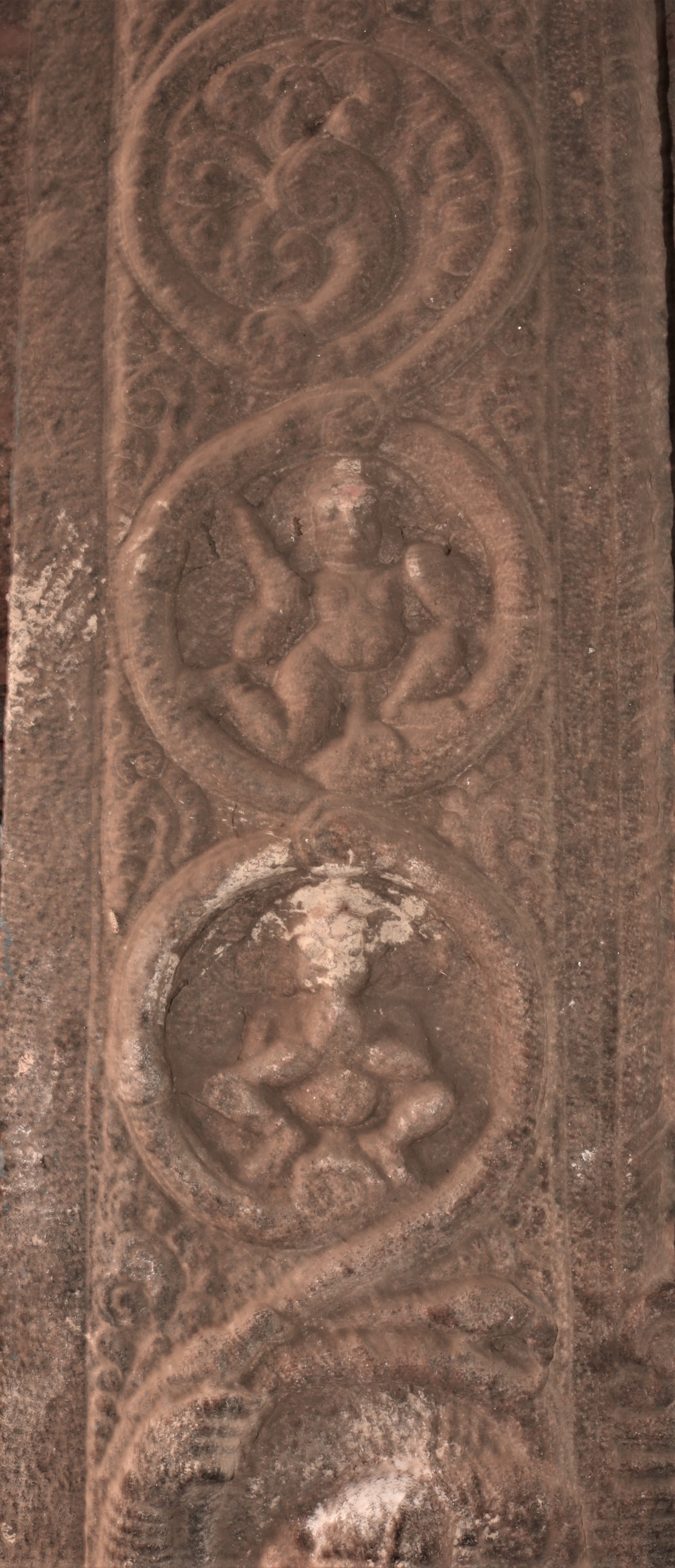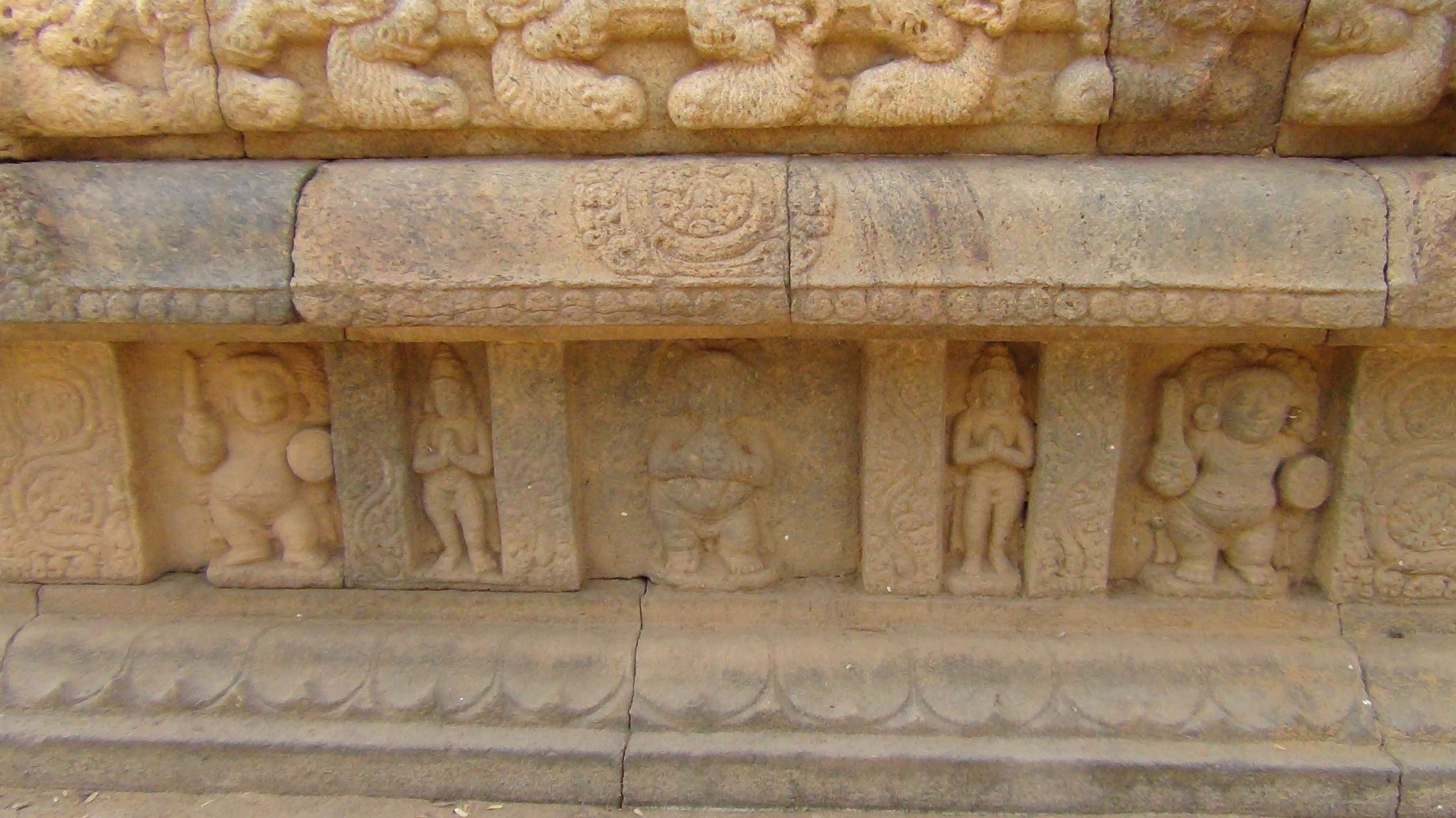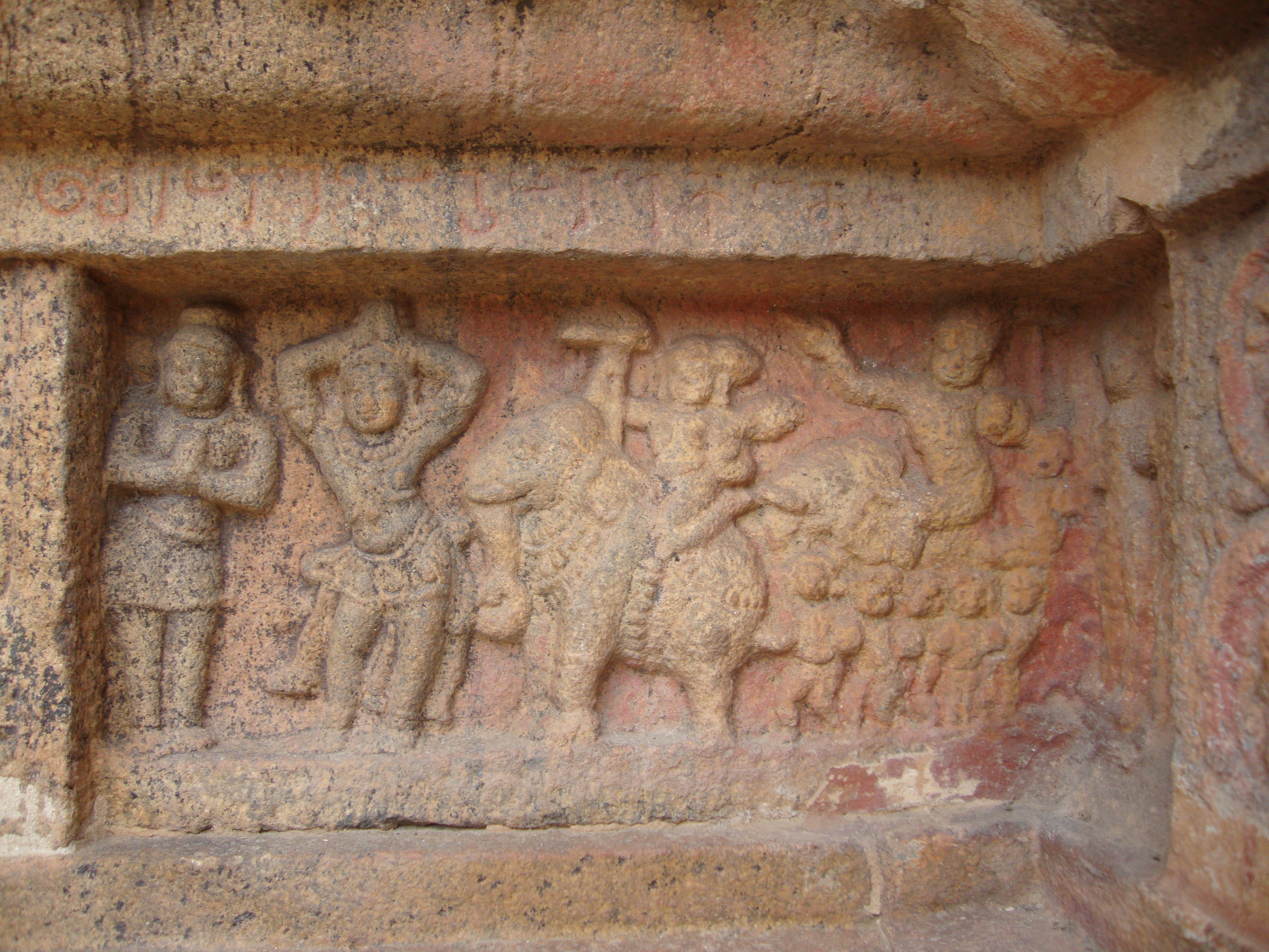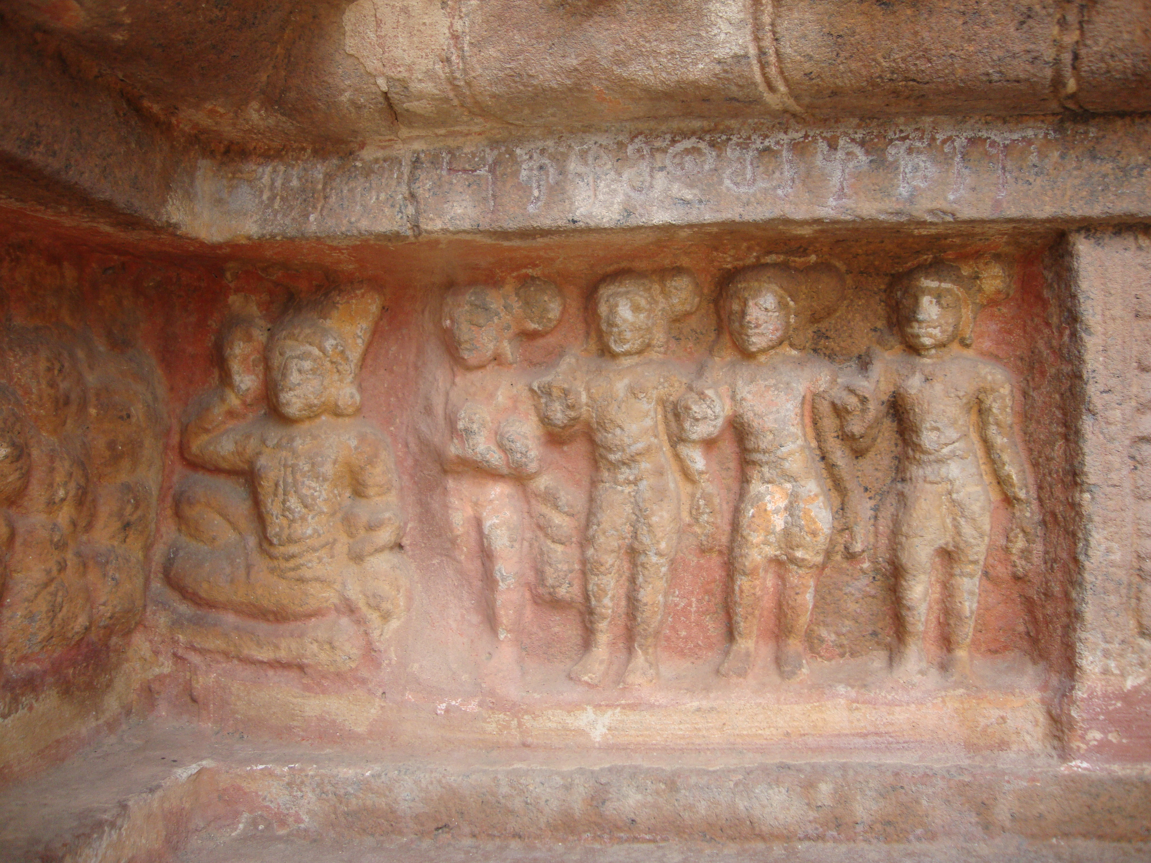 சுவரோவியங்கள் | கோட்டச் சிற்பங்கள் மற்றும் கண்டப் படை சிற்பங்கள் அனைத்தும் வண்ணந் தீட்டப்பட்டிருந்த எச்சங்கள் காணப்படுகின்றன |