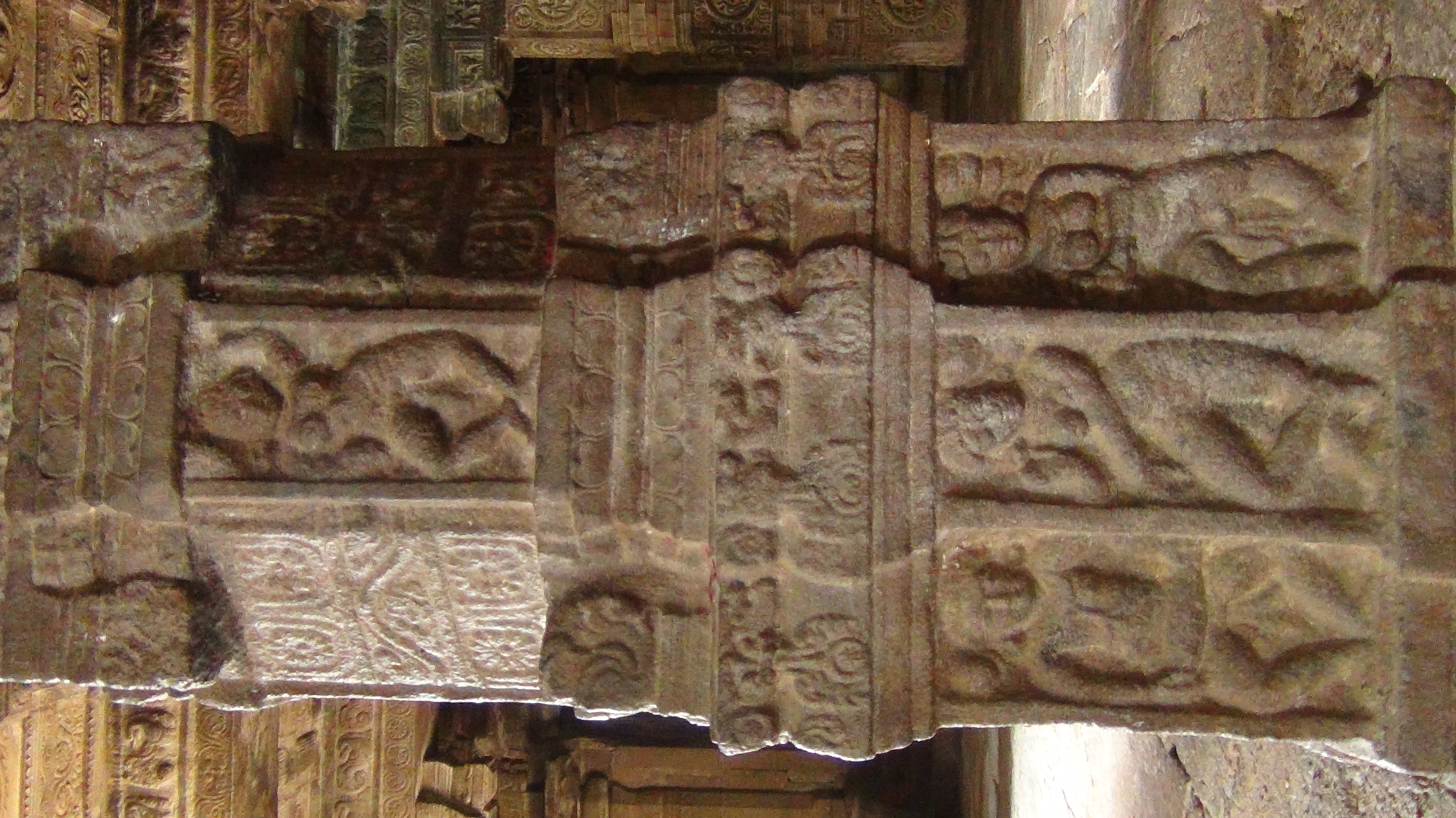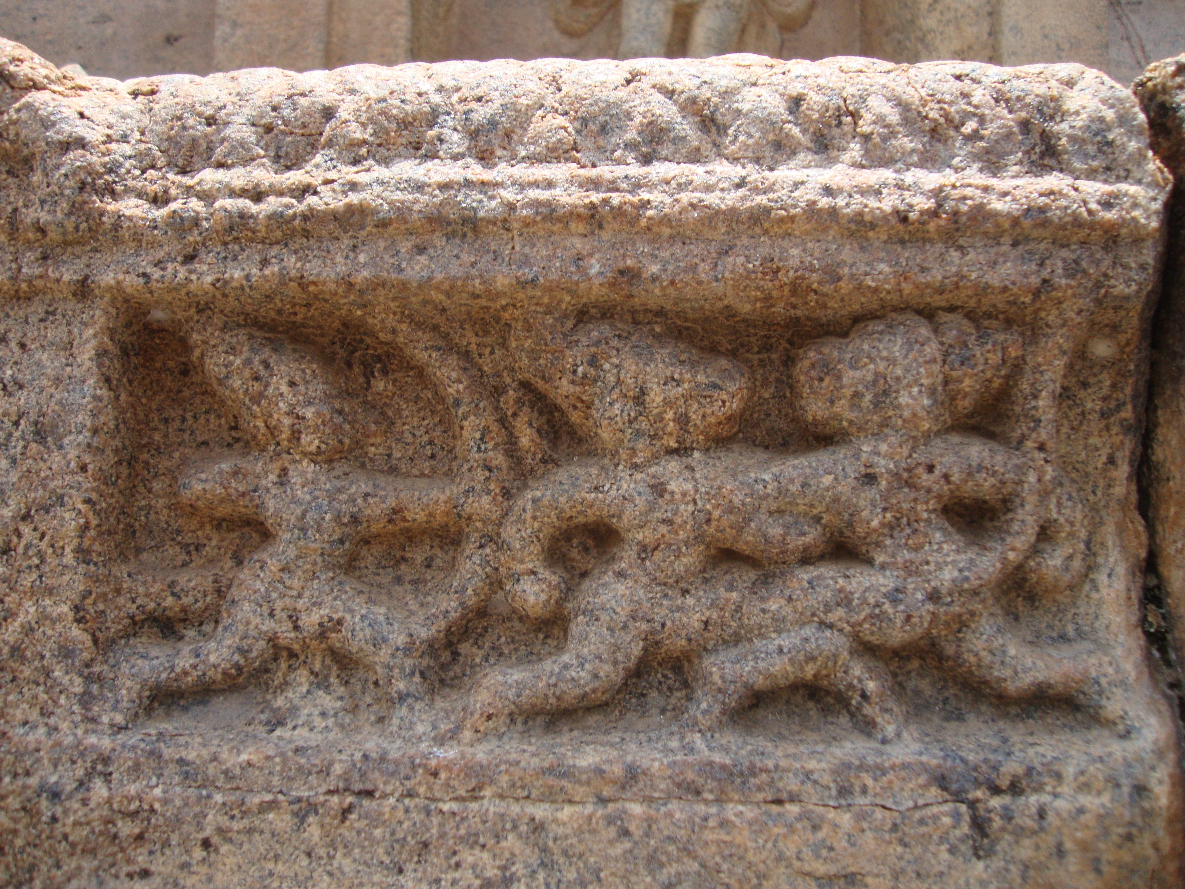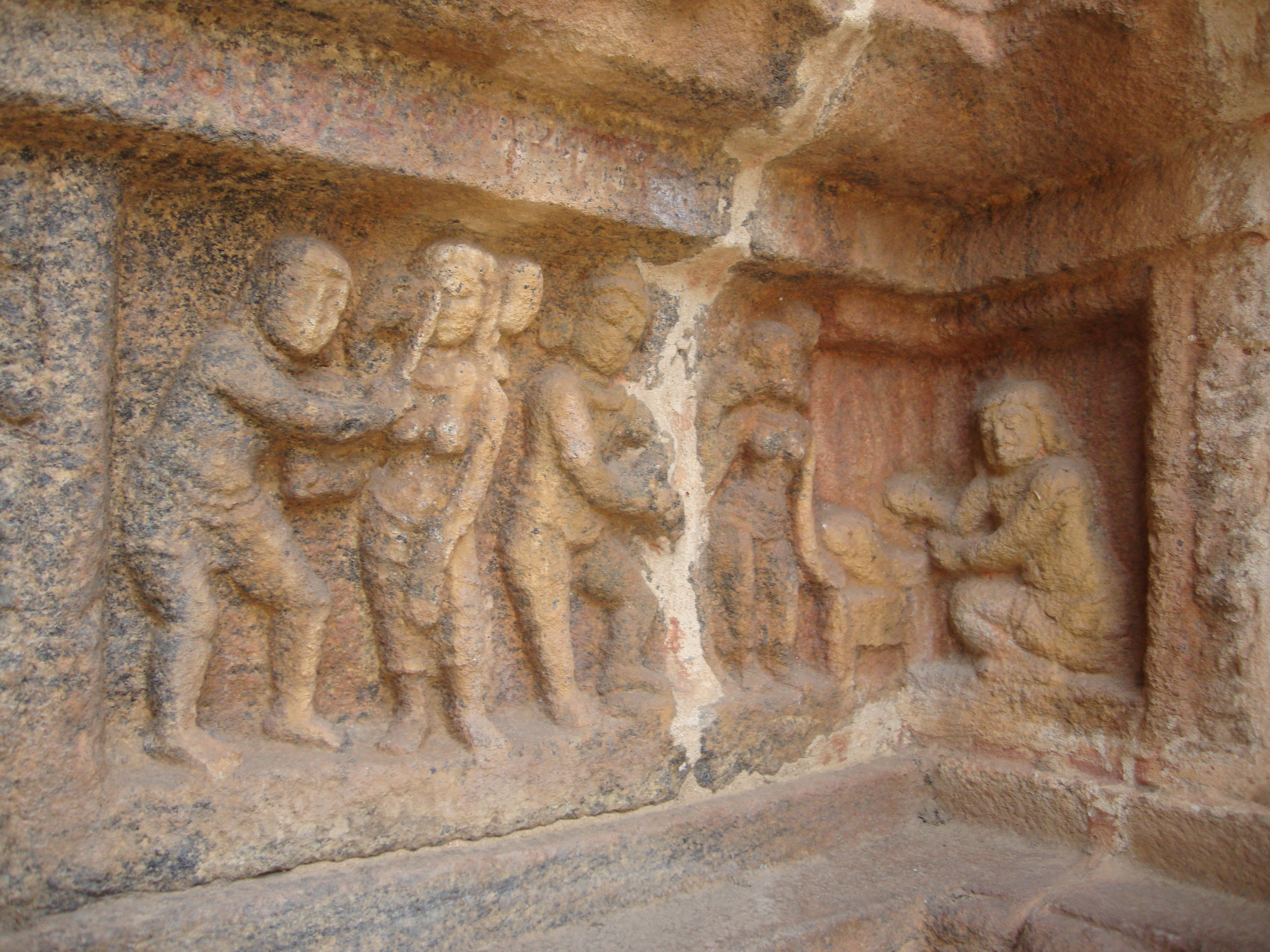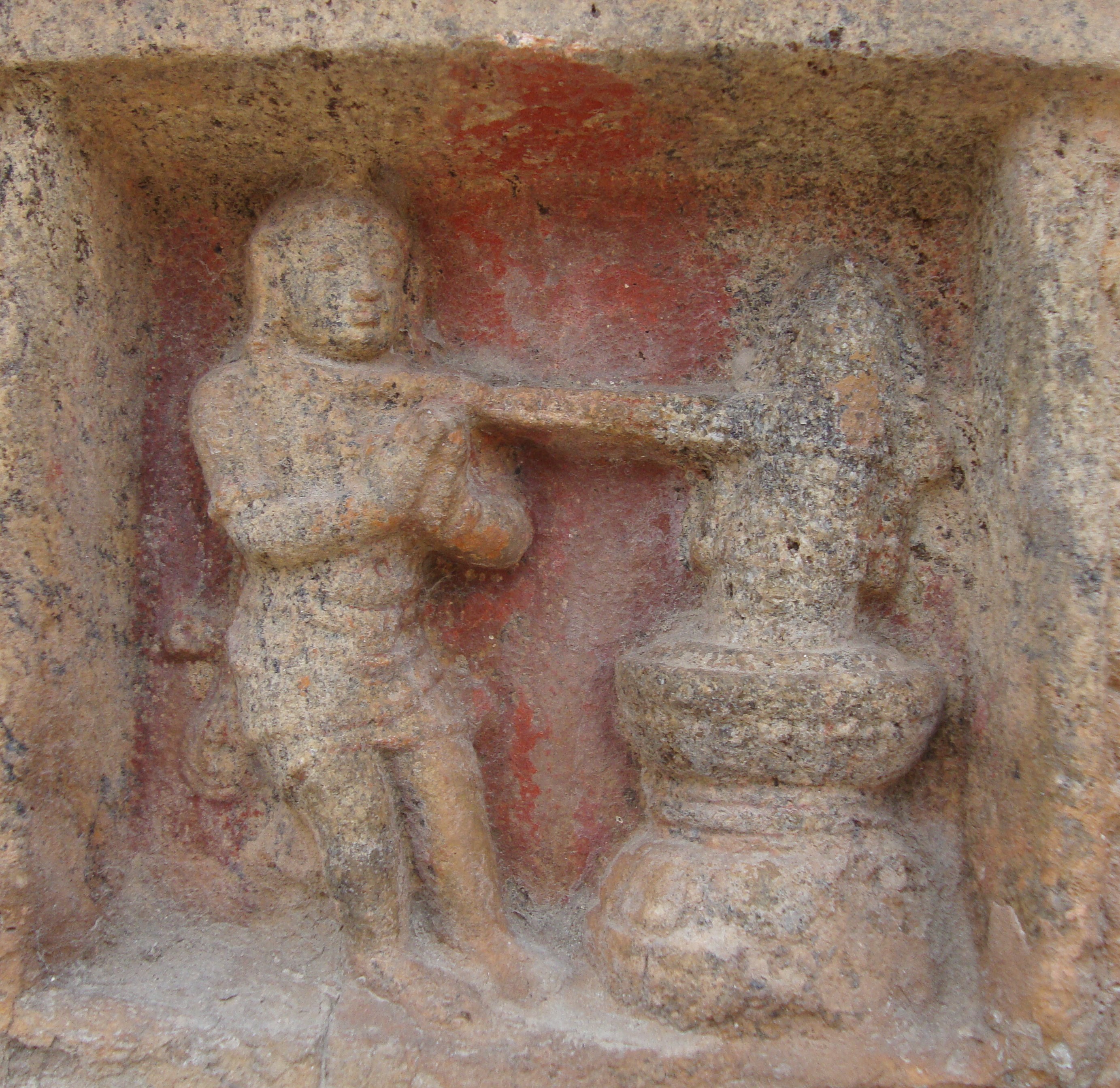 சுவரோவியங்கள் | கோட்டச் சிற்பங்கள் மற்றும் கண்டப் படை சிற்பங்கள் அனைத்தும் வண்ணந் தீட்டப்பட்டிருந்த எச்சங்கள் காணப்படுகின்றன |